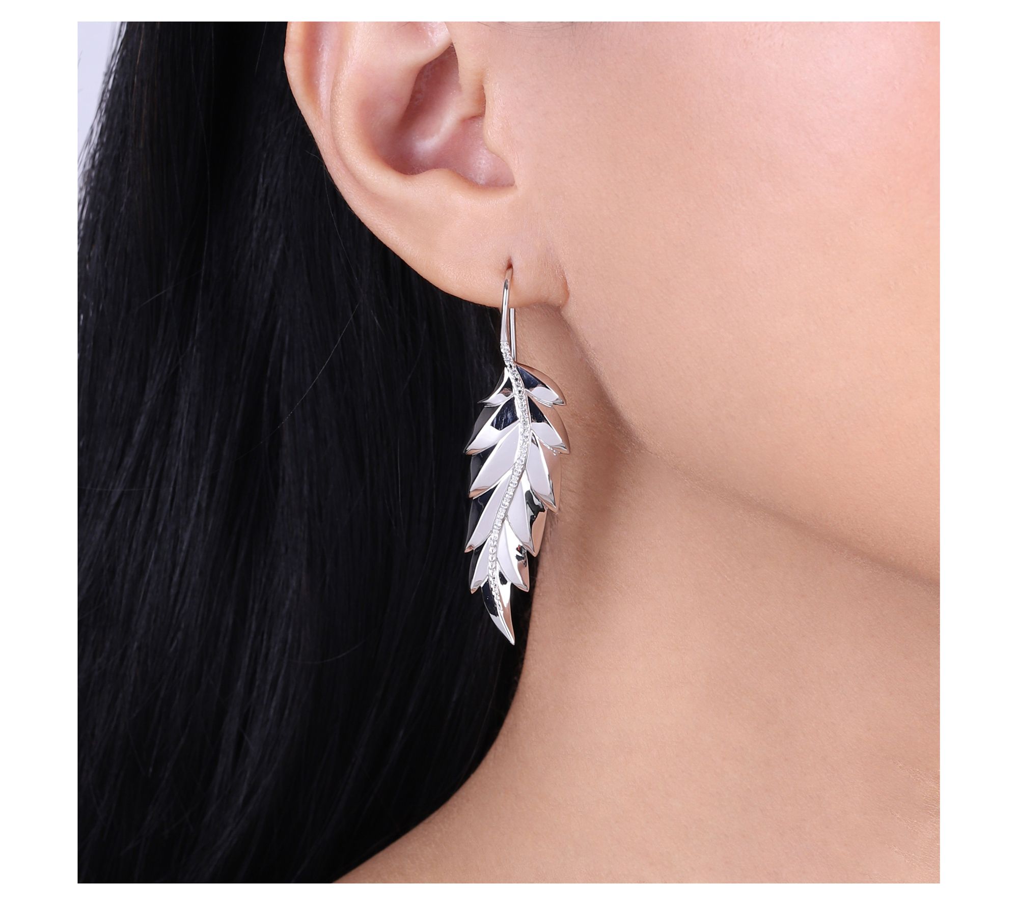 • Dangling design; round-cut, pave-set white topaz; polished finish