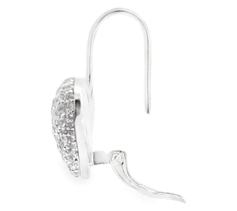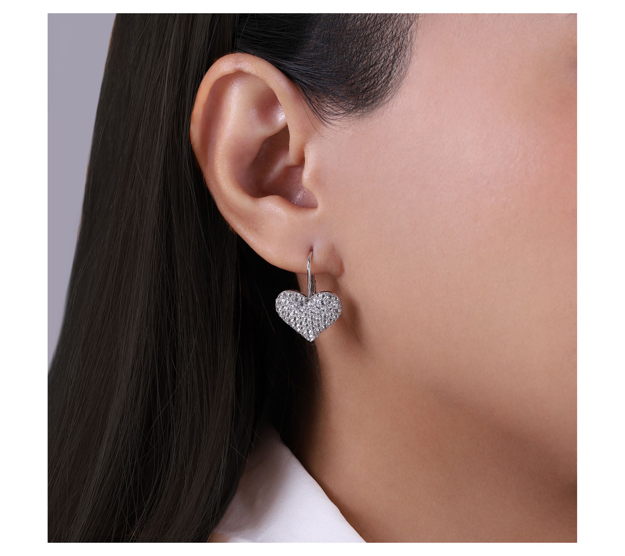 Soften your look with these heart-shaped earrings featuring sparkling white topaz stones. Whether dressing up for a special occasion or adding a touch of elegance to your day, these dangle earrings create an effortlessly charming vibe. From Margo Manhattan.