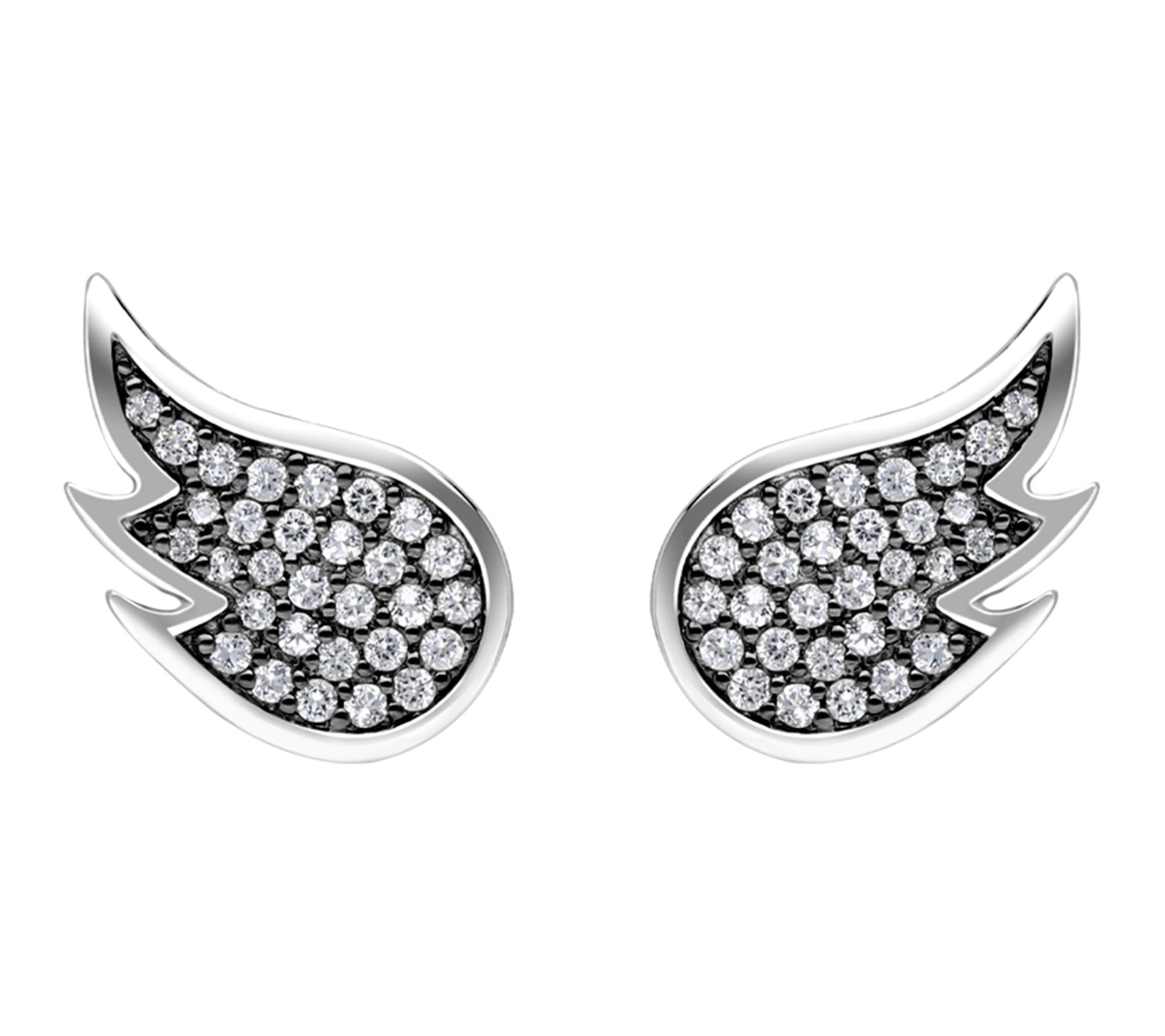 • Wing design; round-cut, pave-set white topaz; polished finish