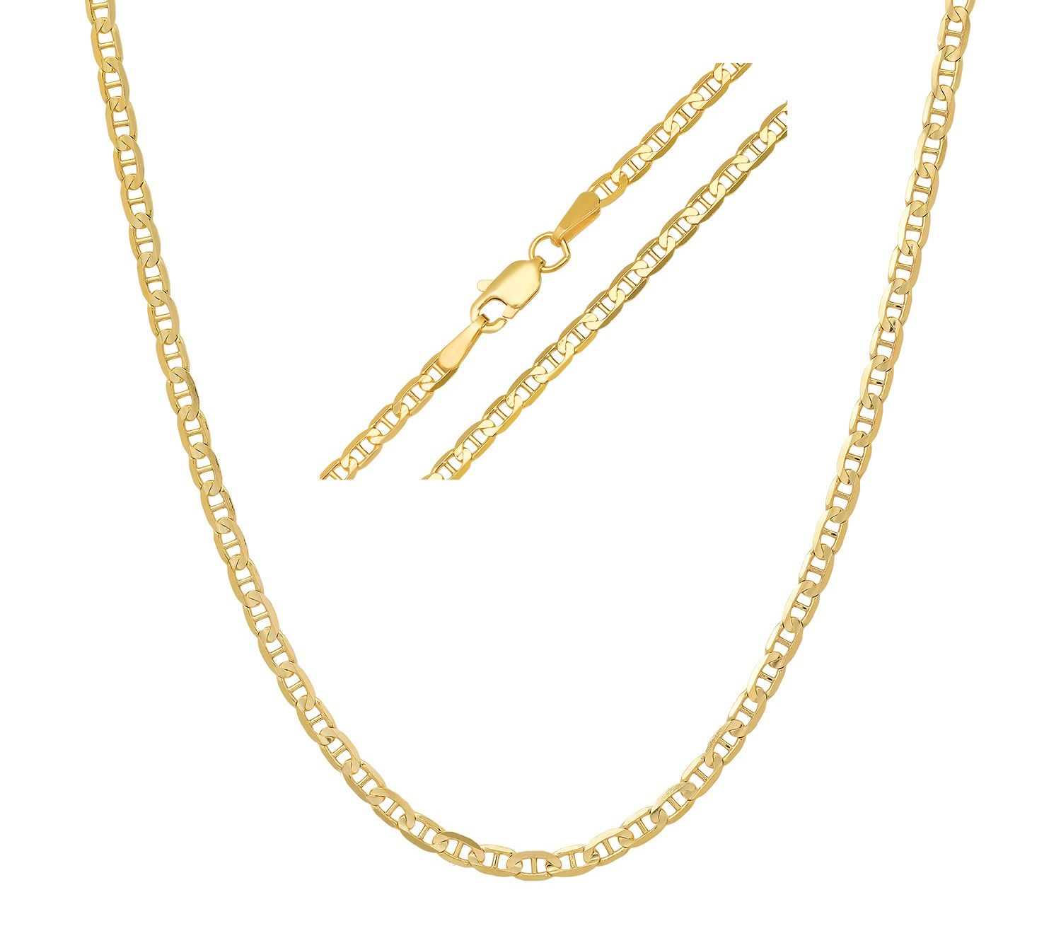 At a touch of luxury to your look with this 14K gold mariner chain necklace. This piece features the distinctive Gucci/Mariner link design, characterized by its flat, interlocking links that offer a sleek and stylish appearance. From the luminous polished finish to the secure lobster clasp, this necklace is perfect for both men and women.