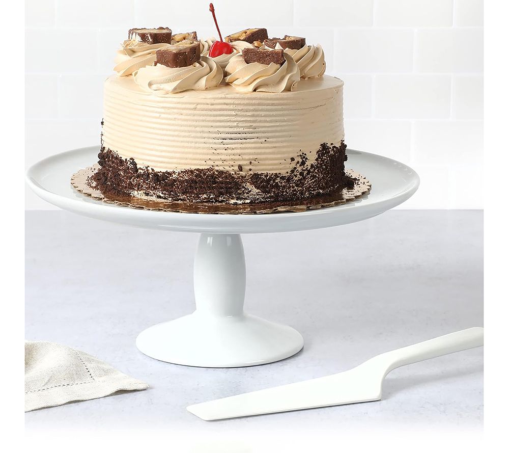 Elevate your dessert presentation with this lovely cake stand and server, a duo that blends elegance with functionality. This ceramic set is perfect for showcasing your culinary masterpieces, from decadent cakes to assorted pastries, making every occasion memorable. From Martha Stewart.