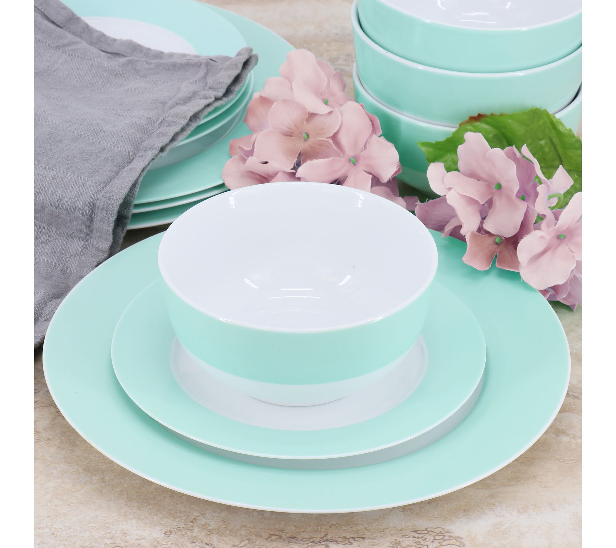 Martha Stewart 12 Piece Banded Fine Ceramic Dinnerware Set