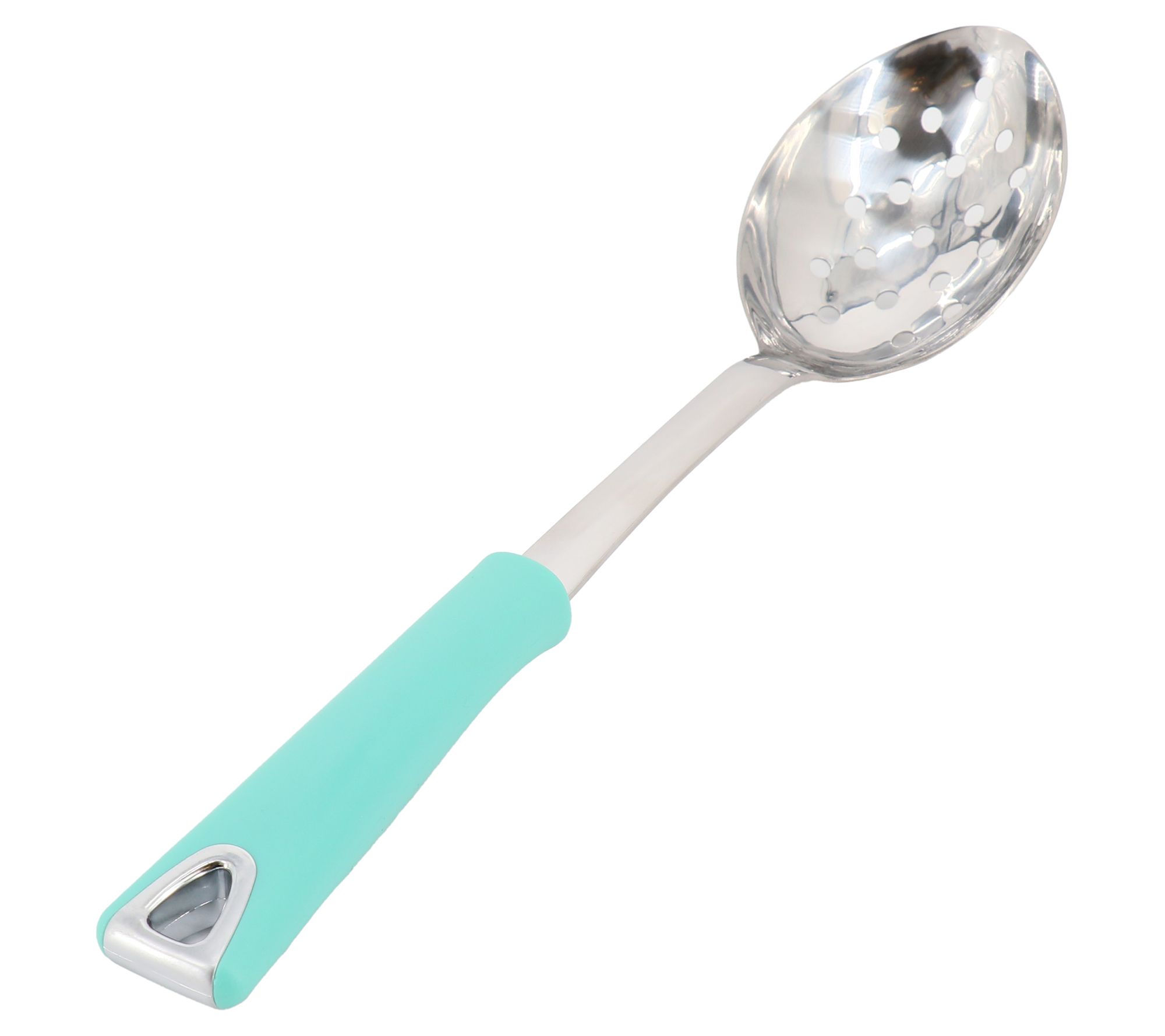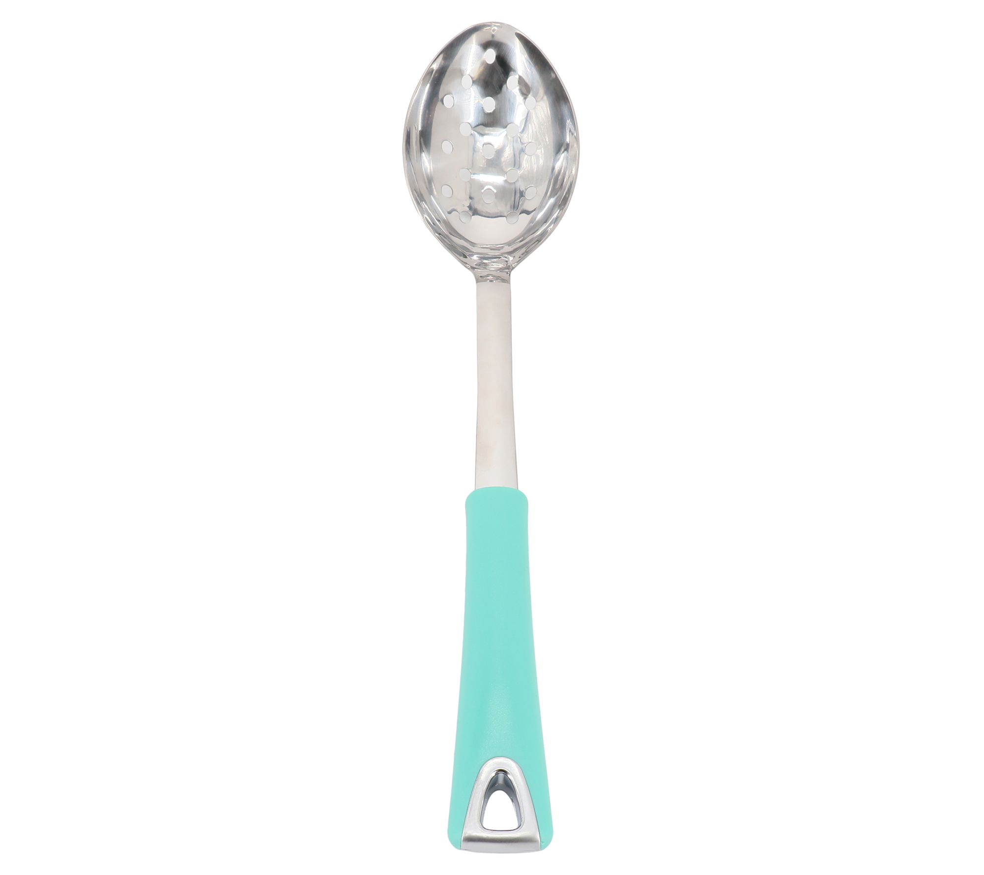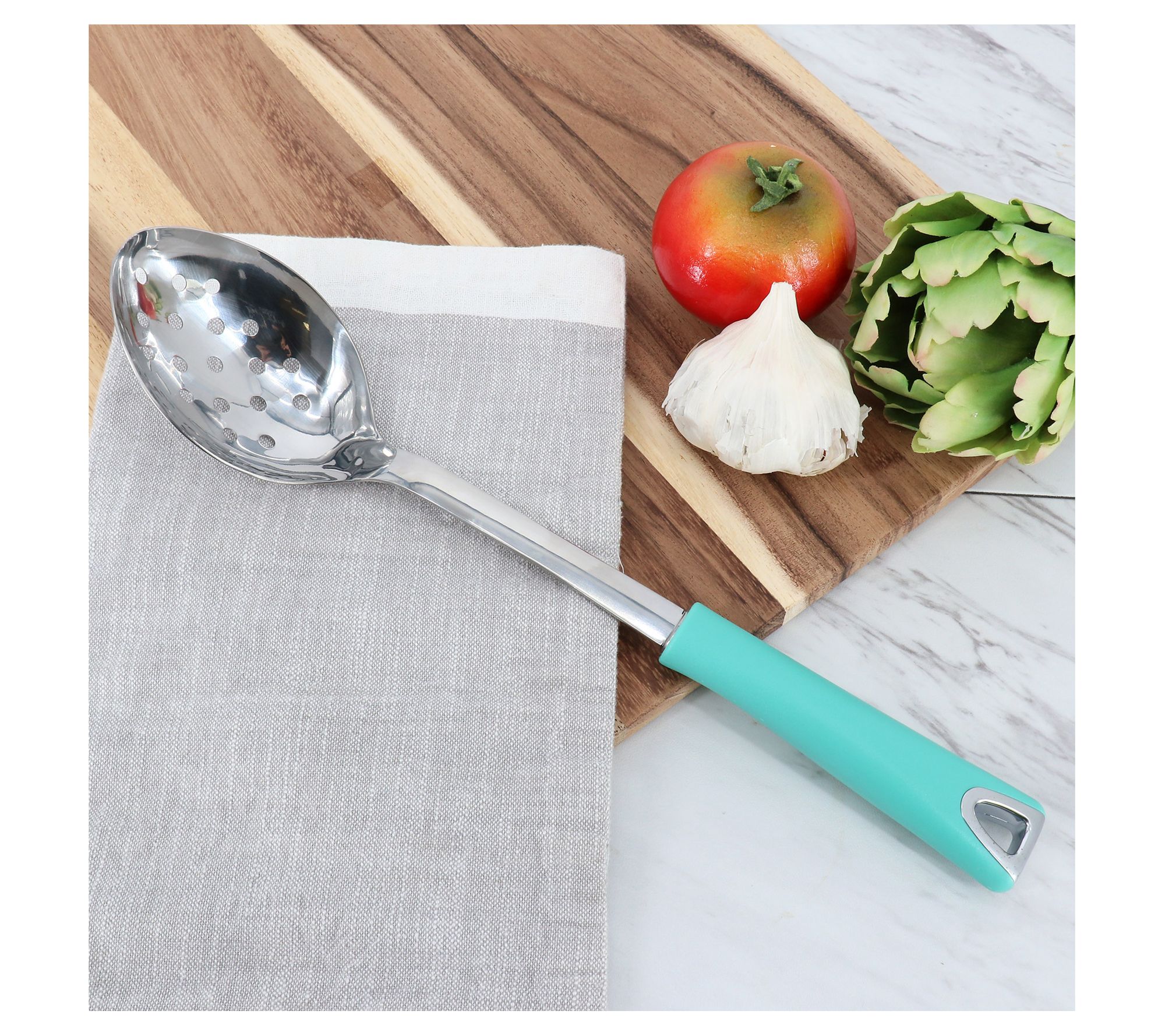 Elevate your kitchen essentials with this slotted spoon that's perfect for dishing out your culinary creations with a touch of elegance. Its ergonomic handle ensures a comfortable, non-slip grip, making serving both effortless and stylish. From Martha Stewart.