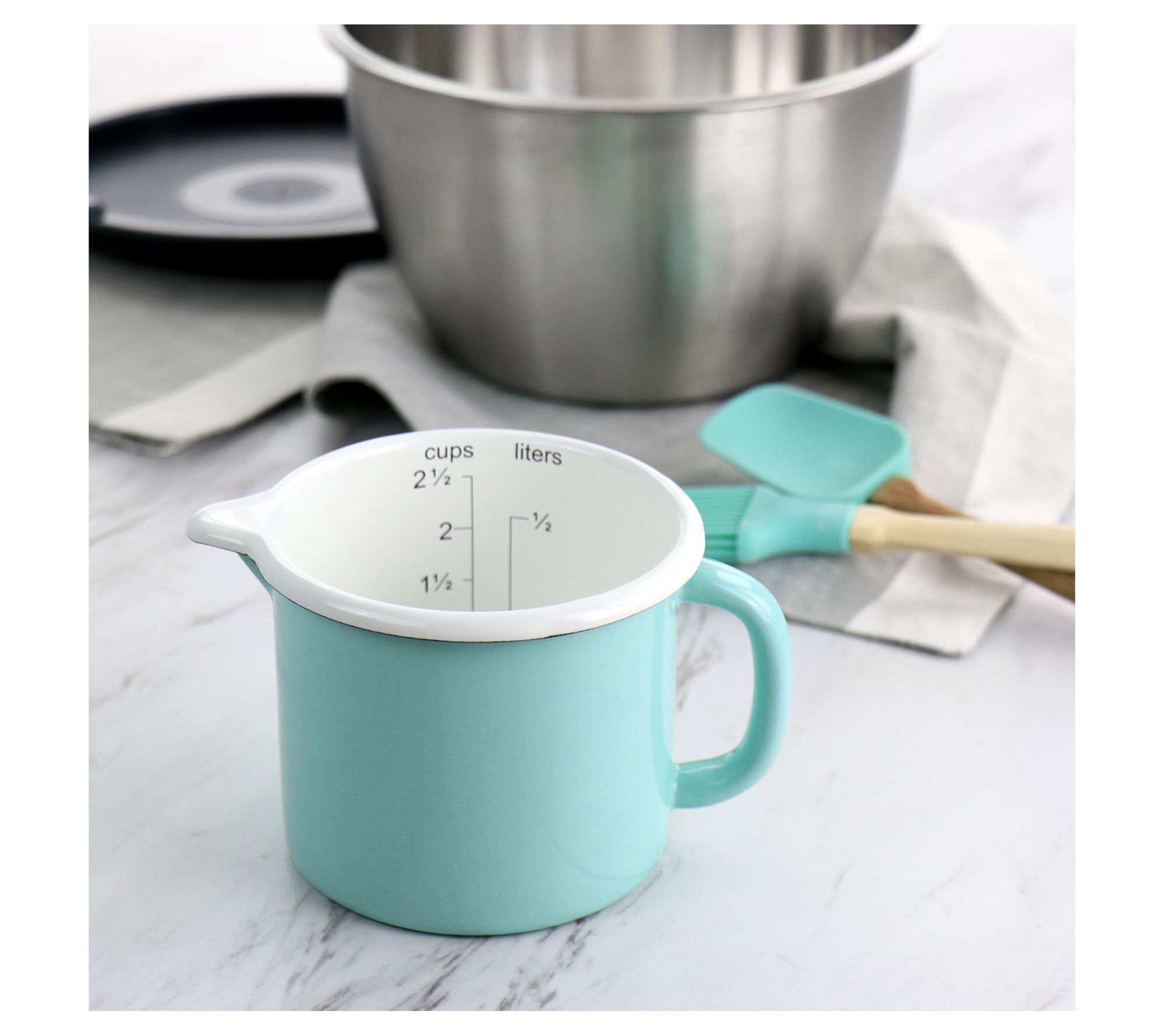 Martha Stewart 2.5-Cup Enamel on Steel Measuring Cup in Aqua