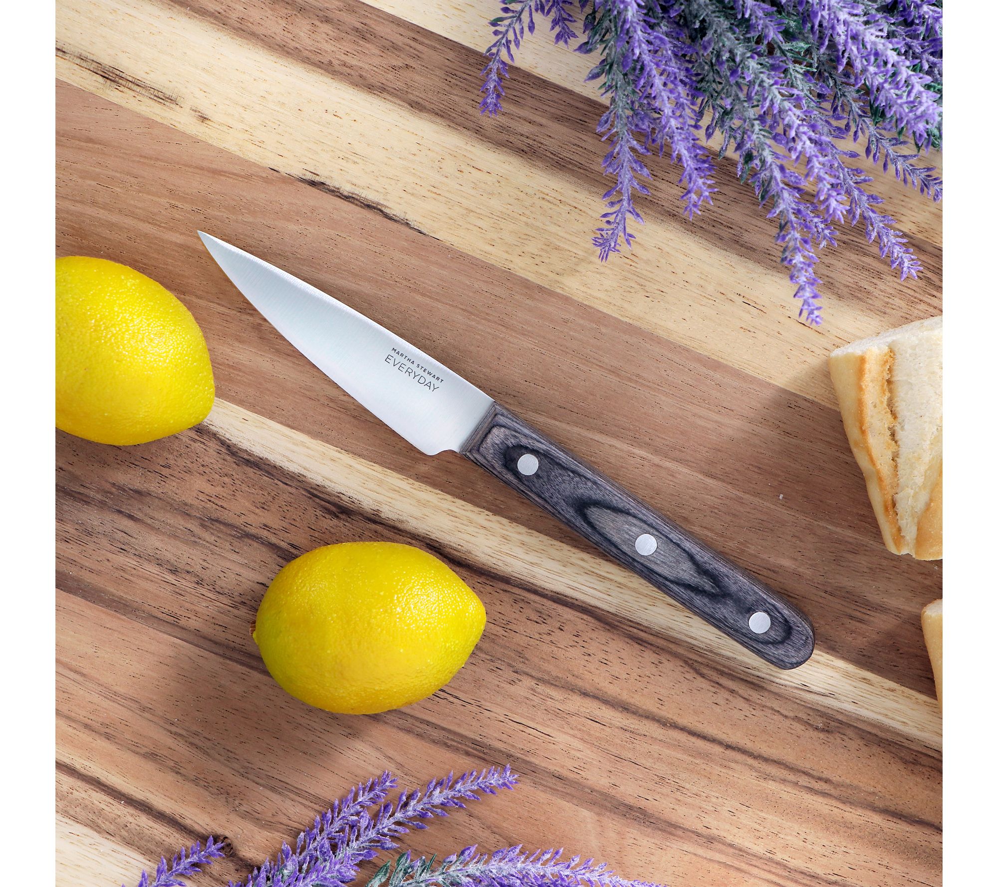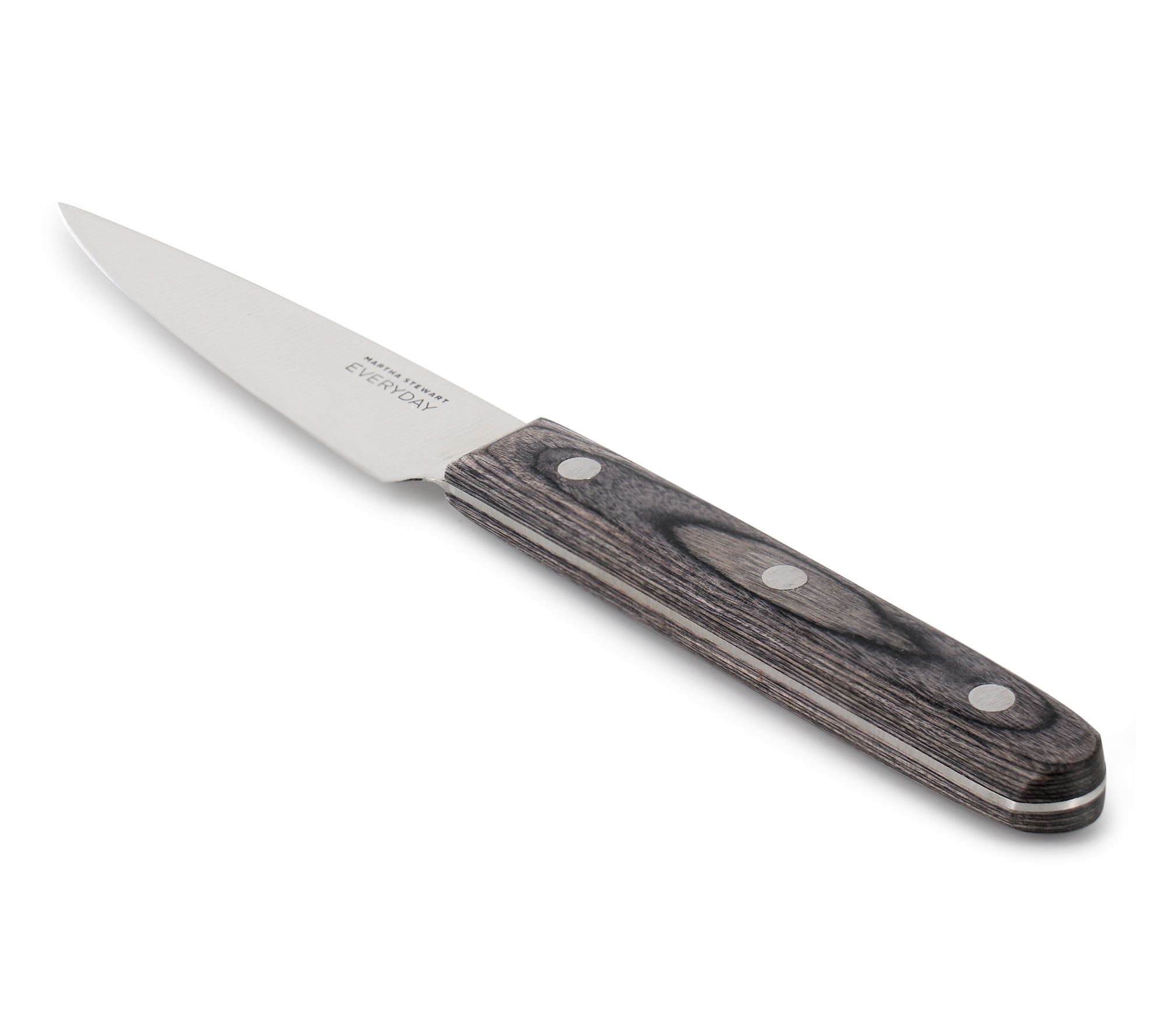 From prepping crisp veggies for a salad to peeling fruit for a midday snack, this paring knife makes everyday kitchen tasks effortless. The smooth, sharp blade glides through ingredients with precision while the wood handle offers a comfortable, balanced grip -- so you can slice, dice, and mince with confidence. From Martha Stewart.