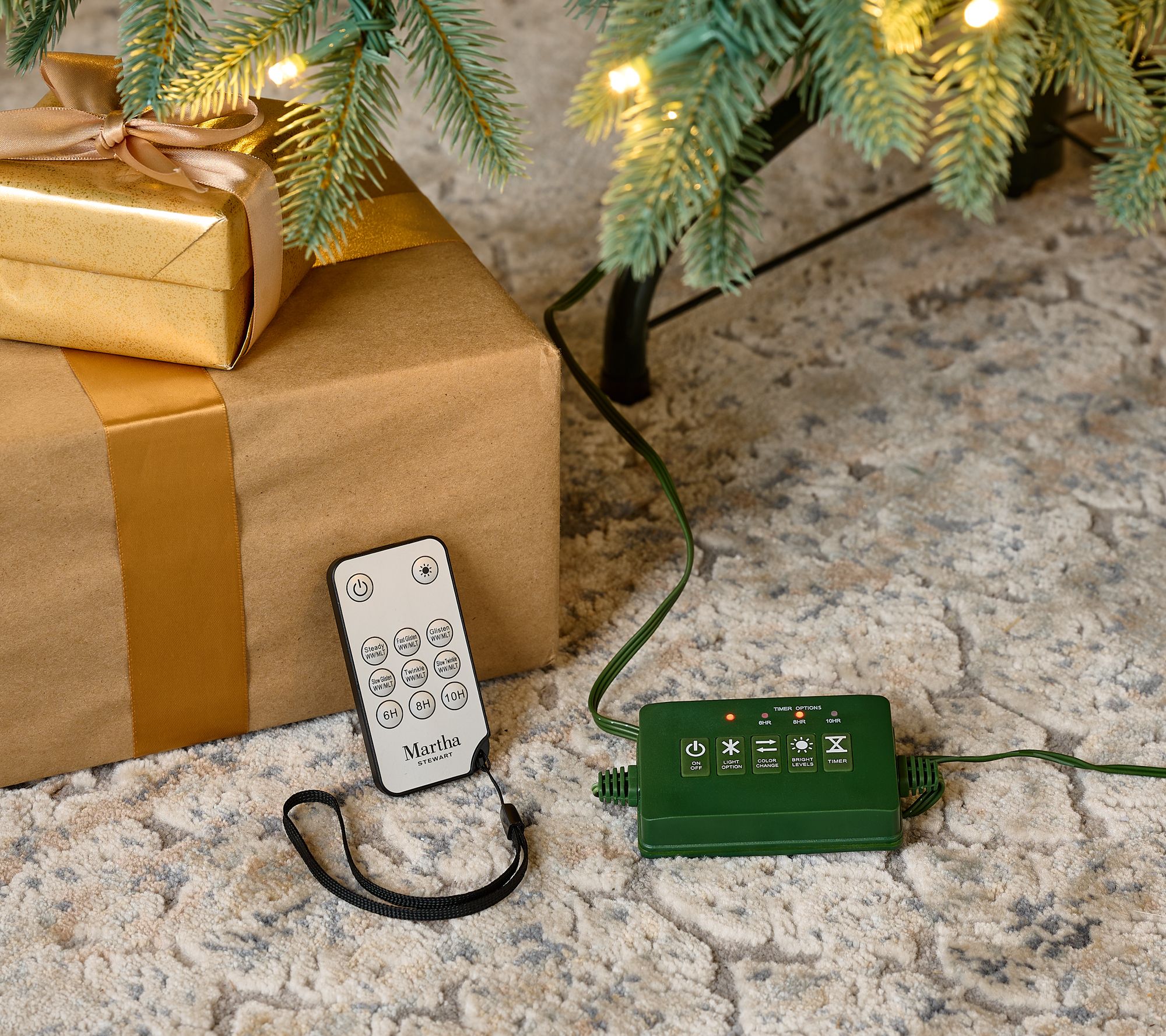 Holiday decorating gets an instant upgrade when this downswept blue spruce finds a home in your favorite corner. Imagine gatherings illuminated by a spectrum of rich lights -- just use the included remote to switch between warm white or multi, adjust the brightness, and set the mood for celebrations. With simple controls and classic charm, festive evenings feel brighter and cozier. From Martha Stewart.