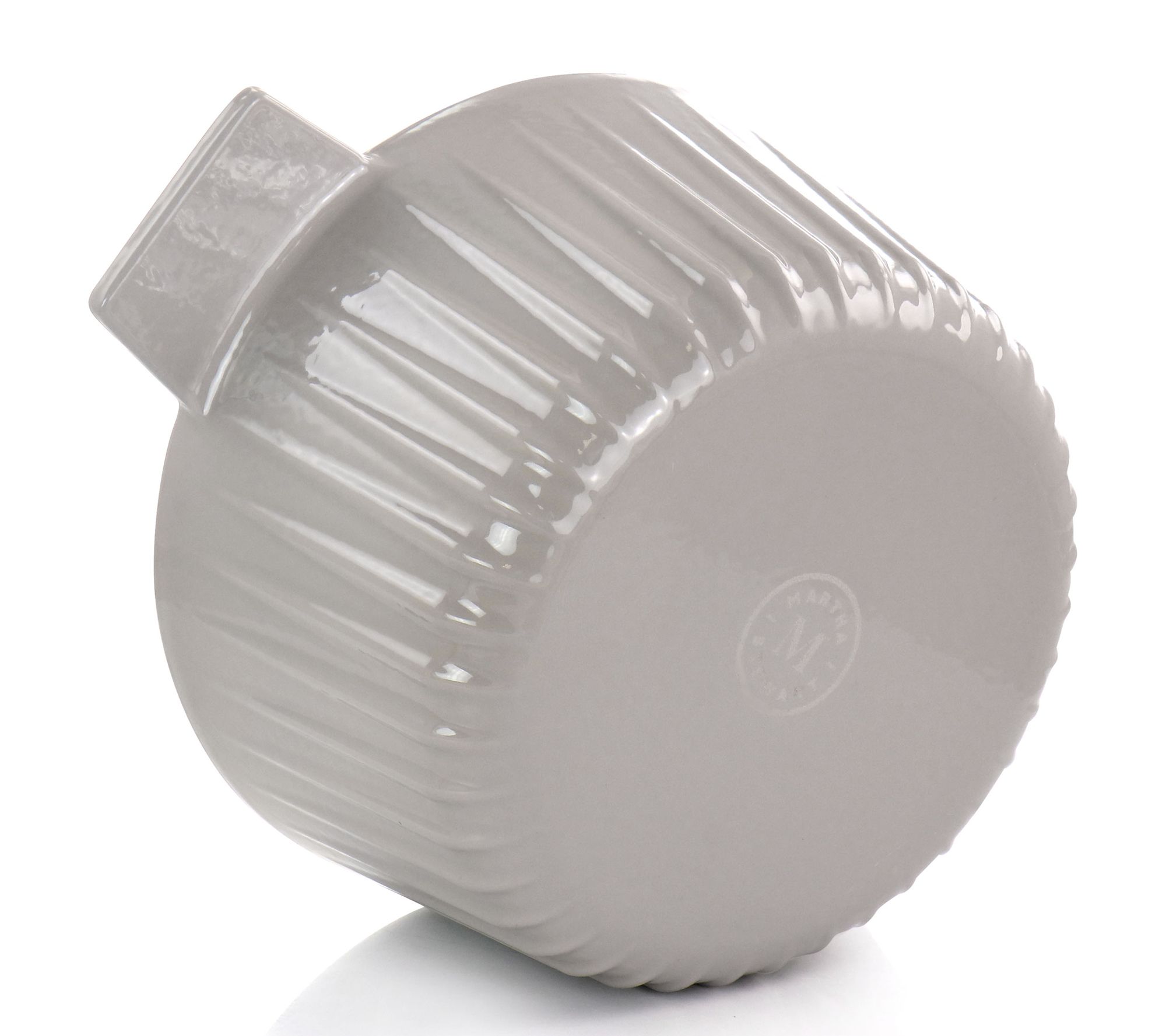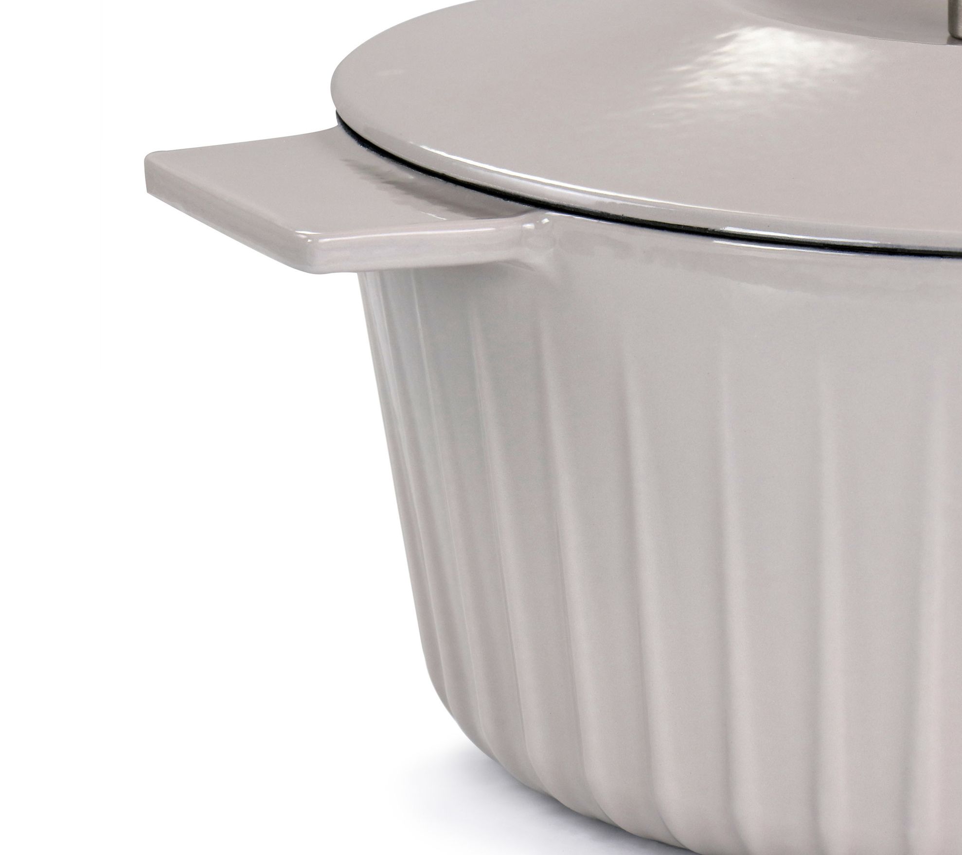 This classic Dutch oven features an enameled nonstick surface with integrated handles that let you move from stove to oven to table with ease. A simple embossed stripe pattern adds an element of design. From Martha Stewart.