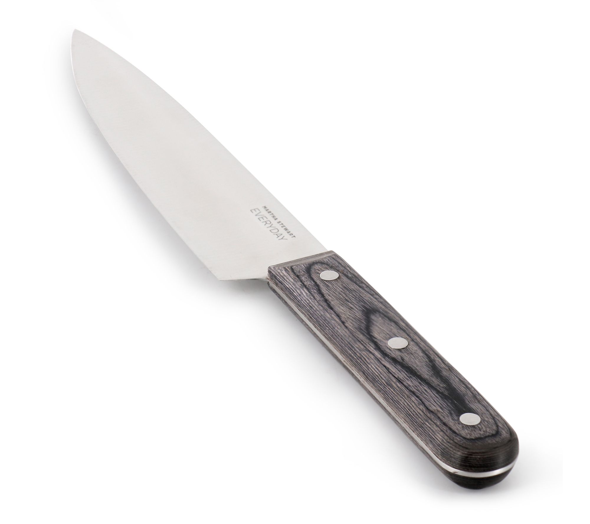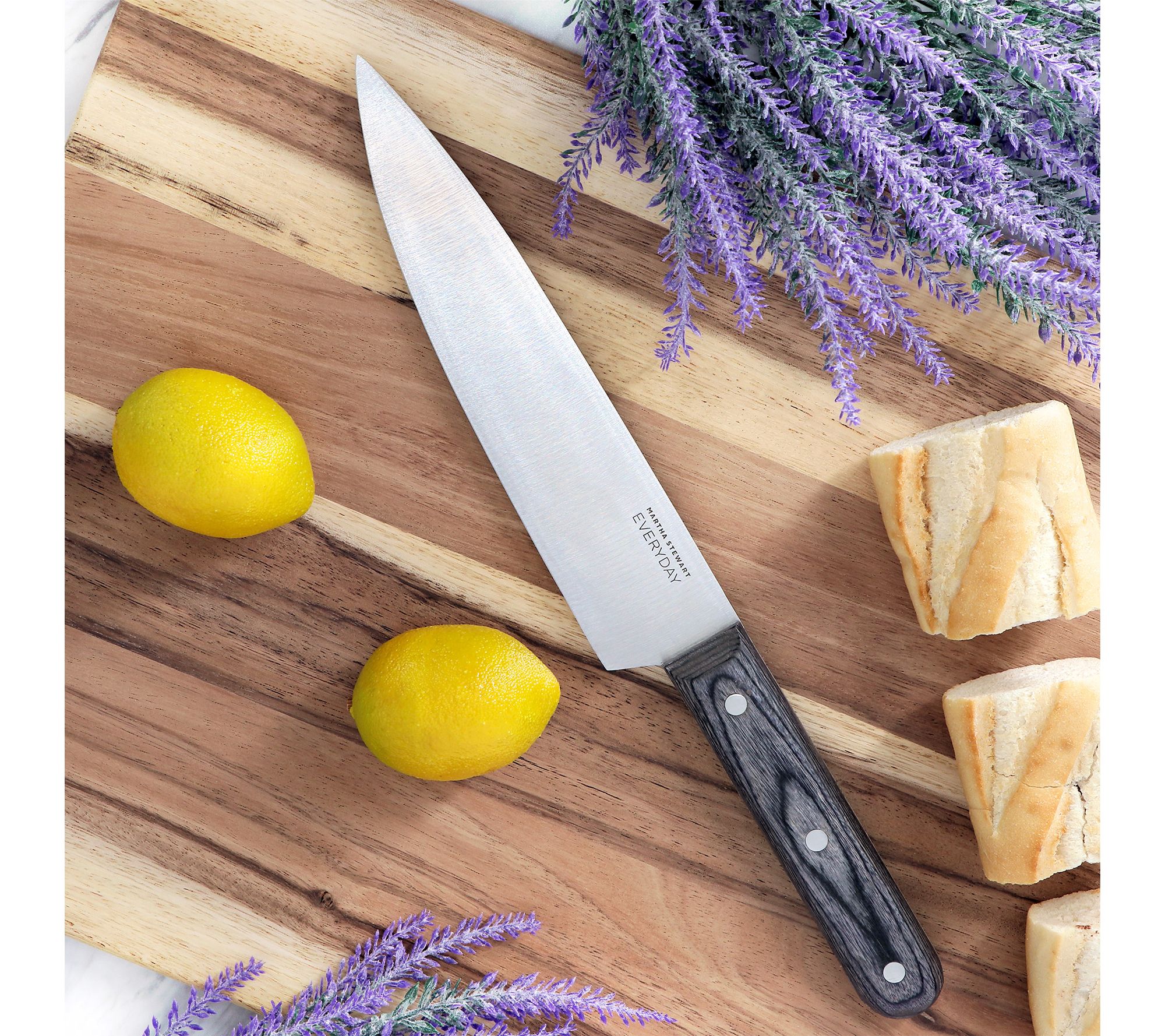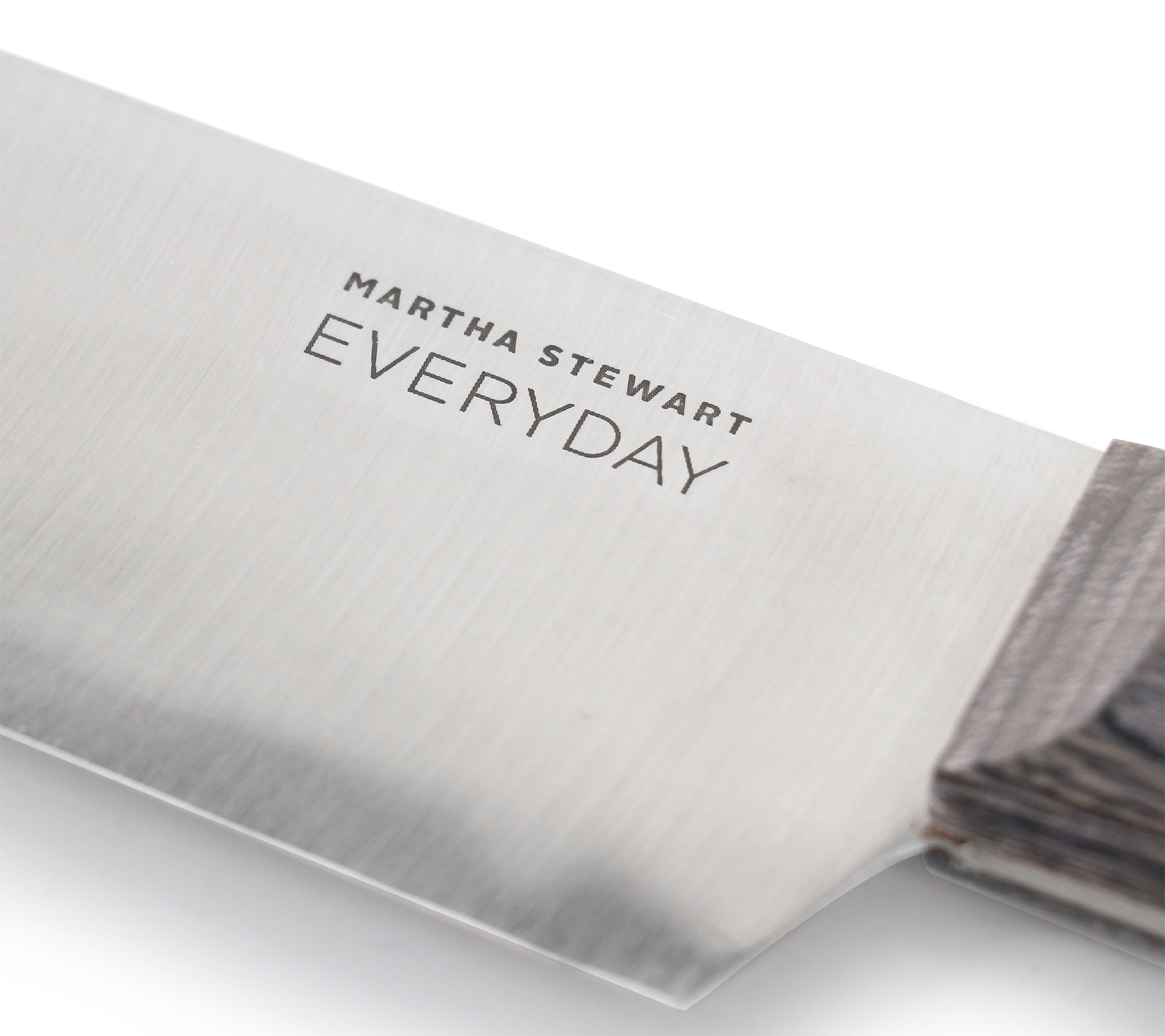 From prepping fresh veggies for a homemade stir-fry to slicing juicy roasts for family dinners, the Martha Stewart 8" chef knife brings ease and confidence to every culinary task. Its high-carbon stainless steel blade glides through ingredients, while the beautifully balanced pakka wood handle feels comfortable in your hand, making everyday cooking feel like a special occasion. From Martha Stewart.