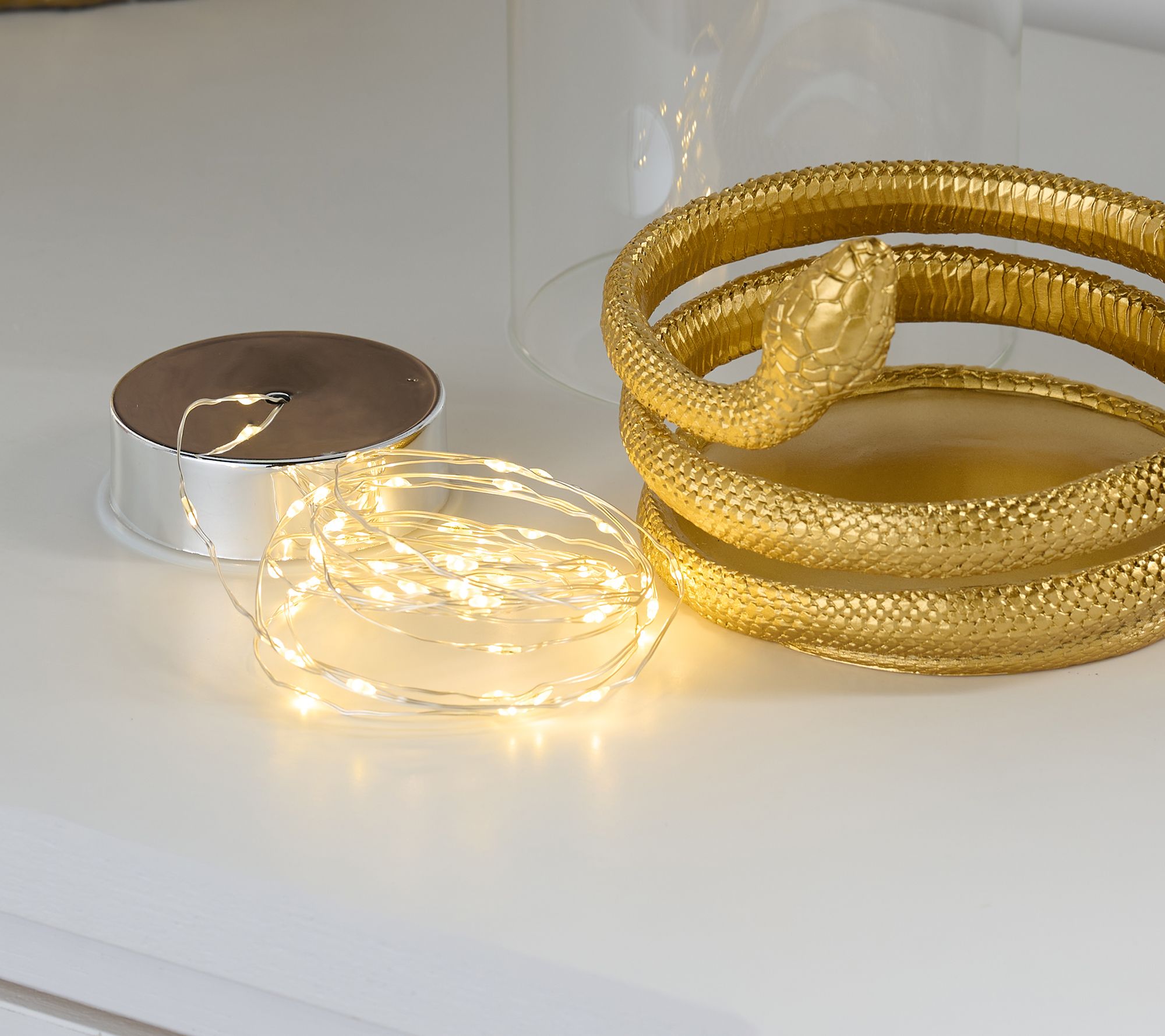 Such a charmer! Add dramatic flair to your seasonal celebrations with this twinkling glass snake cloche, where a gracefully coiled snake encircles glowing fairy lights under a clear dome. From Martha Stewart.