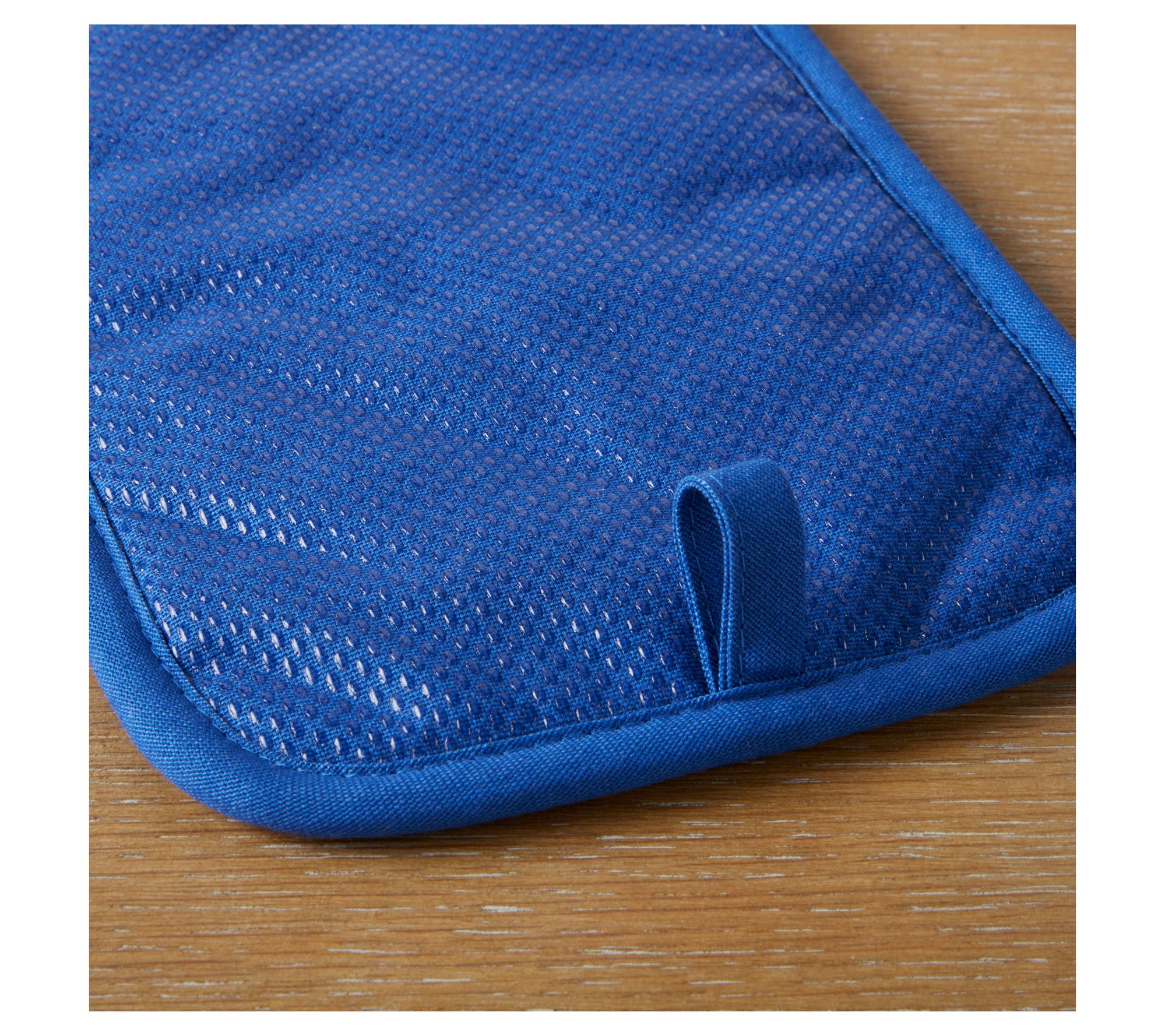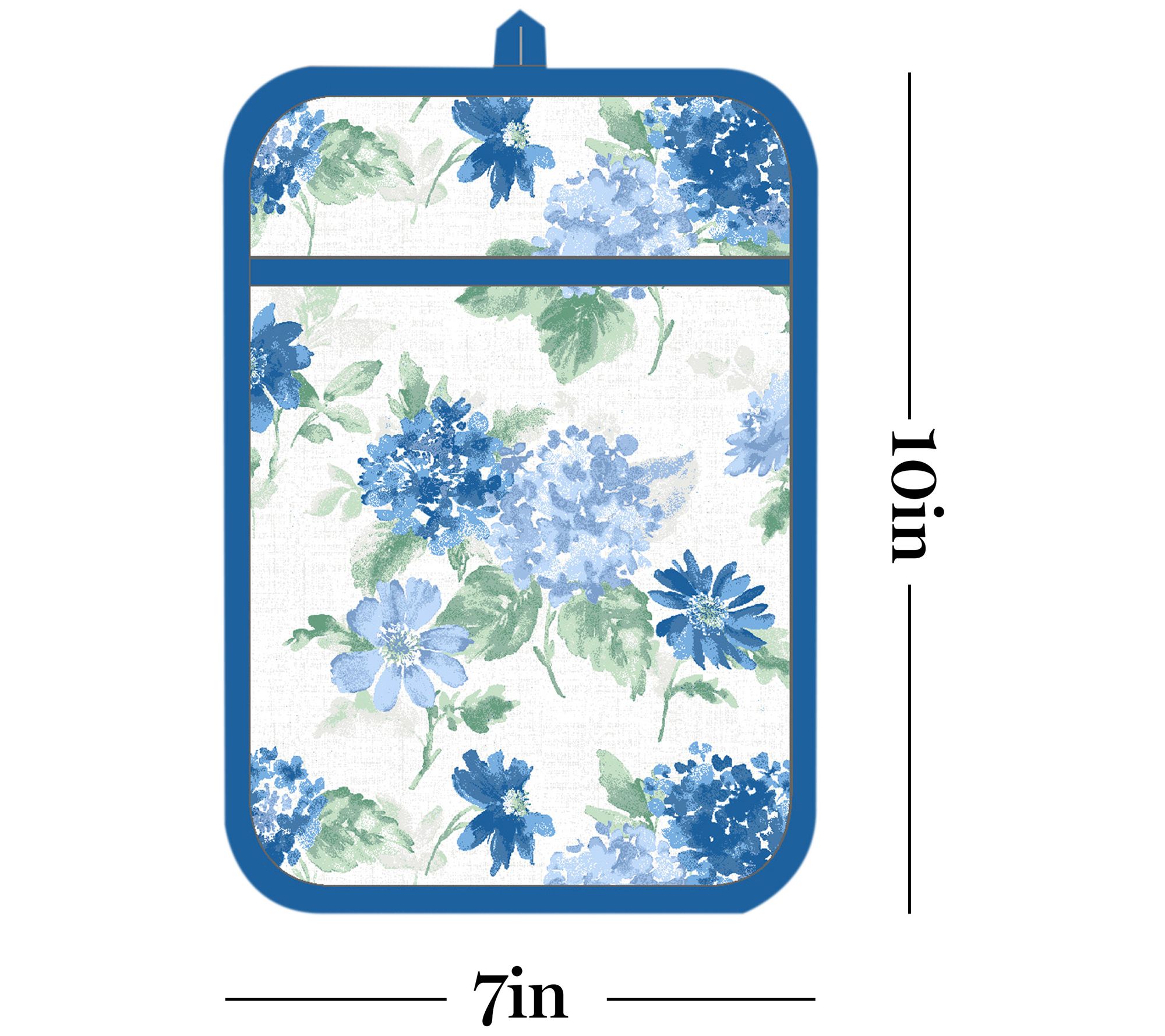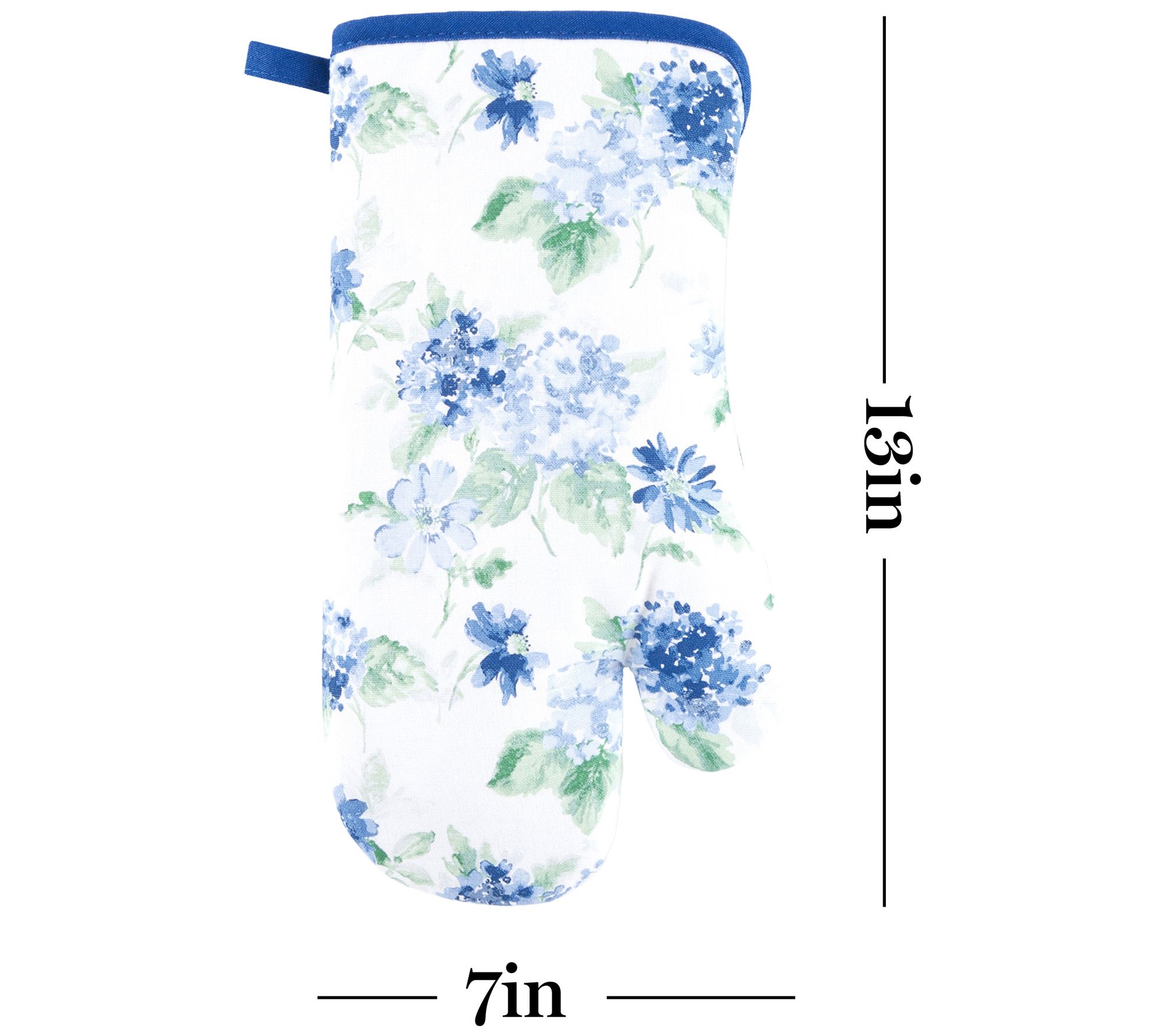 • Measures 7"W x 13"L (oven mitt); 7"W x 10"L (pot holder)