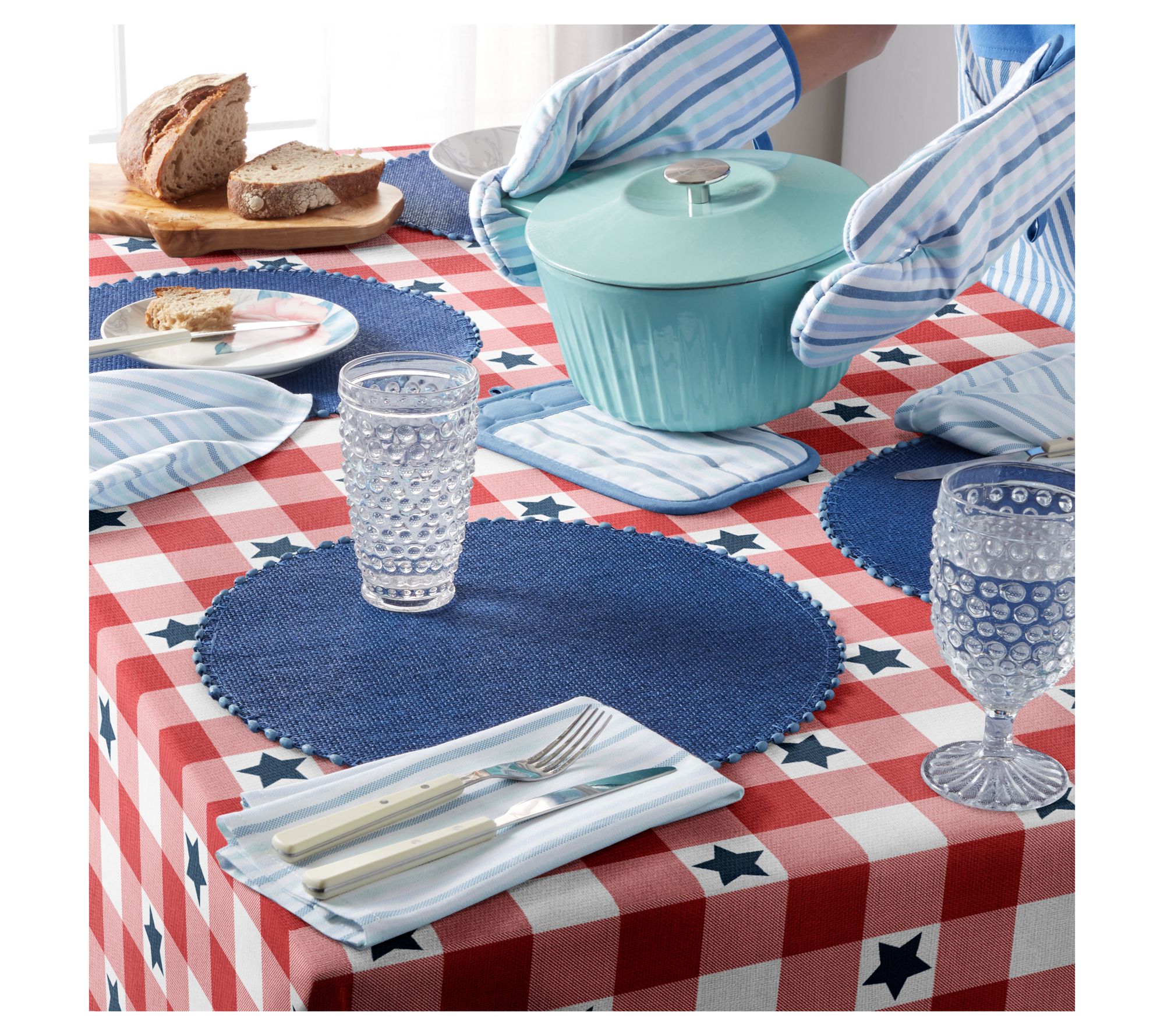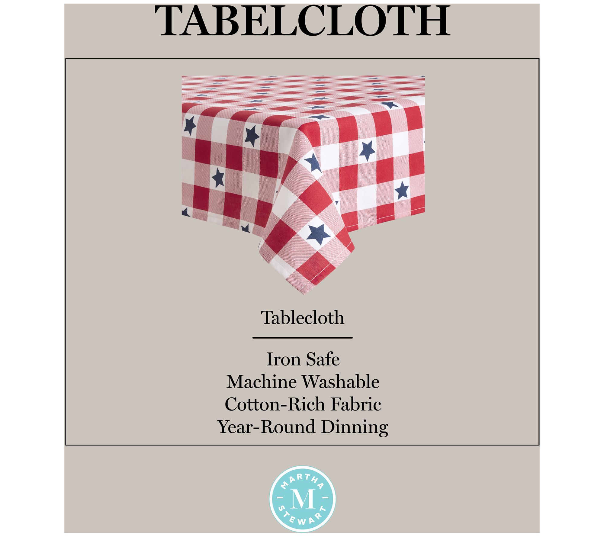 MARTHA STEWART Americana Star Gingham 60x120 Indoor Tablecloth