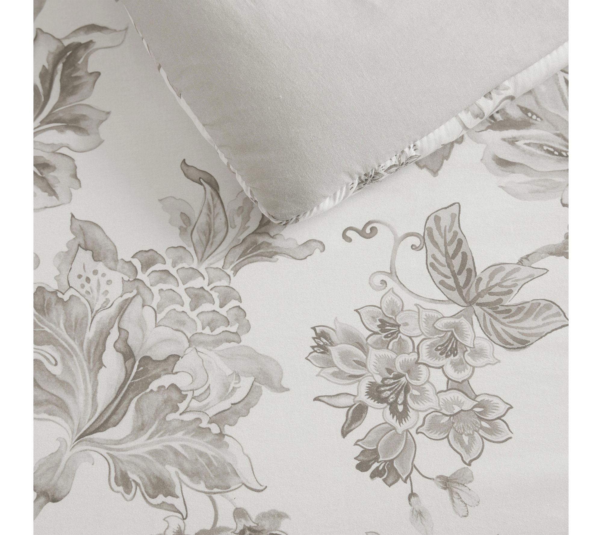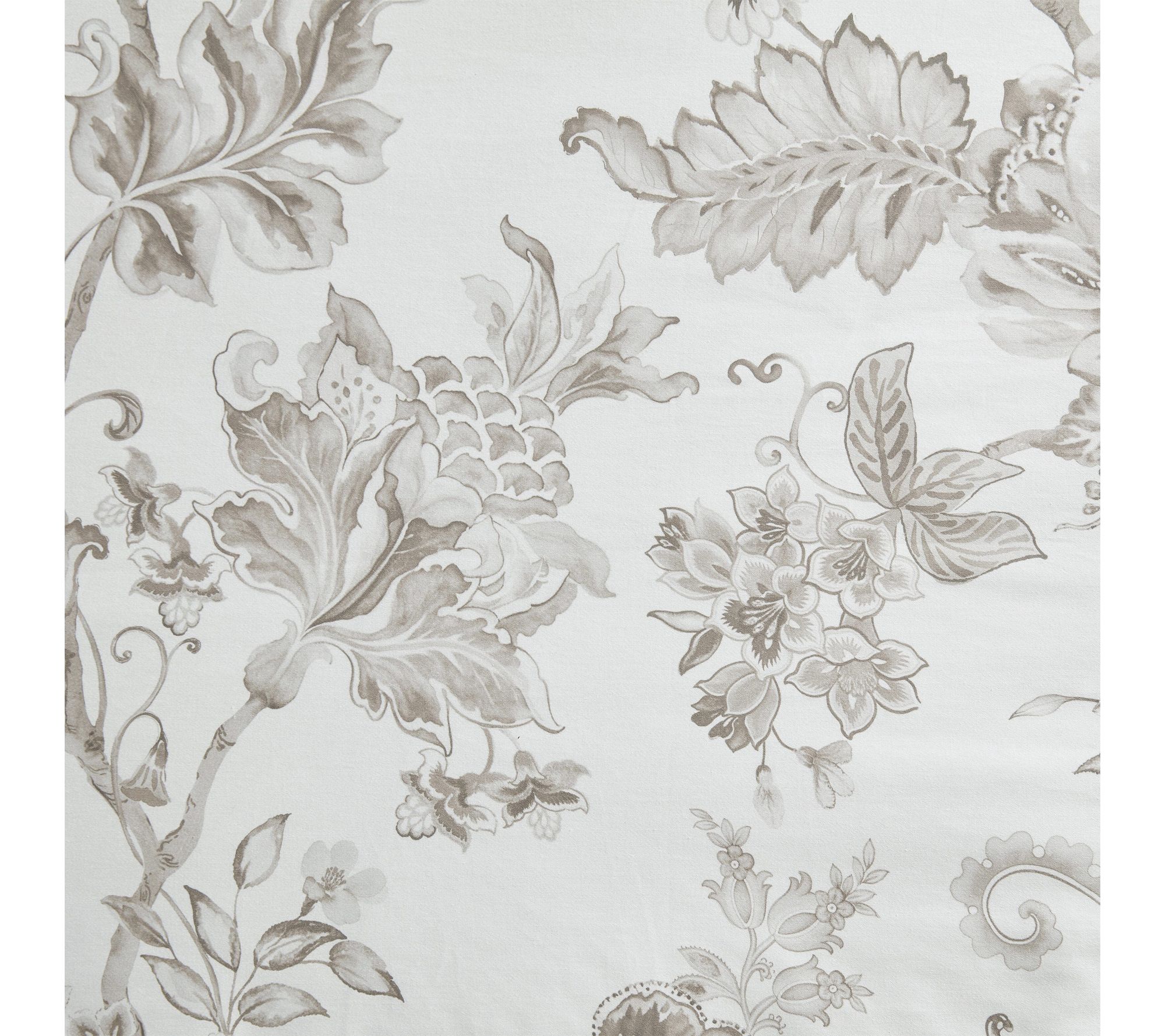 Vintage-inspired floral and foliage print in soft gray blends classic style with modern comfort