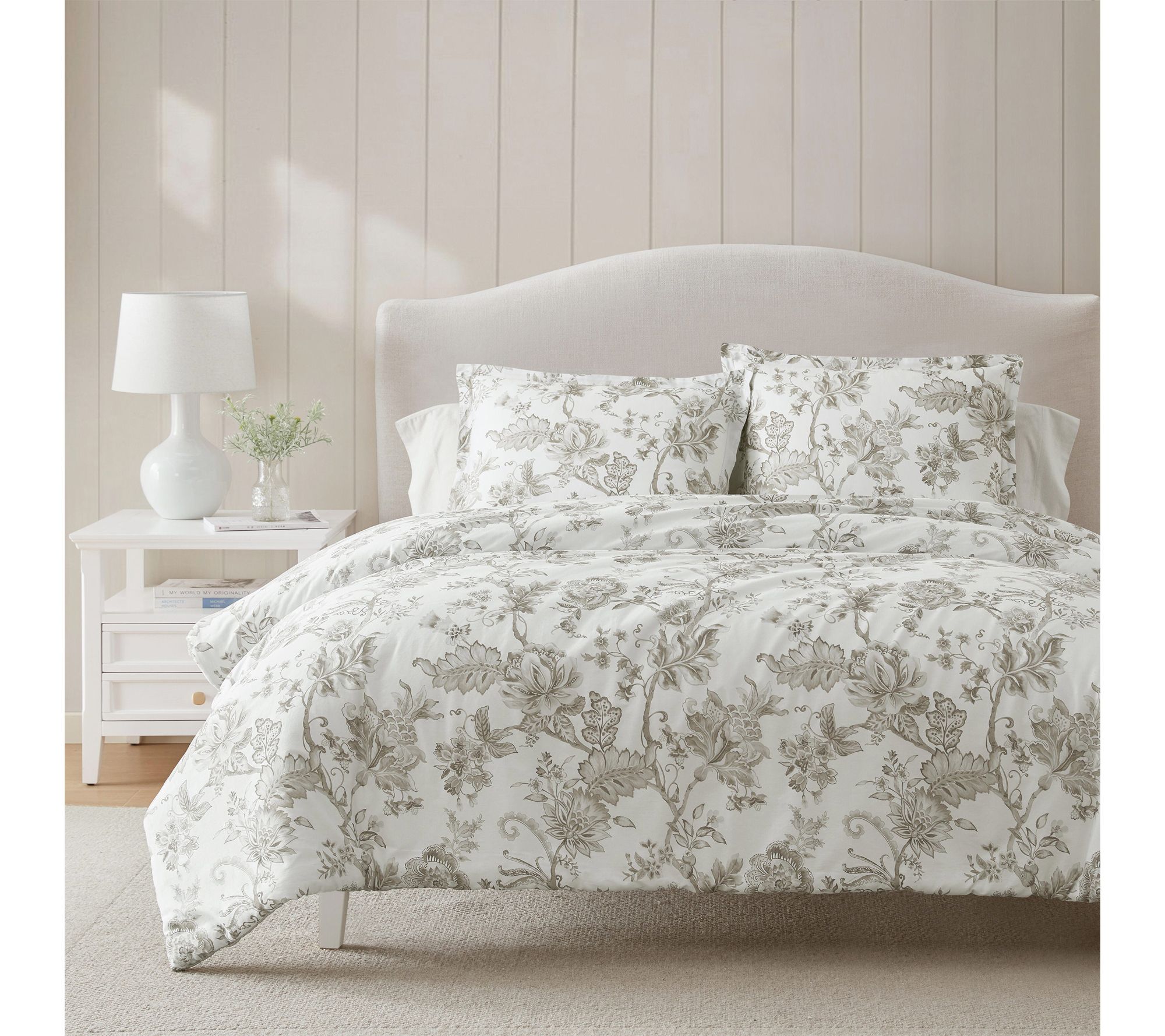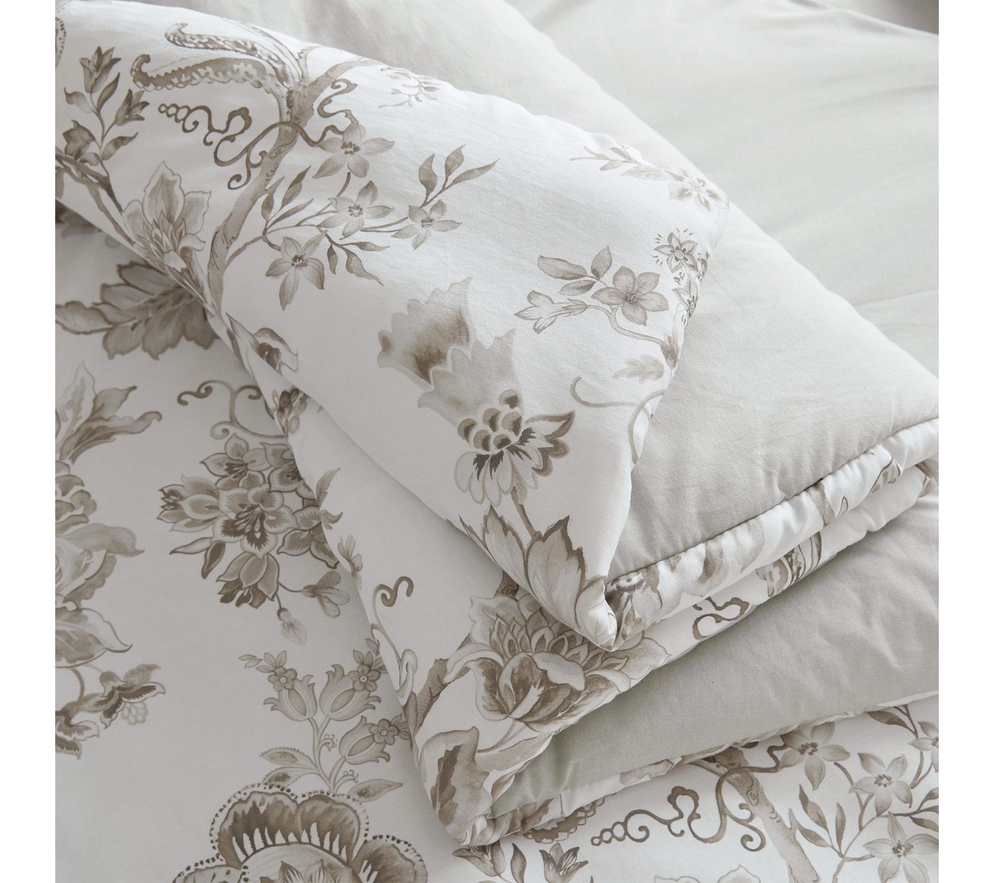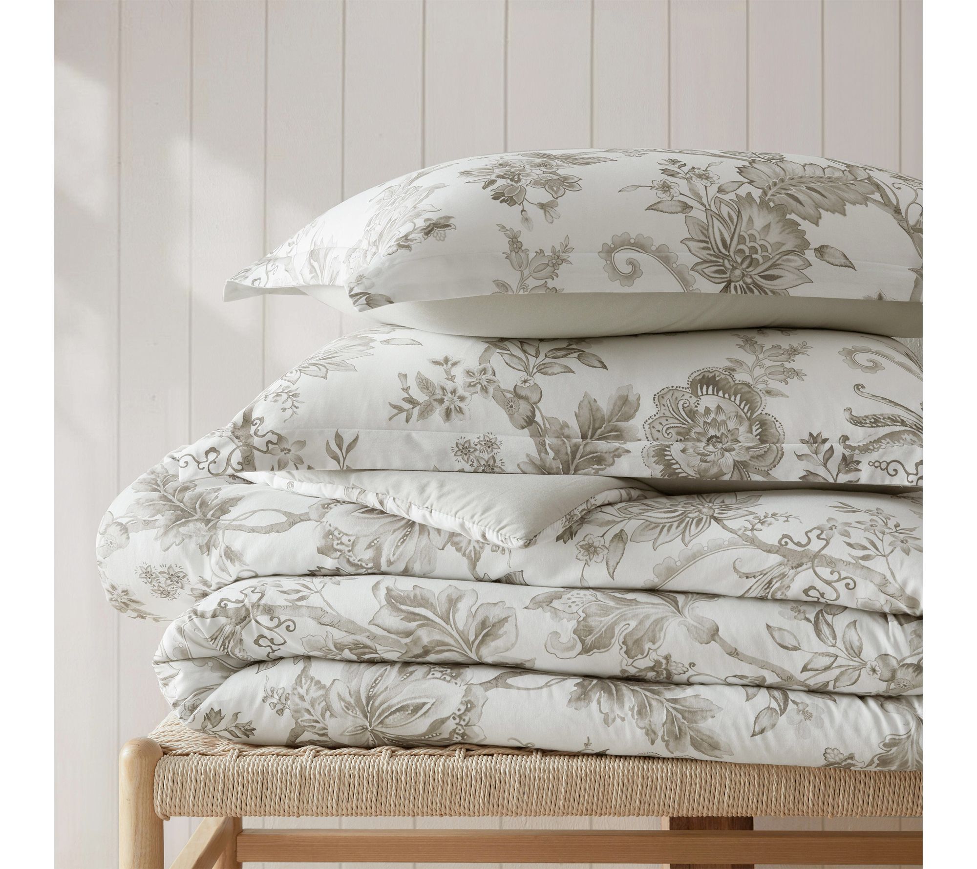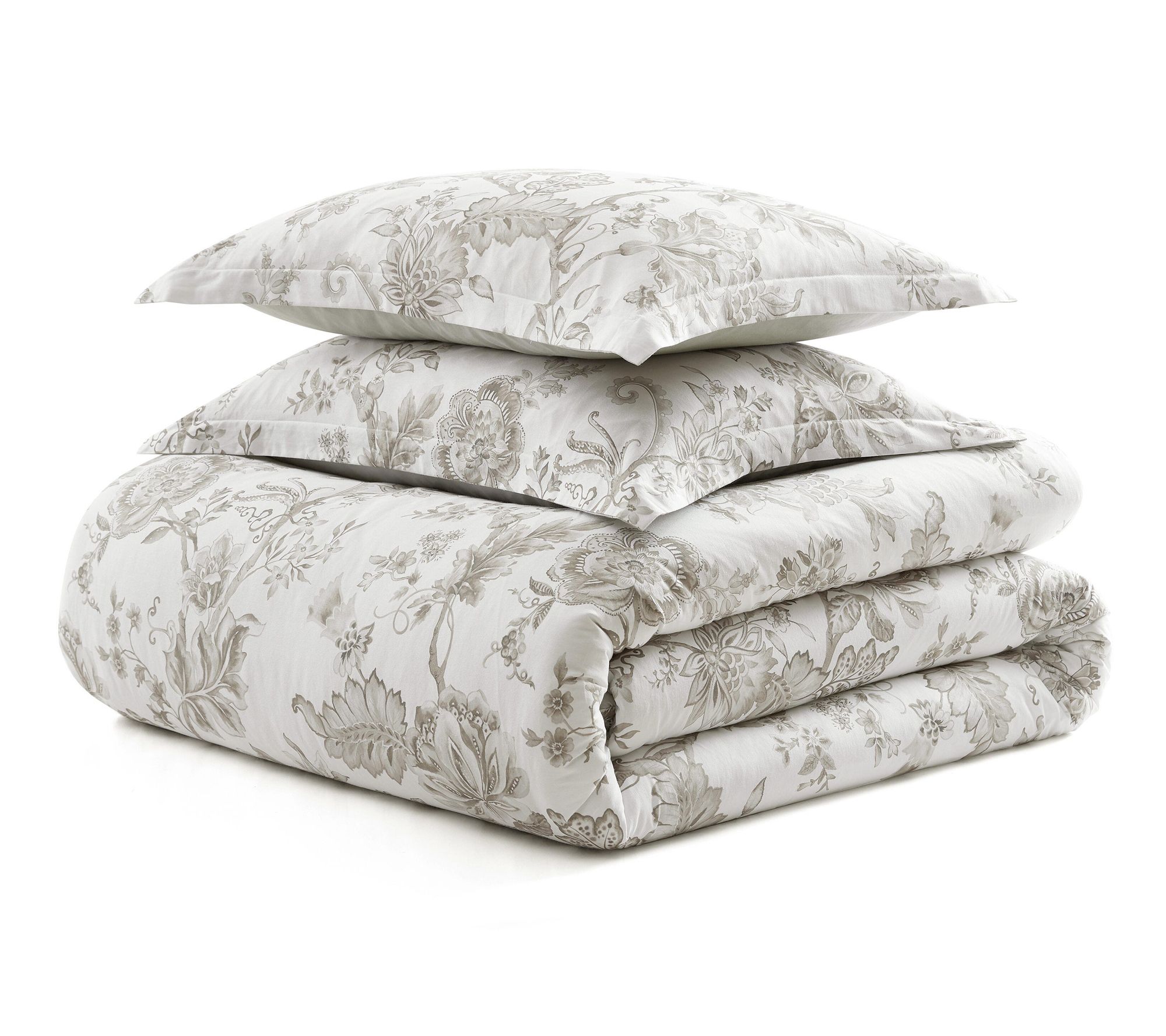 Let your bedroom bloom with the inviting charm of a floral comforter set. Vintage-inspired sketch florals in soft gray elegantly complement both classic and modern spaces, while the smooth cotton sateen finish offers everyday comfort and a silky, soft touch. Whether refreshing the master suite or designing a peaceful guest retreat, this plush bedding brings a sense of artistry and serene beauty to your home. From Martha Stewart.
