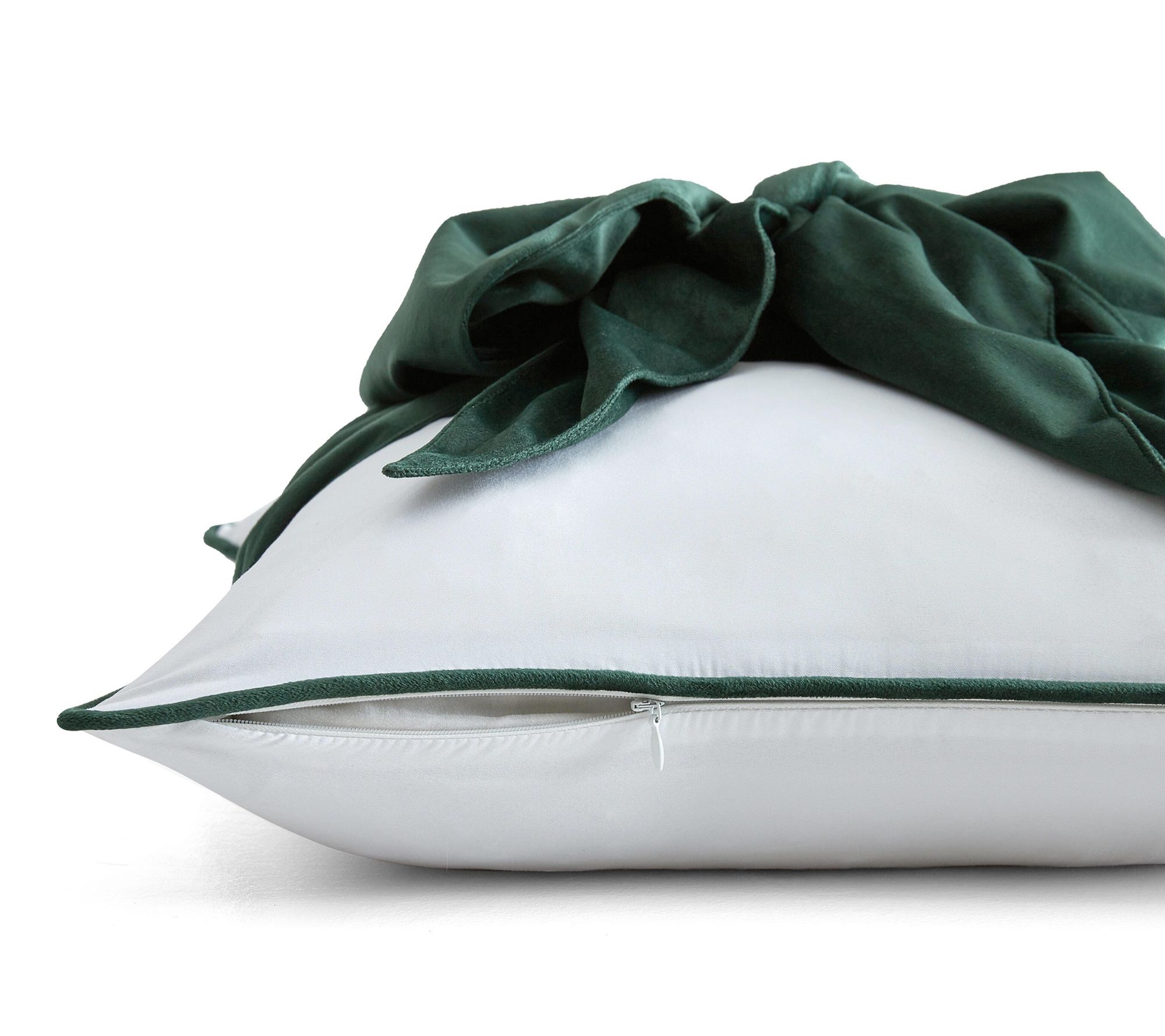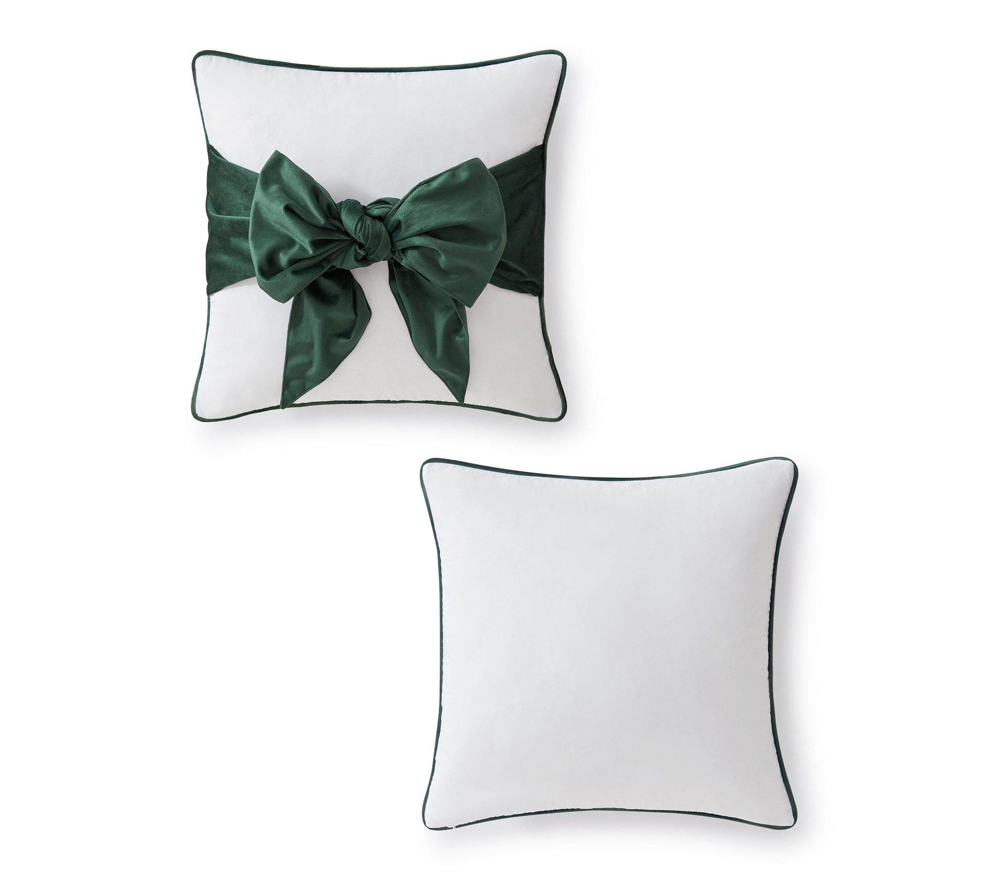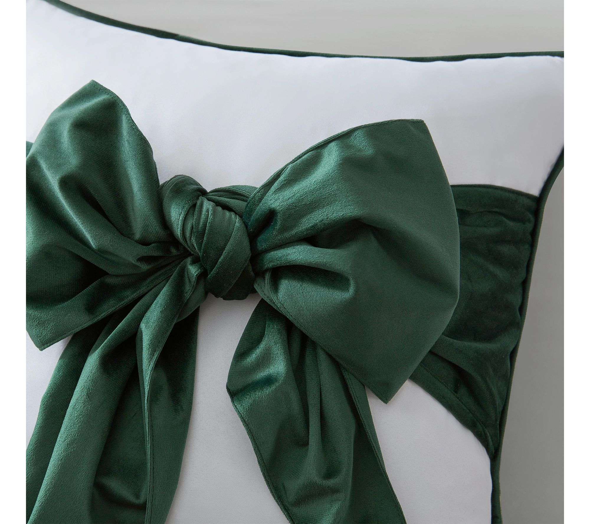 Infuse your living space with a touch of sophistication using this decorative pillow, featuring a lush green bow set against crisp white. The striking oversized bow and tailored corded edge create an eye-catching accent, bringing texture and artistry to sofas, armchairs, or beds. Everyday comfort meets refined style with a hidden zipper closure and machine washable design. From Martha Stewart.