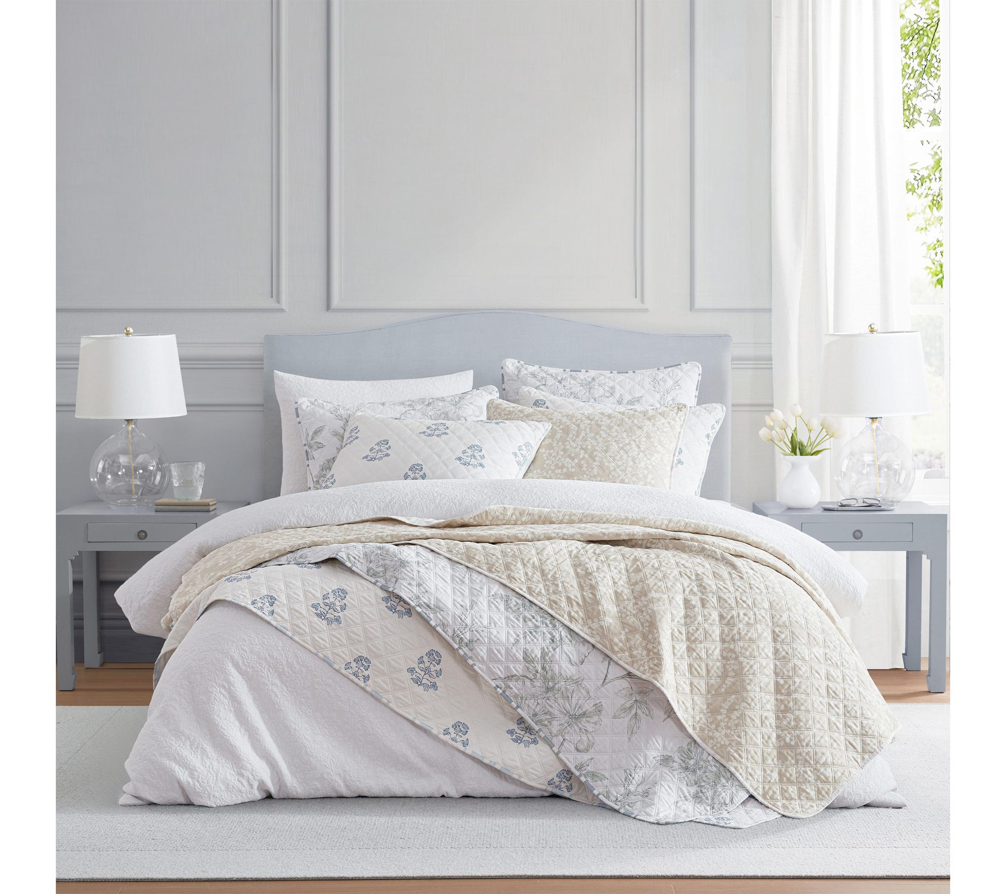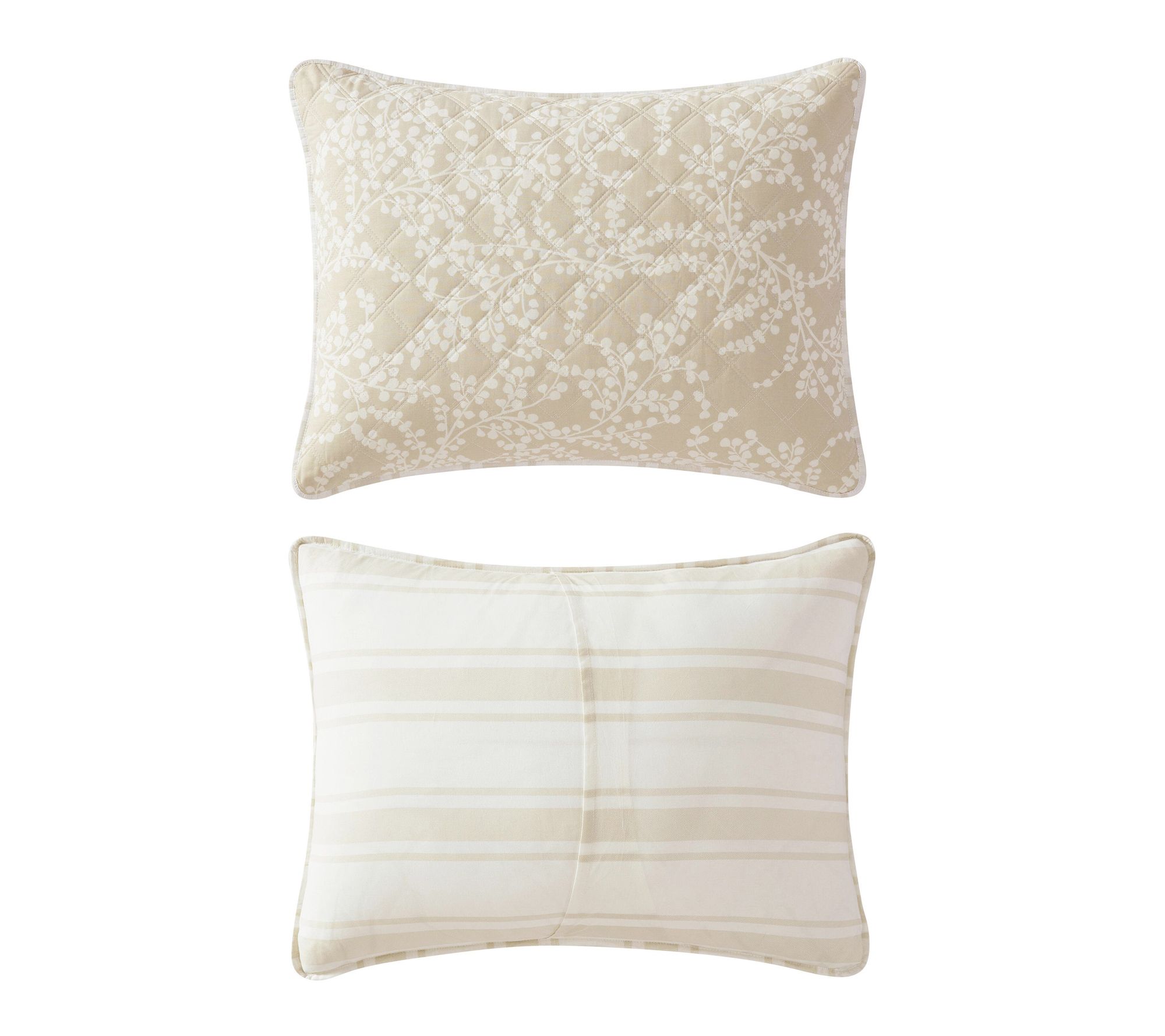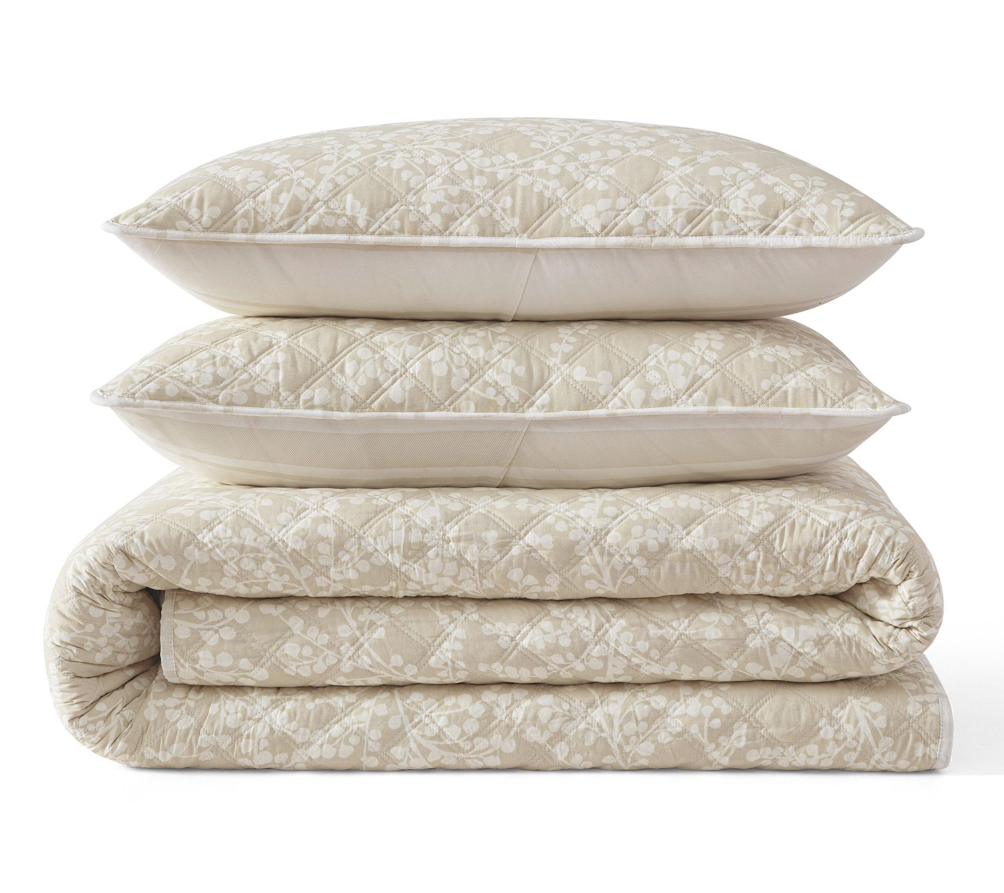 Martha Stewart Branches Beige/White Cotton Queen Quilt Set