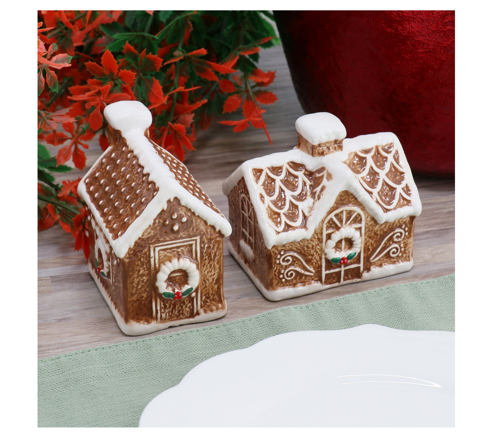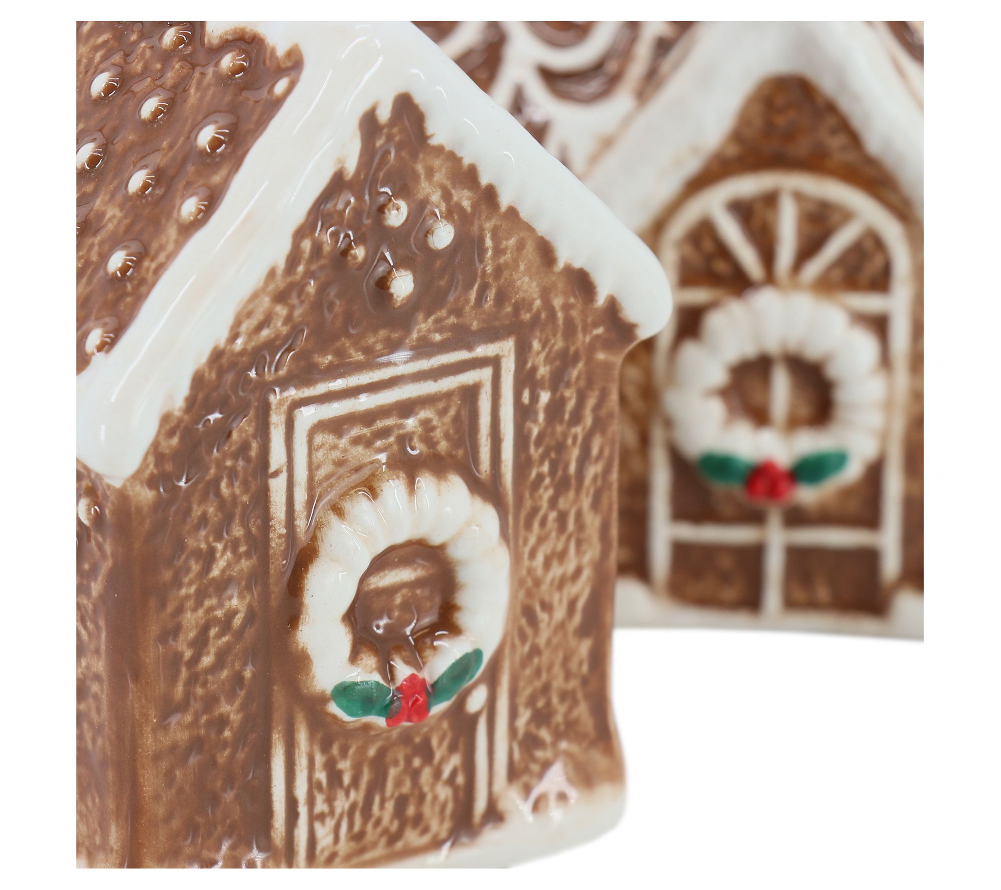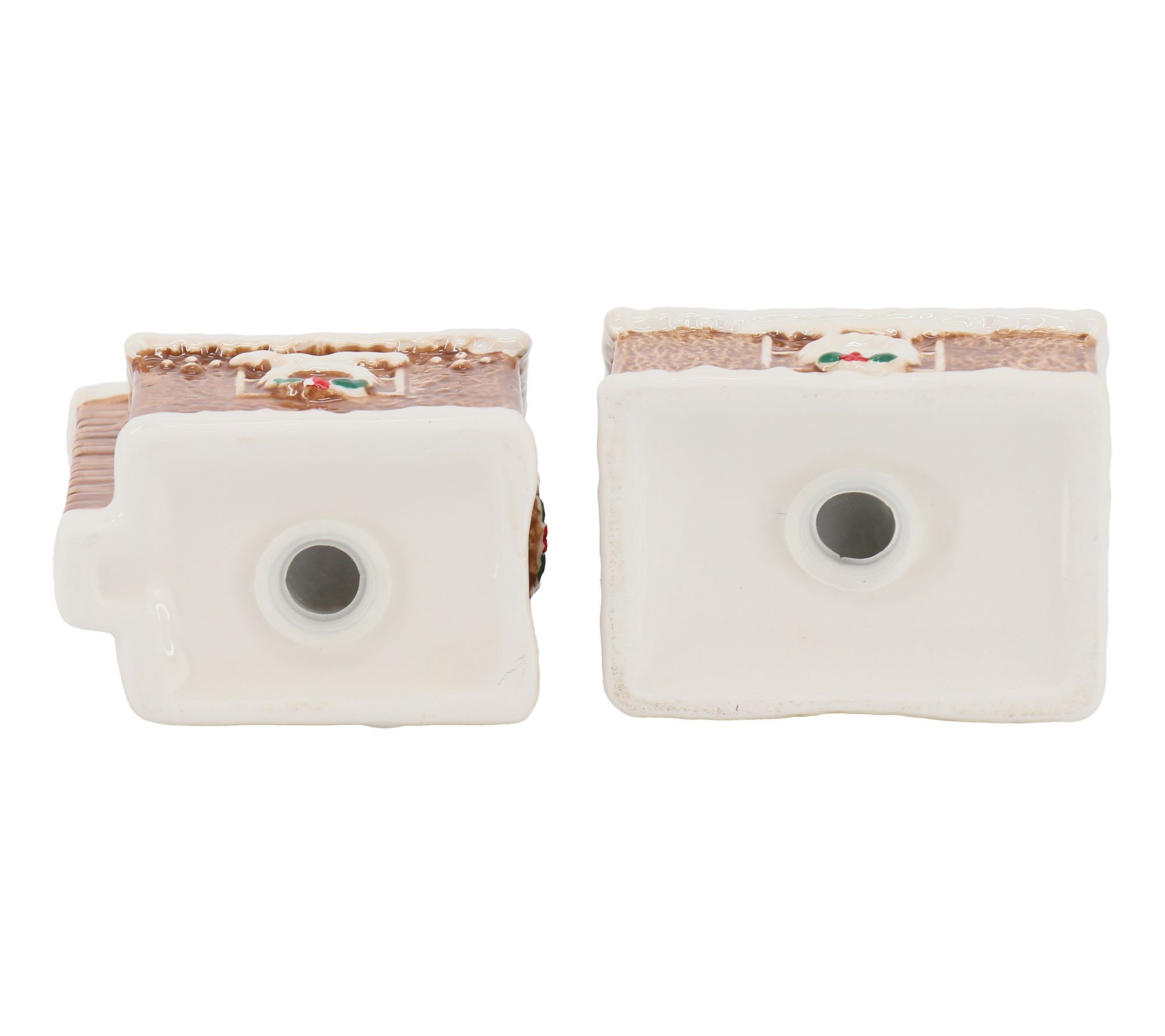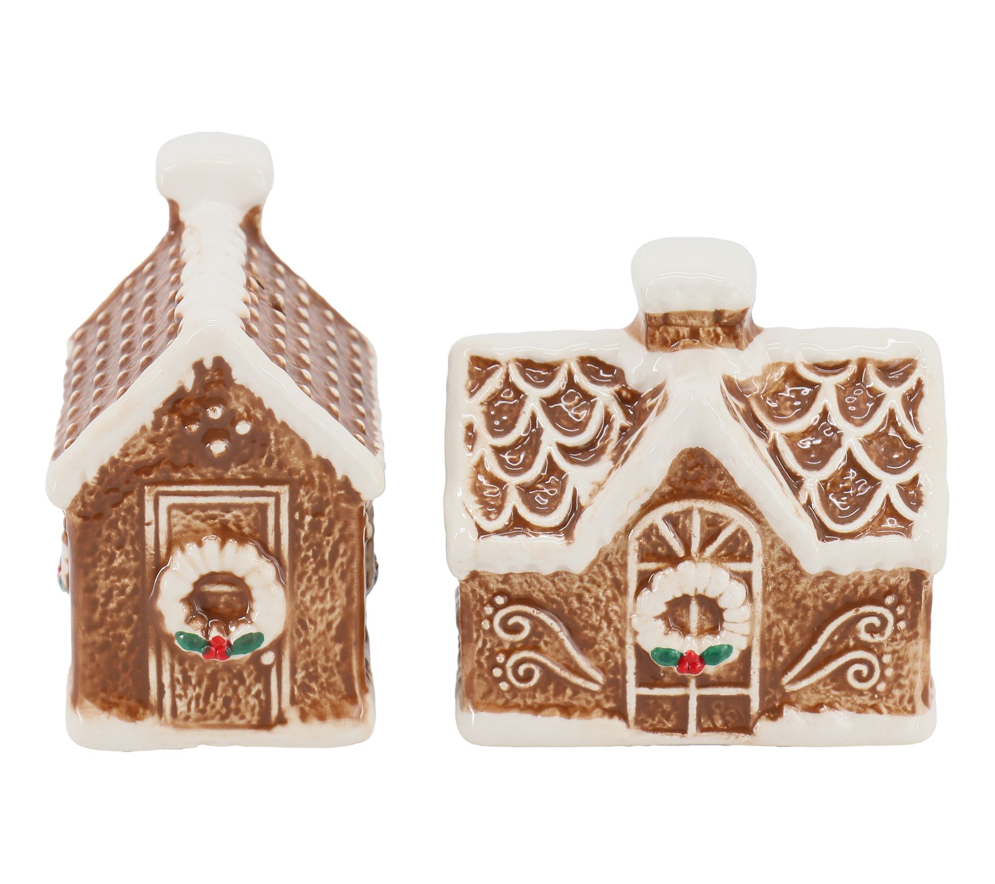 Welcome in the holiday cheer with the Martha Stewart ceramic gingerbread house salt and pepper shaker set. Shaped like little houses and decorated to appear like gingerbread treats, these shakers are perfect for casual dinners and family gatherings. The adorable design makes them the star of the show on your dinner table. From Martha Stewart.