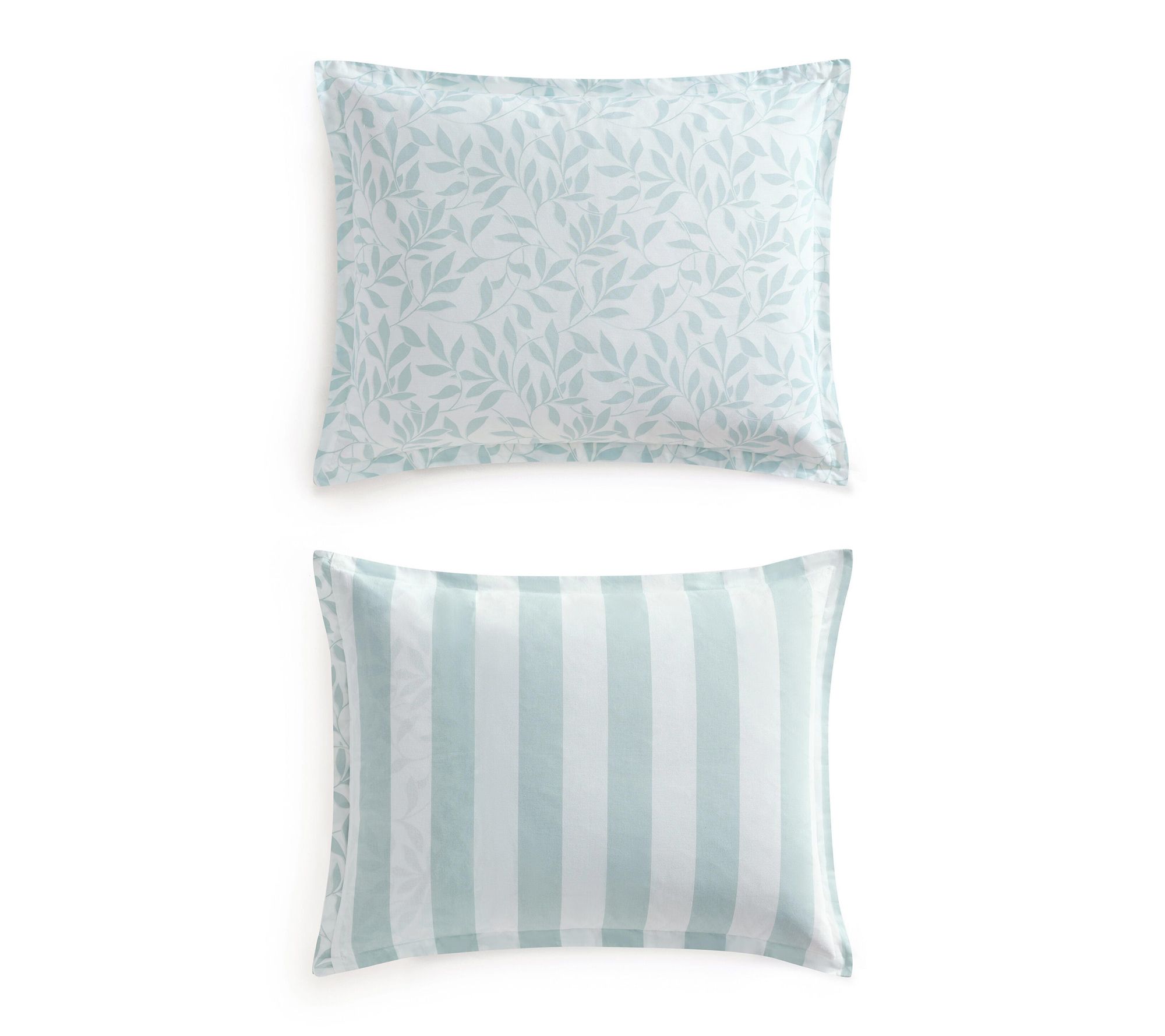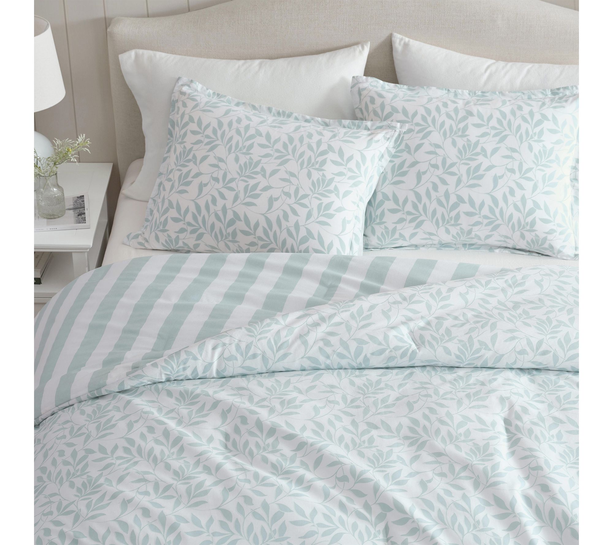 Bring home the calming allure of delicate botanical design with this comforter set, where soft, blue vines gracefully unfurl across a cotton surface for a serene retreat at day's end. The plush down alternative fill delivers all-season comfort, and a reversible stripe pattern offers versatile style to suit your mood. From Martha Stewart.