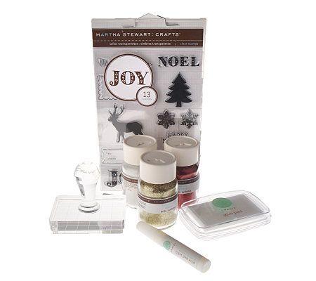 Give Christmas a personal touch with this stamp and glitter set. The clear stamps feature colored designs you can use to create custom cards, invitations, gift tags, and decorations. From Martha Stewart Crafts.