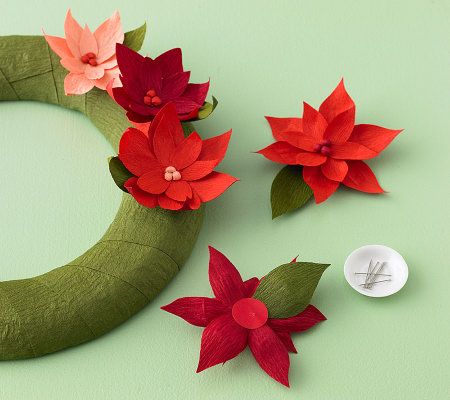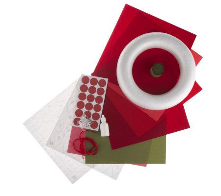 • Christmas kit: 12"D foam wreath form, poinsettia leaf and petal templates, red satin ribbon, crepe paper to make 18 flowers/leaves, adhesive circles, 30 straight pins, and 0.88 fl oz nontoxic white glue