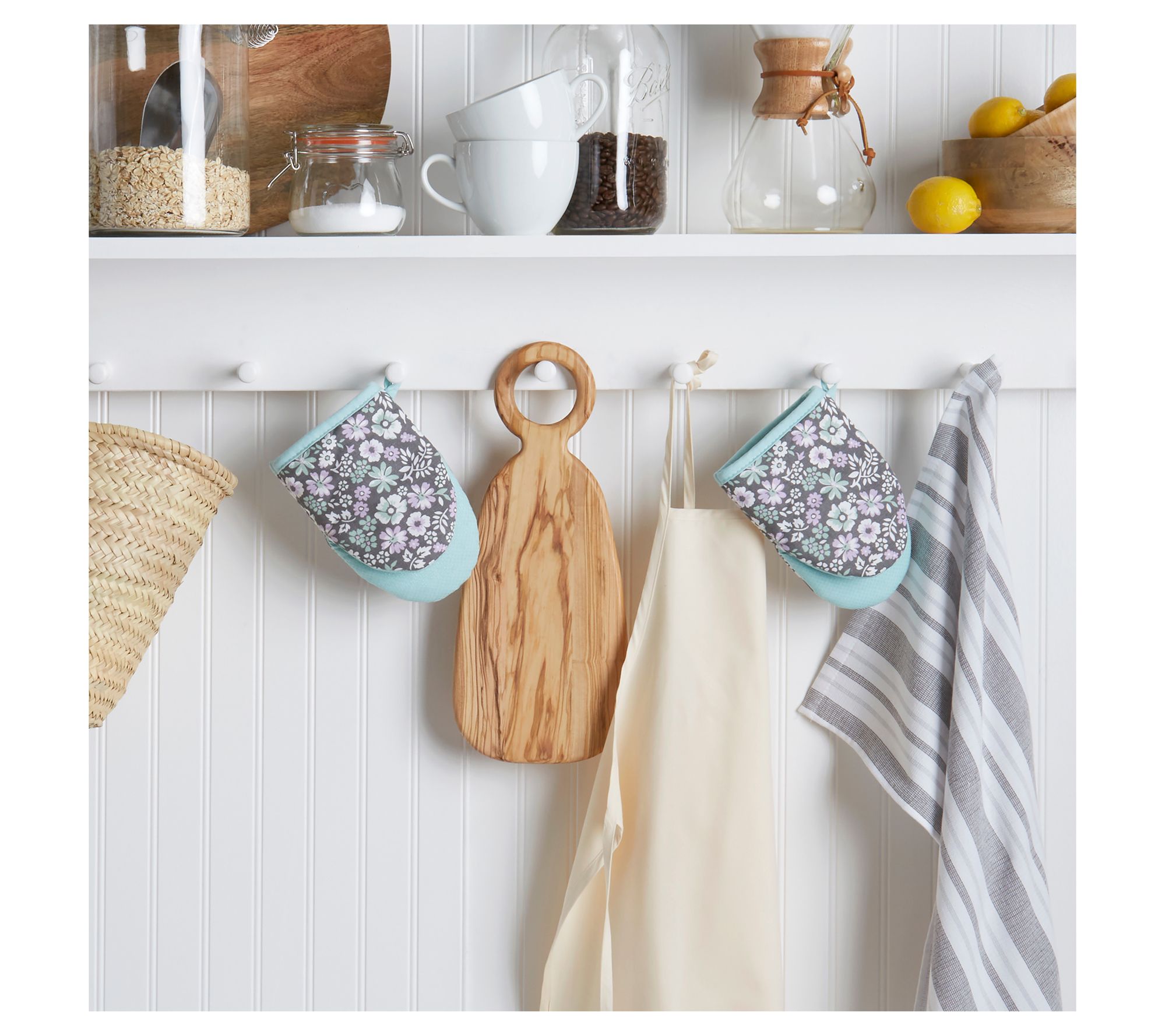 Perfect for daily baking and festive cooking (and everything in between), this duo of Ditsy Floral mini oven mitts from Martha Stewart is a charming and practical addition to your culinary arsenal. With a convenient loop for hanging, they make a delightful display and you'll always have them in reach. From Martha Stewart.
