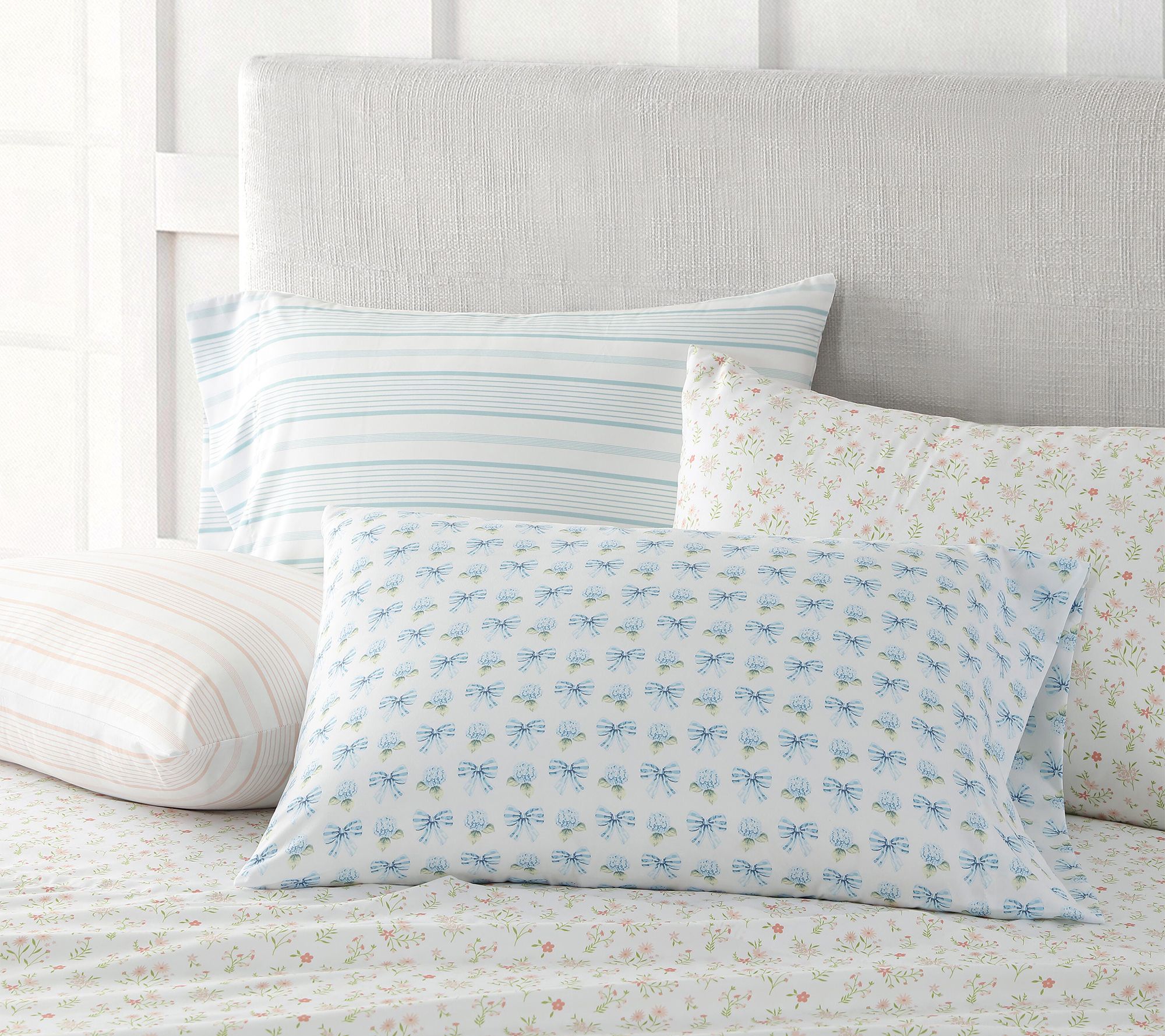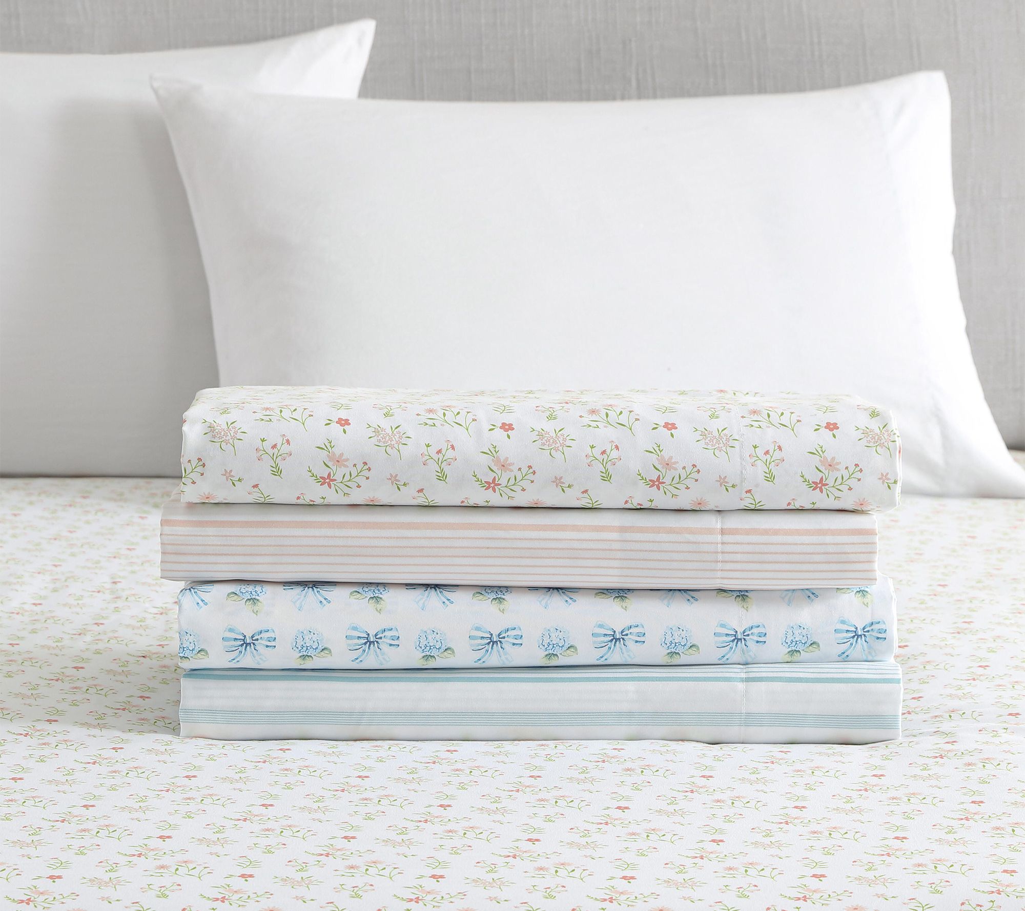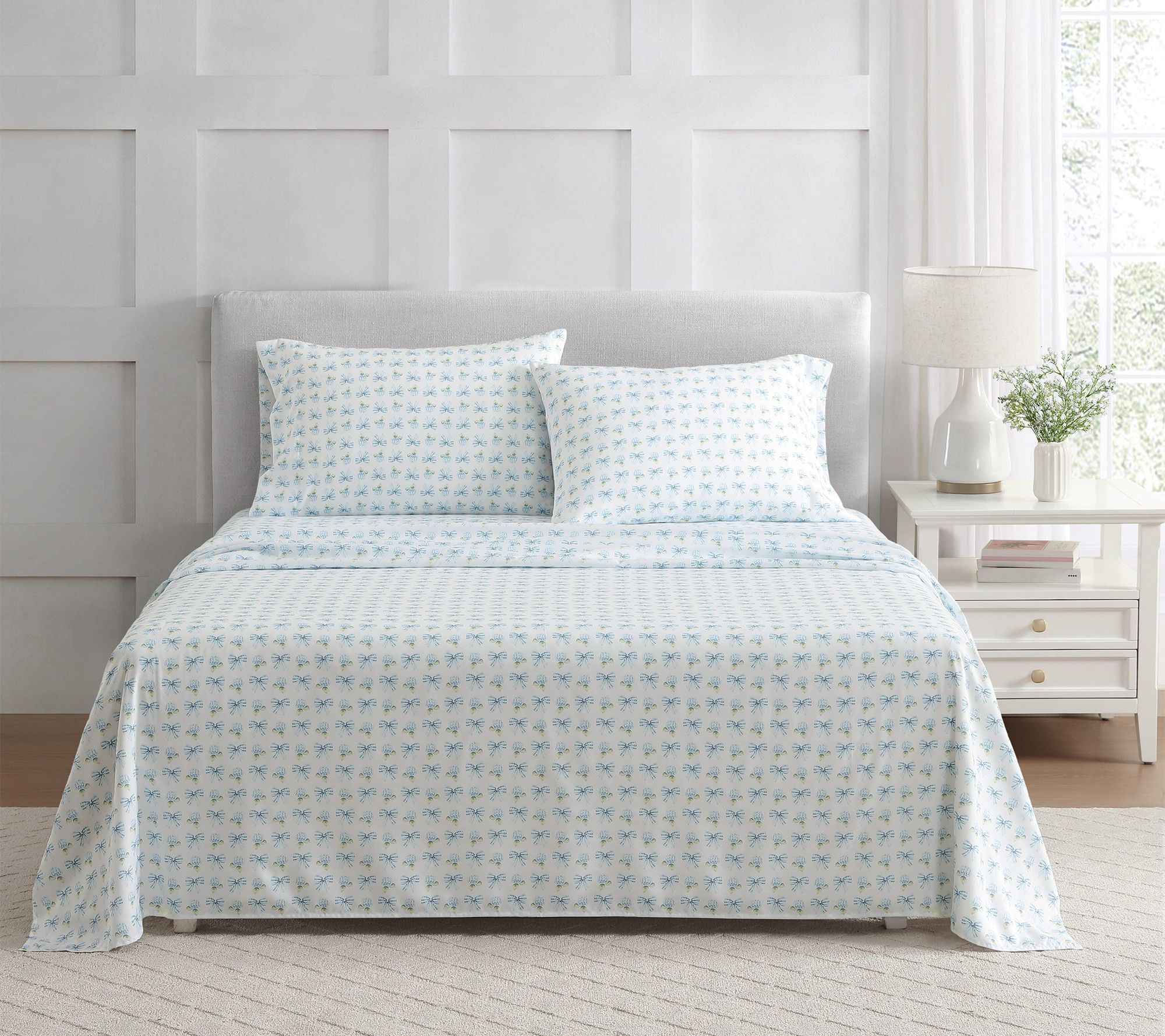 Includes queen flat sheet, queen fitted sheet, and two standard pillowcases