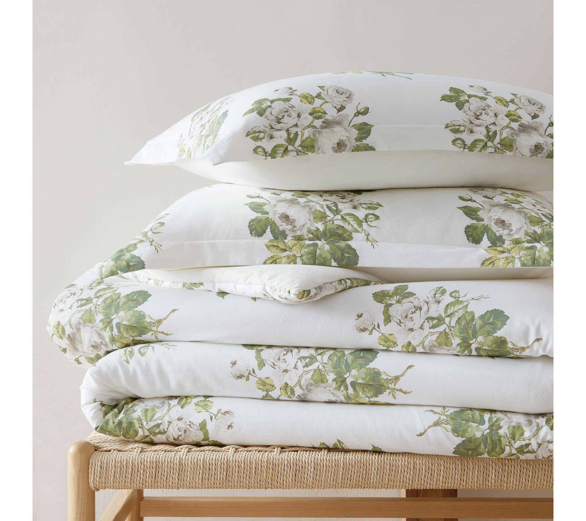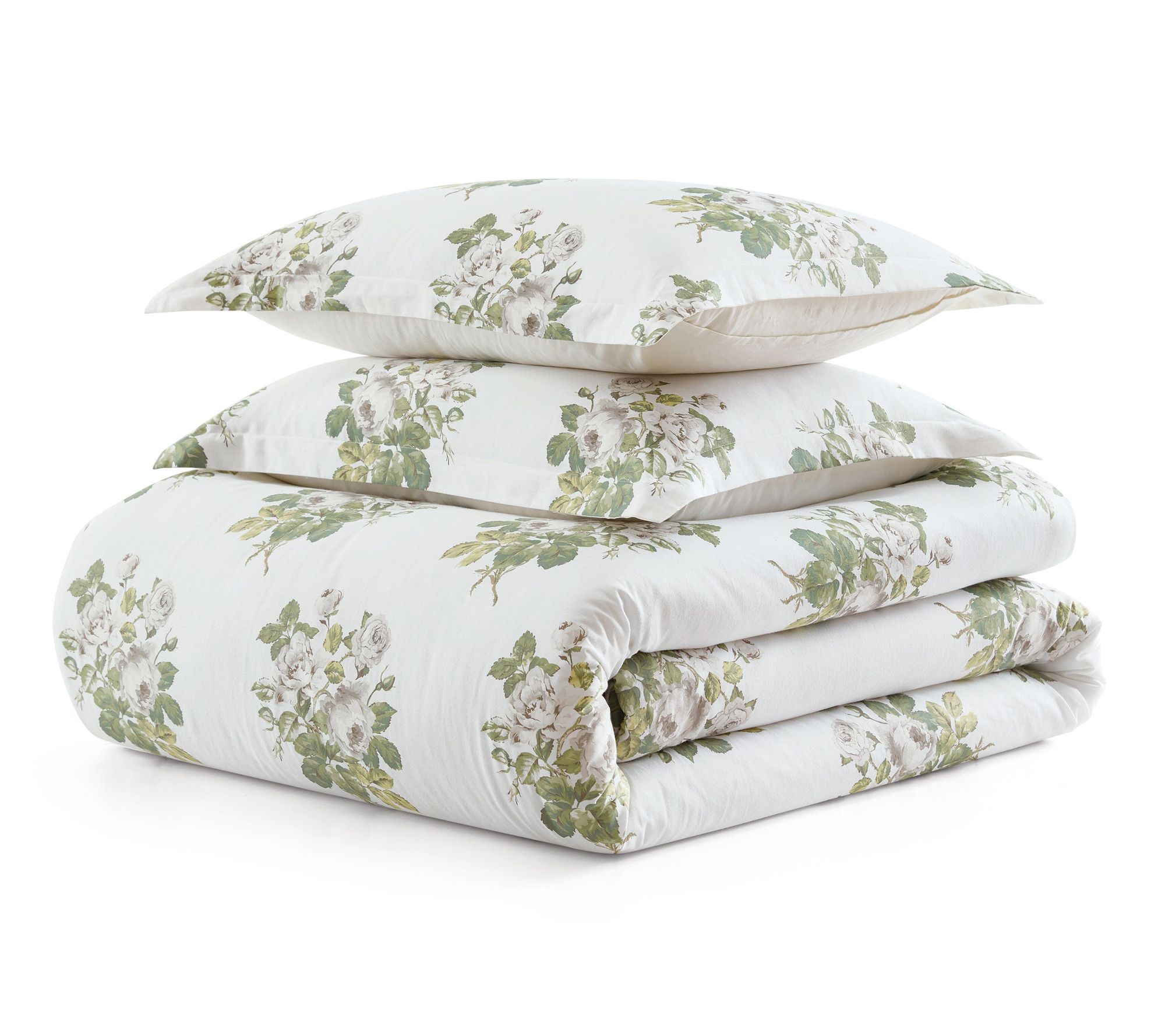 Softly infusing your bedroom with sophisticated charm, this floral comforter set transforms your space into an elegant retreat. Its smooth 100% cotton sateen finish, plush all-season warmth, and graceful bouquet pattern set the scene for peaceful nights and stylish mornings. From Martha Stewart.