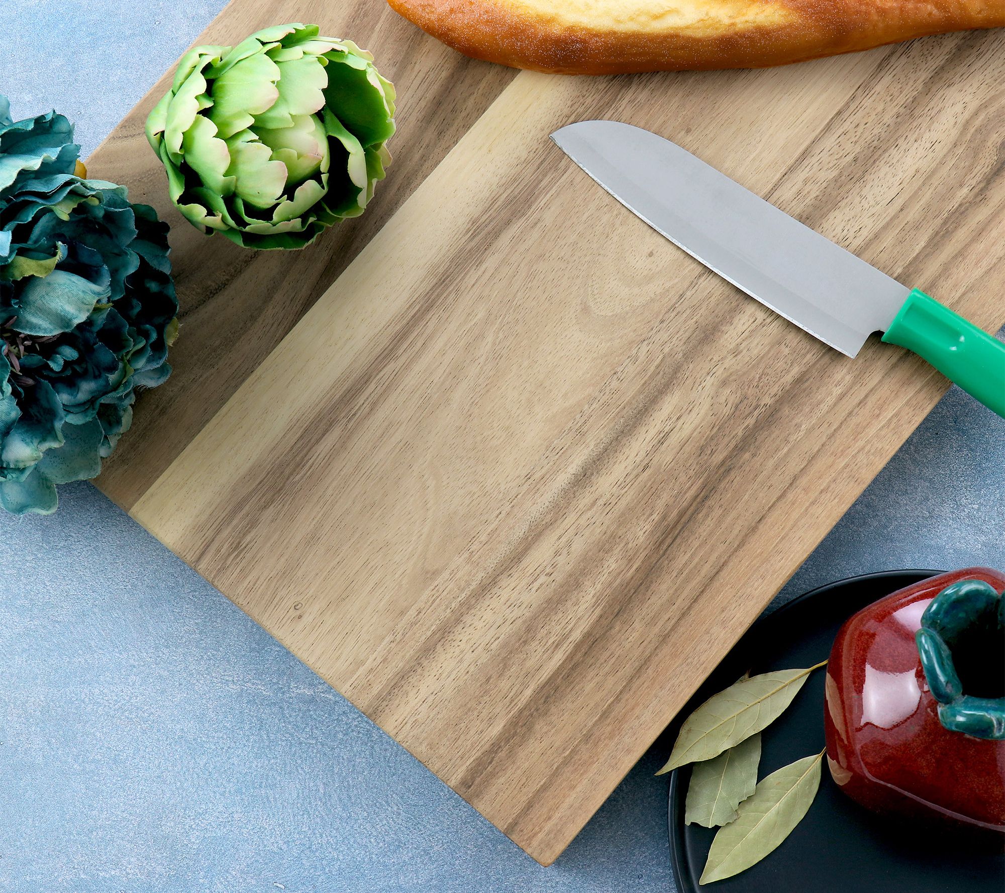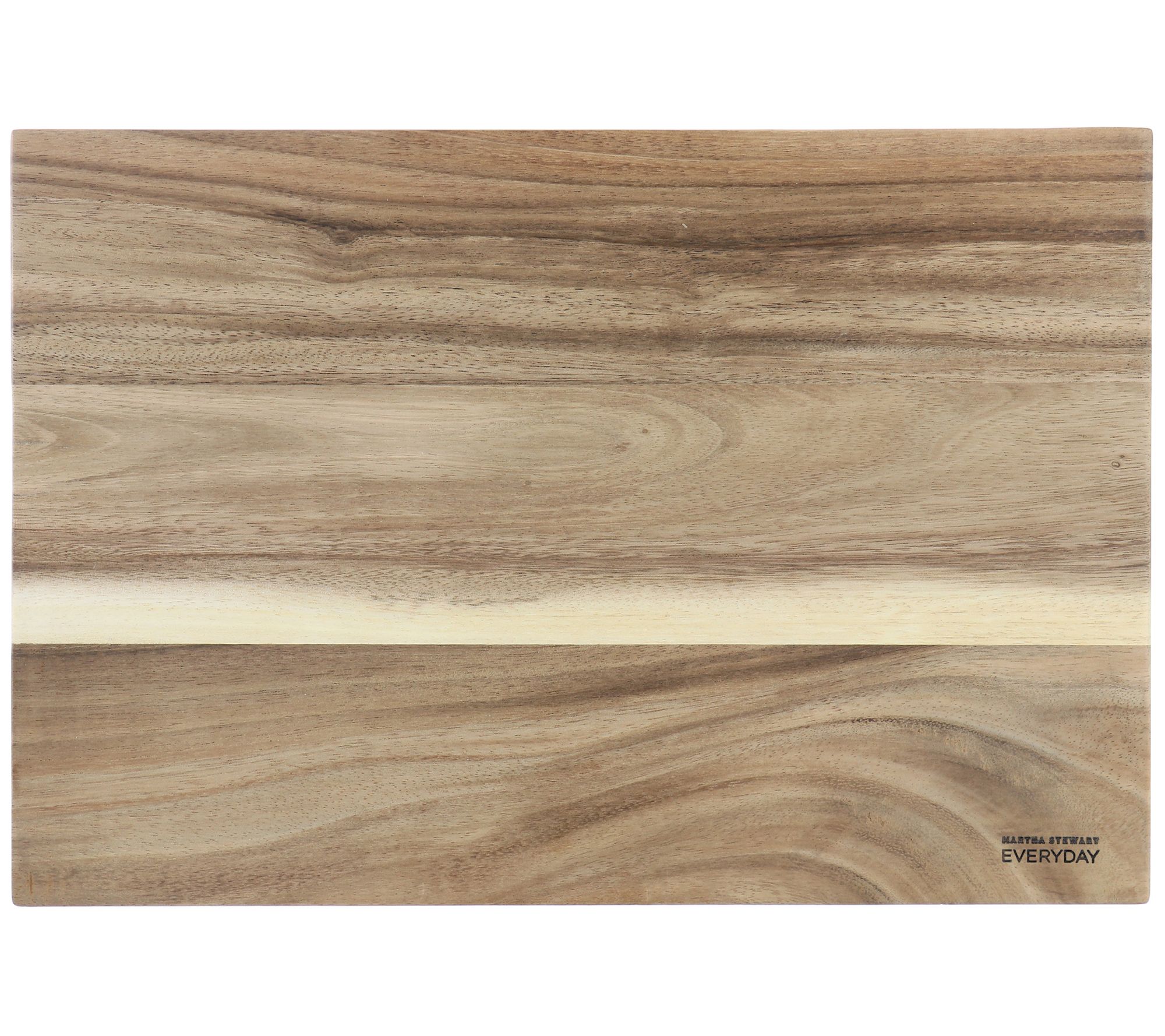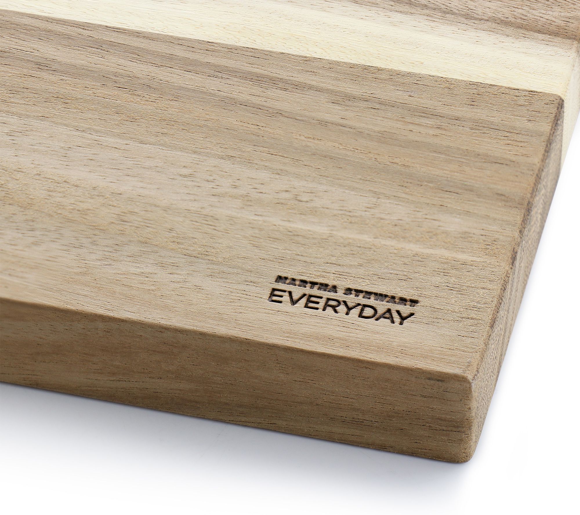 A beautiful addition to any kitchen workspace, this acacia wood cutting board features a spacious working surface for comfortable use regardless of how large the prepping task is. From Martha Stewart.