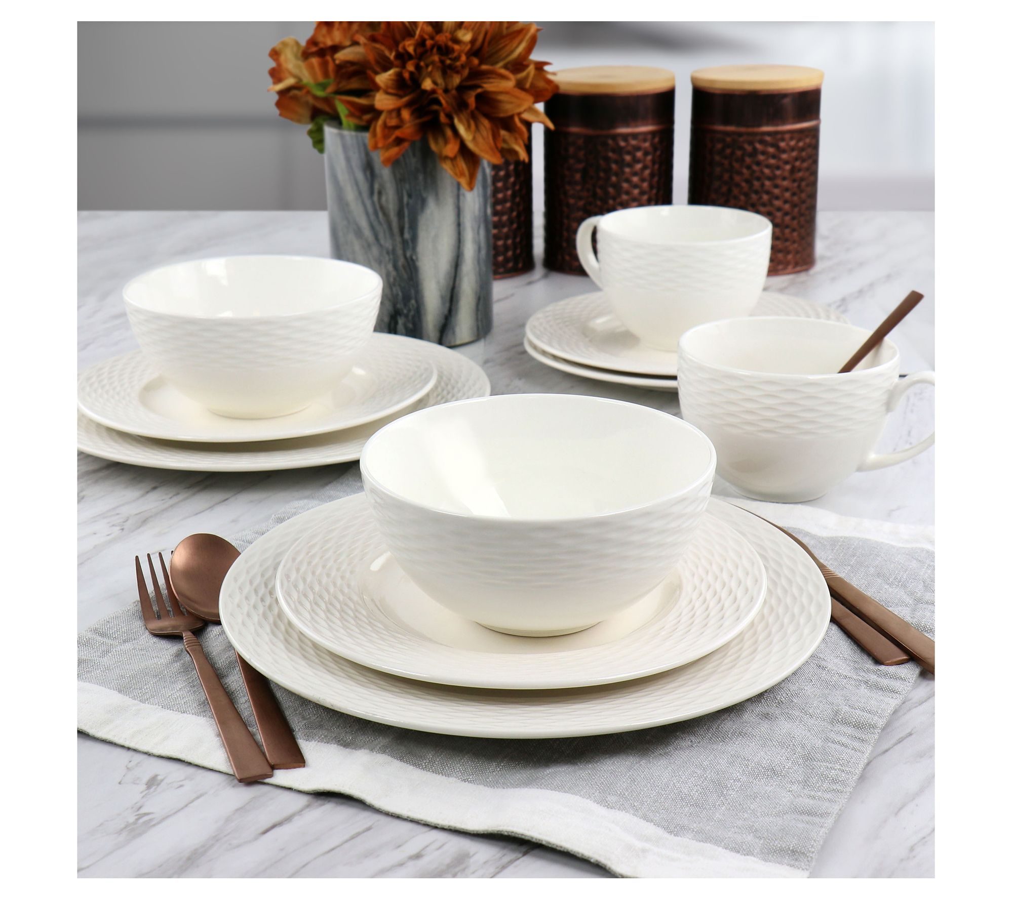 Martha Stewart Fine Ceramic 16 Piece Textured Dinnerware