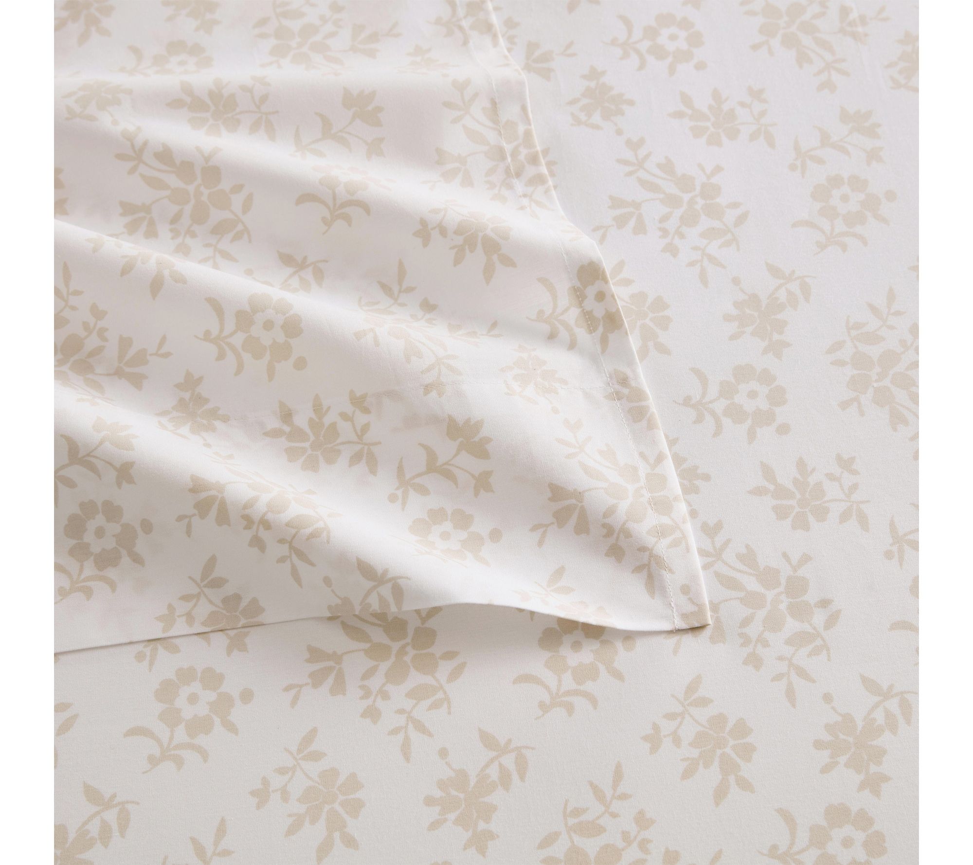 Martha Stewart Floral White/Beige Cotton Full Sheet Set