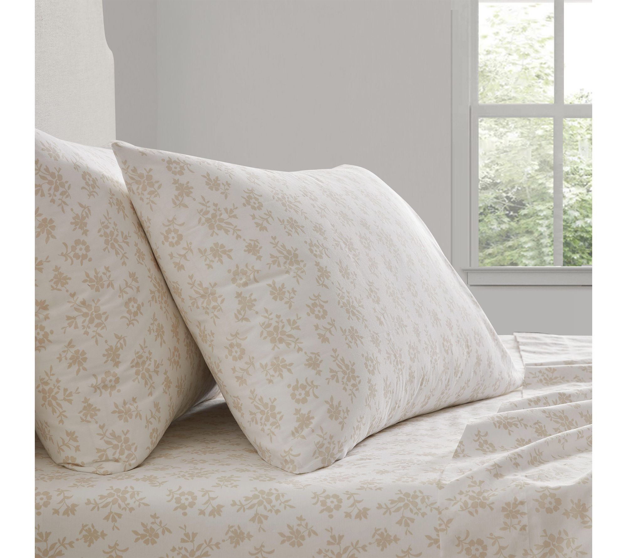 Martha Stewart Floral White/Beige Cotton QueenSheet Set