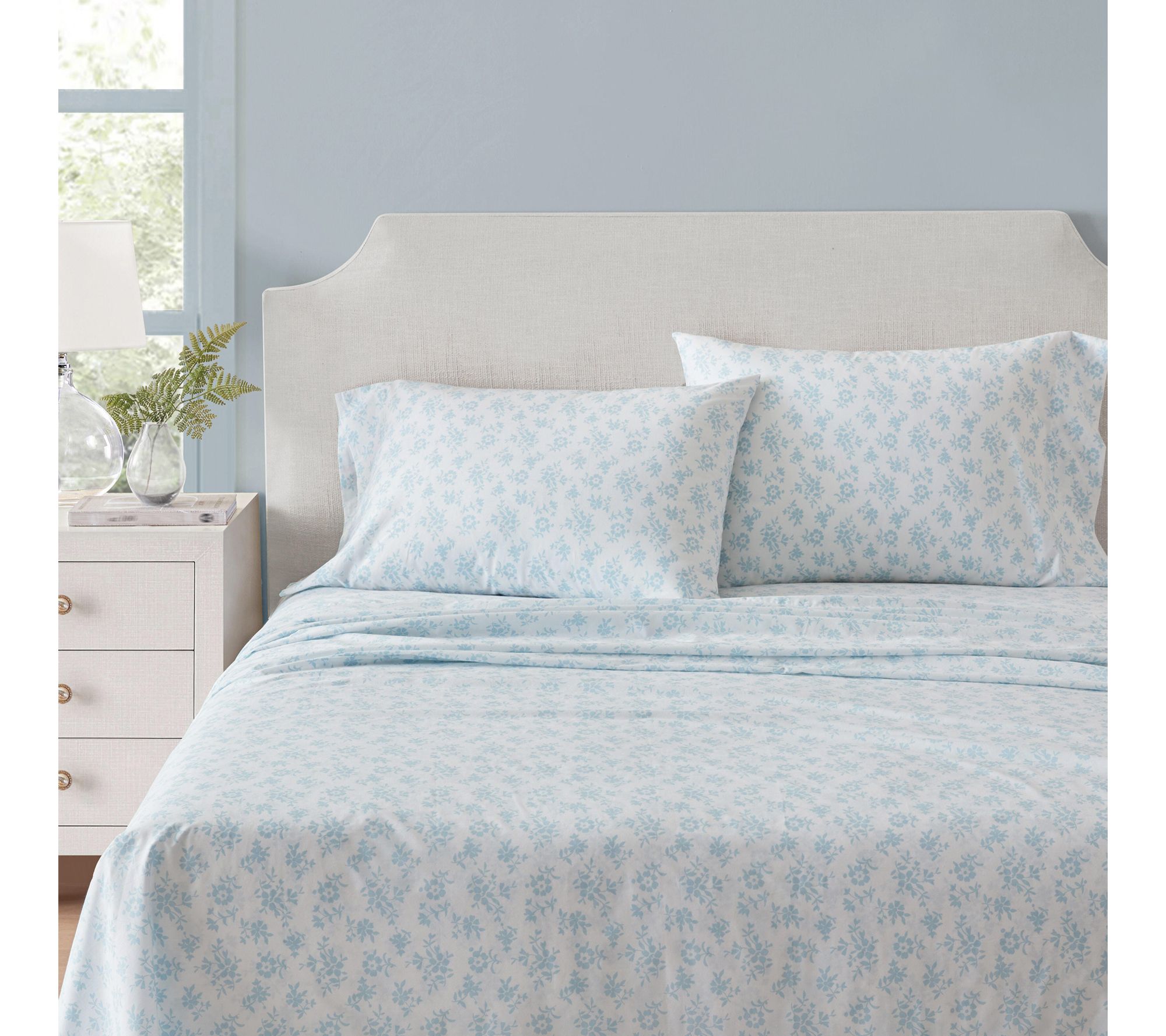 Martha Stewart Floral White/Blue Cotton King Sheet Set