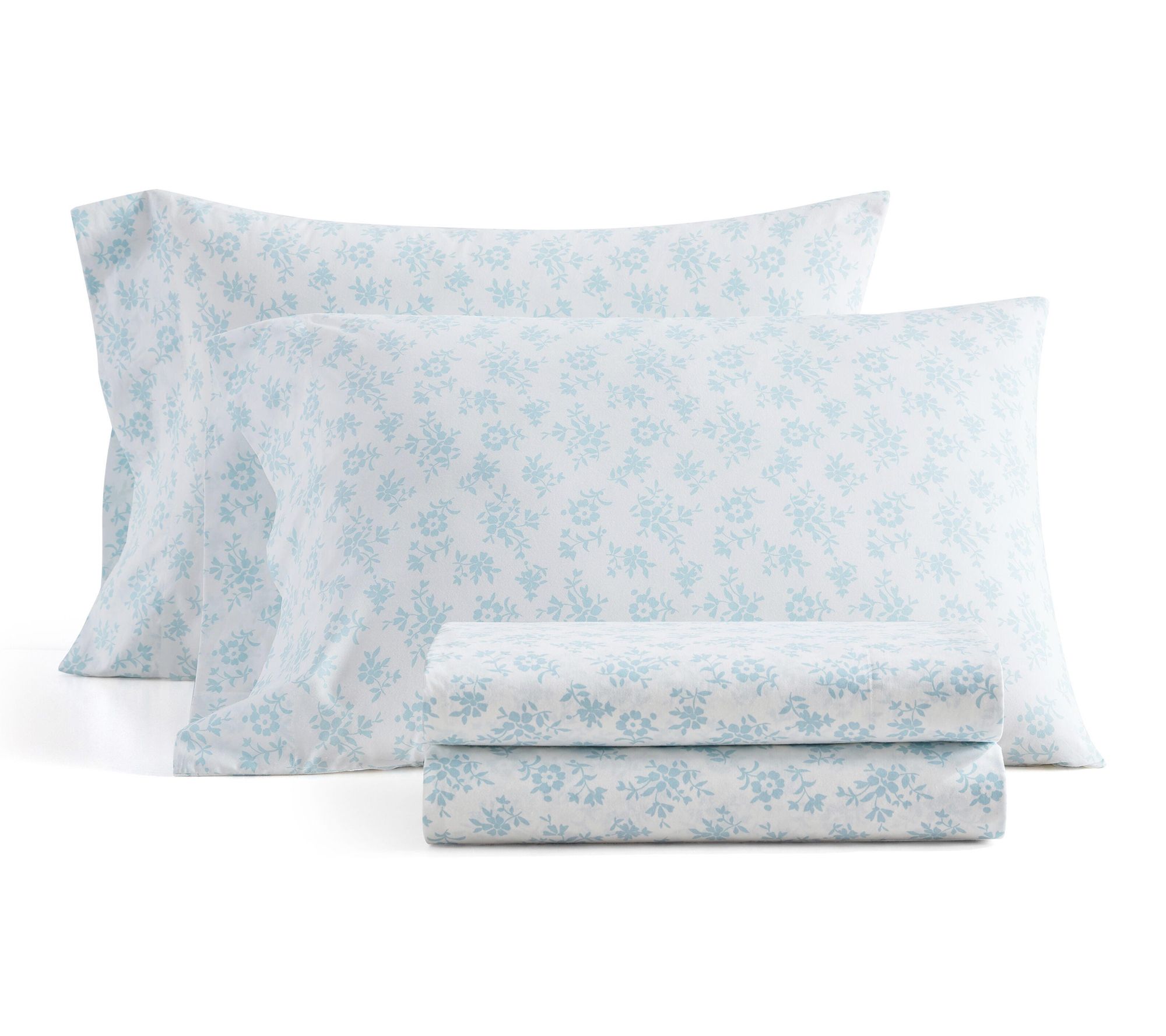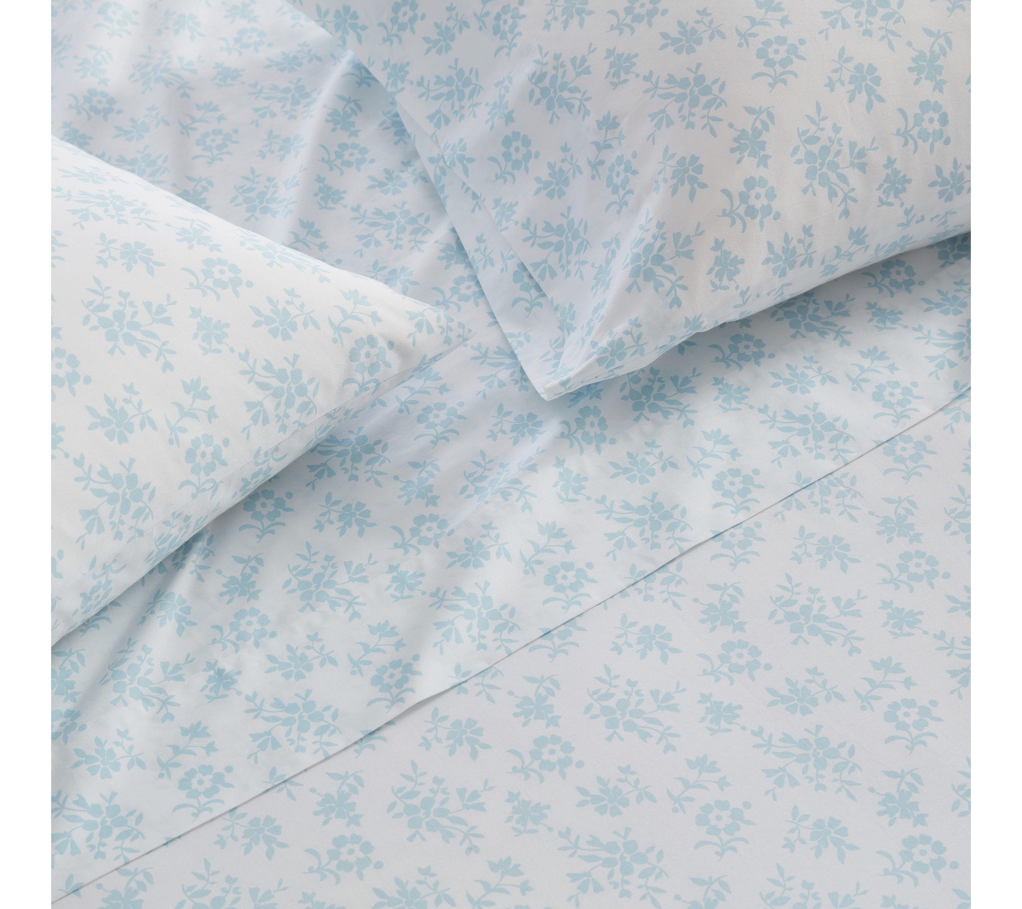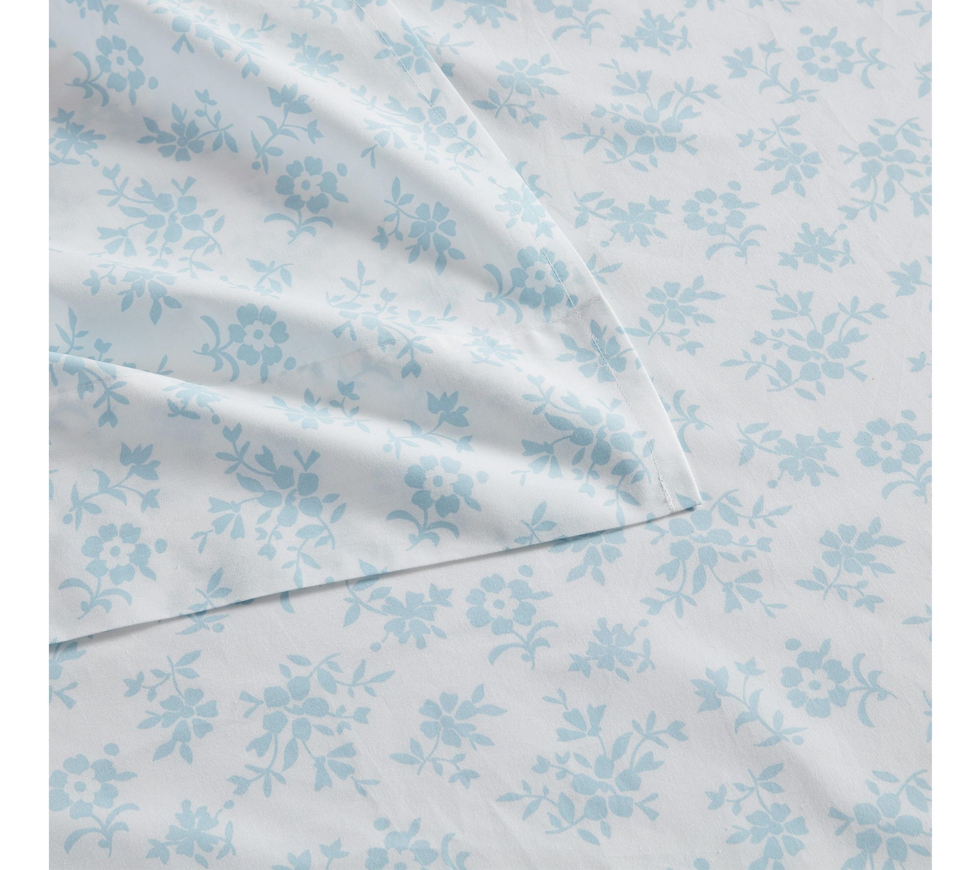 Drift off in comfort with this King-sized cotton sheet set, crafted for both softness and durability to transform your bedroom into a serene retreat. The delicate white and blue floral design brings classic charm and a tailored finish to your space, easily pairing with an array of bedding styles for a fresh update. From Martha Stewart.