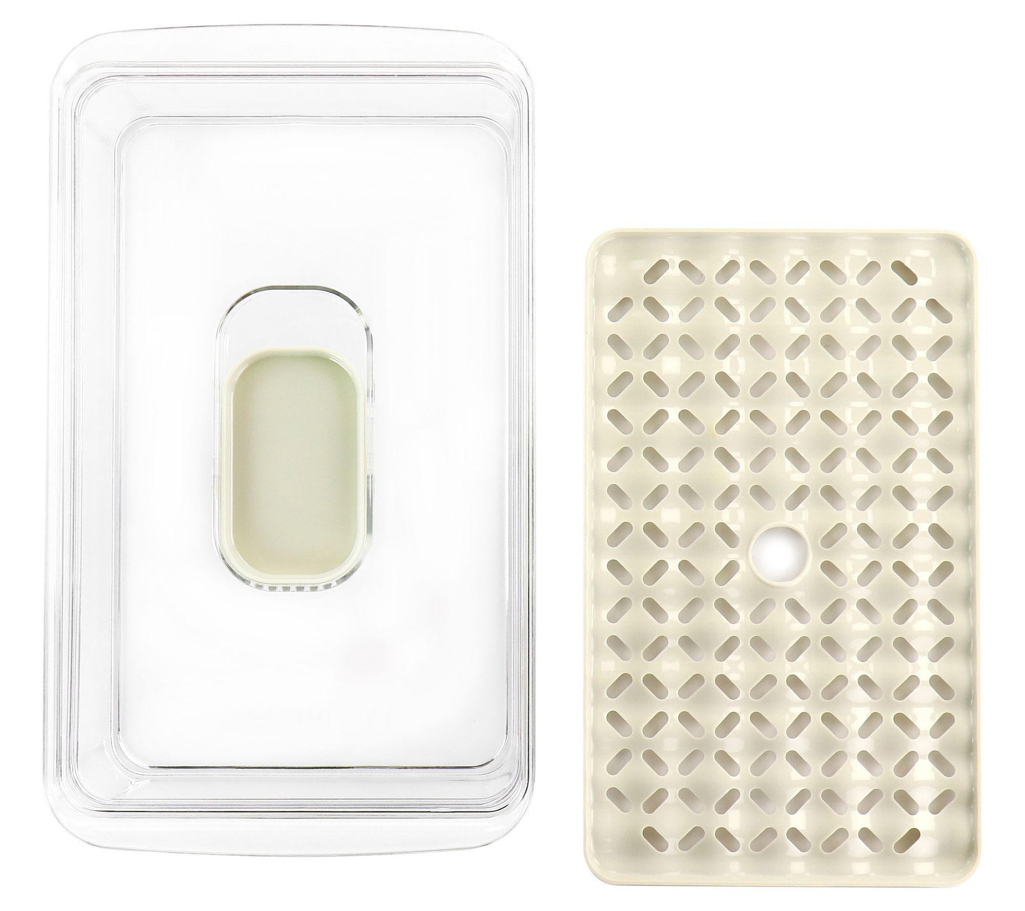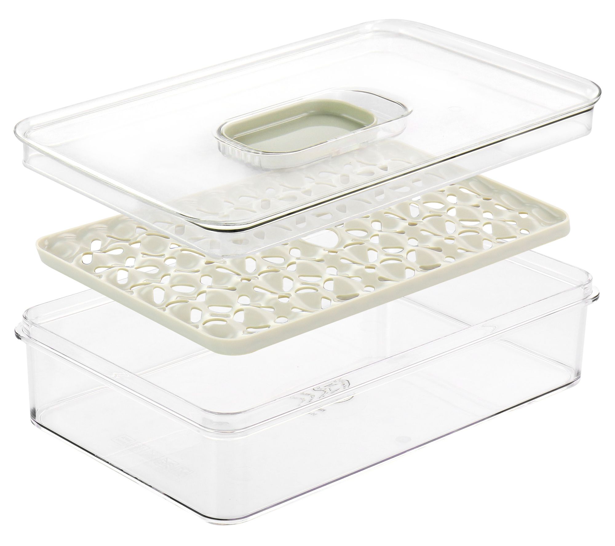 • Includes plastic container, lid with vented slider, and removable bottom separator