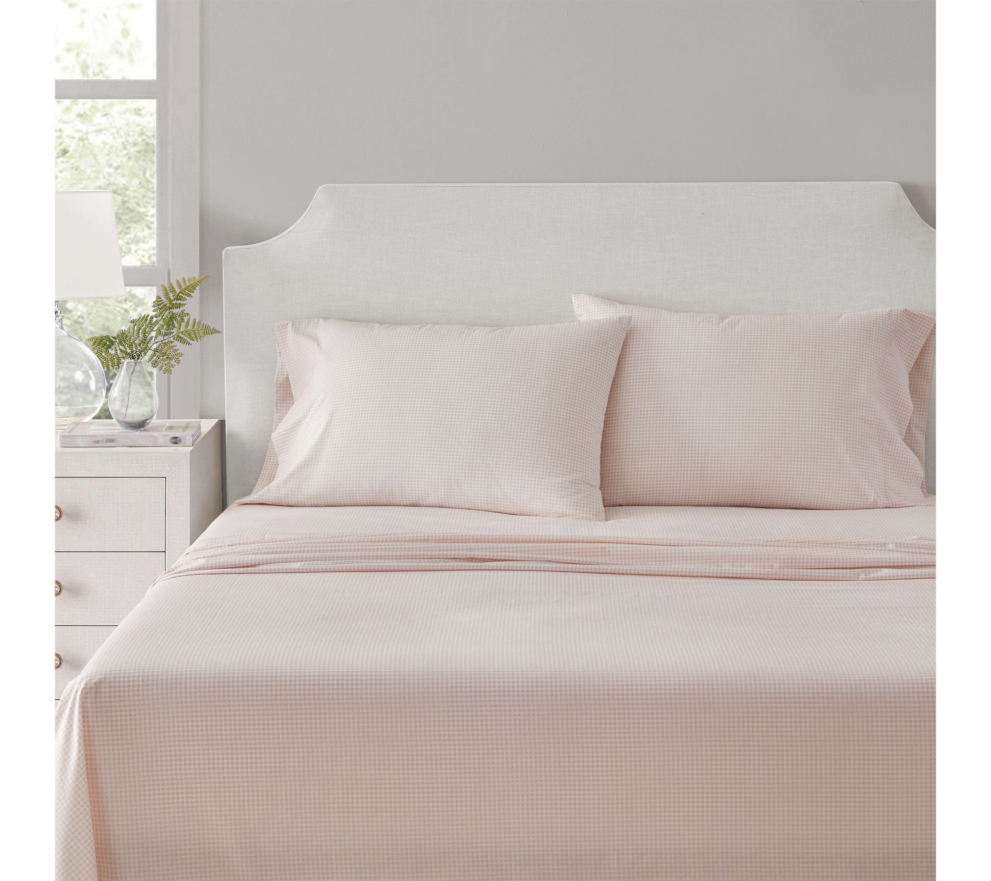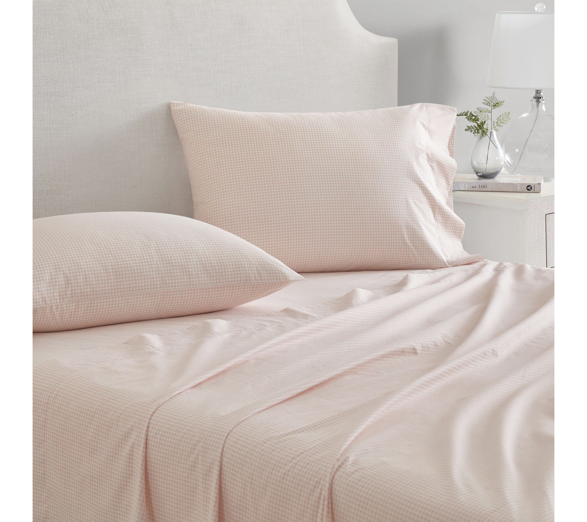 A classic gingham pattern brings instant charm and a freshly tailored vibe to your bedroom, while crisp 100% cotton provides softness and durability for cozy nights through every season. Thoughtful details like neatly finished hems elevate the look, making your bed a welcoming spot to relax or unwind. From Martha Stewart.