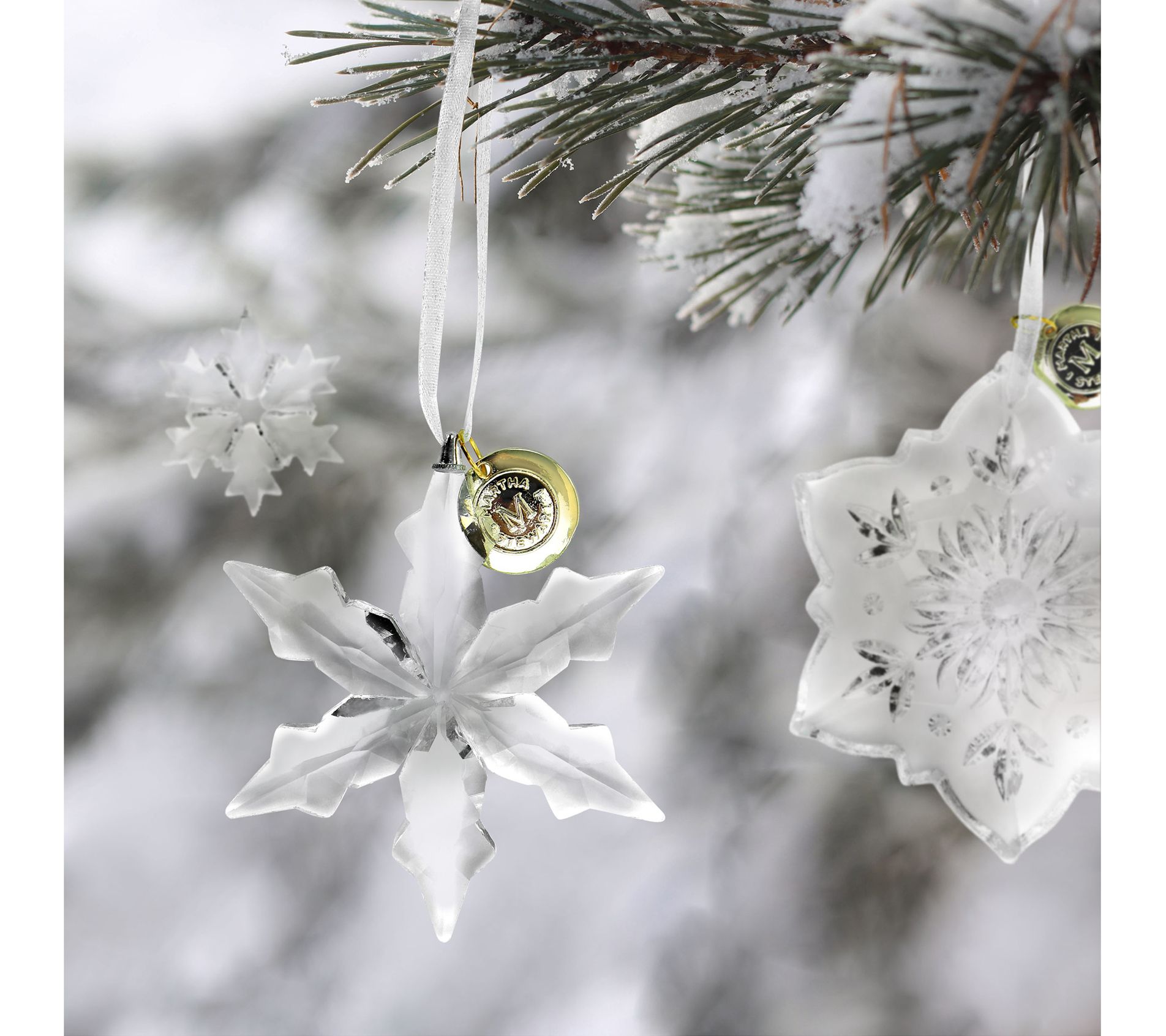 Martha Stewart Holiday Crystal Snowflake 4 Piece Ornament Set