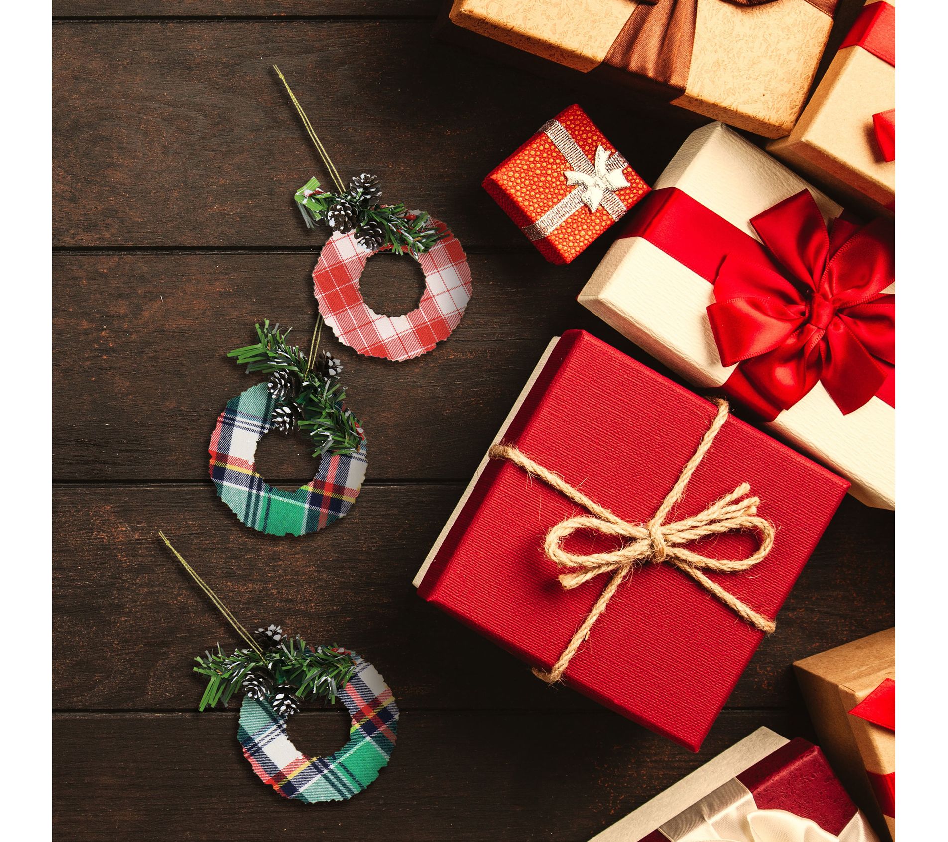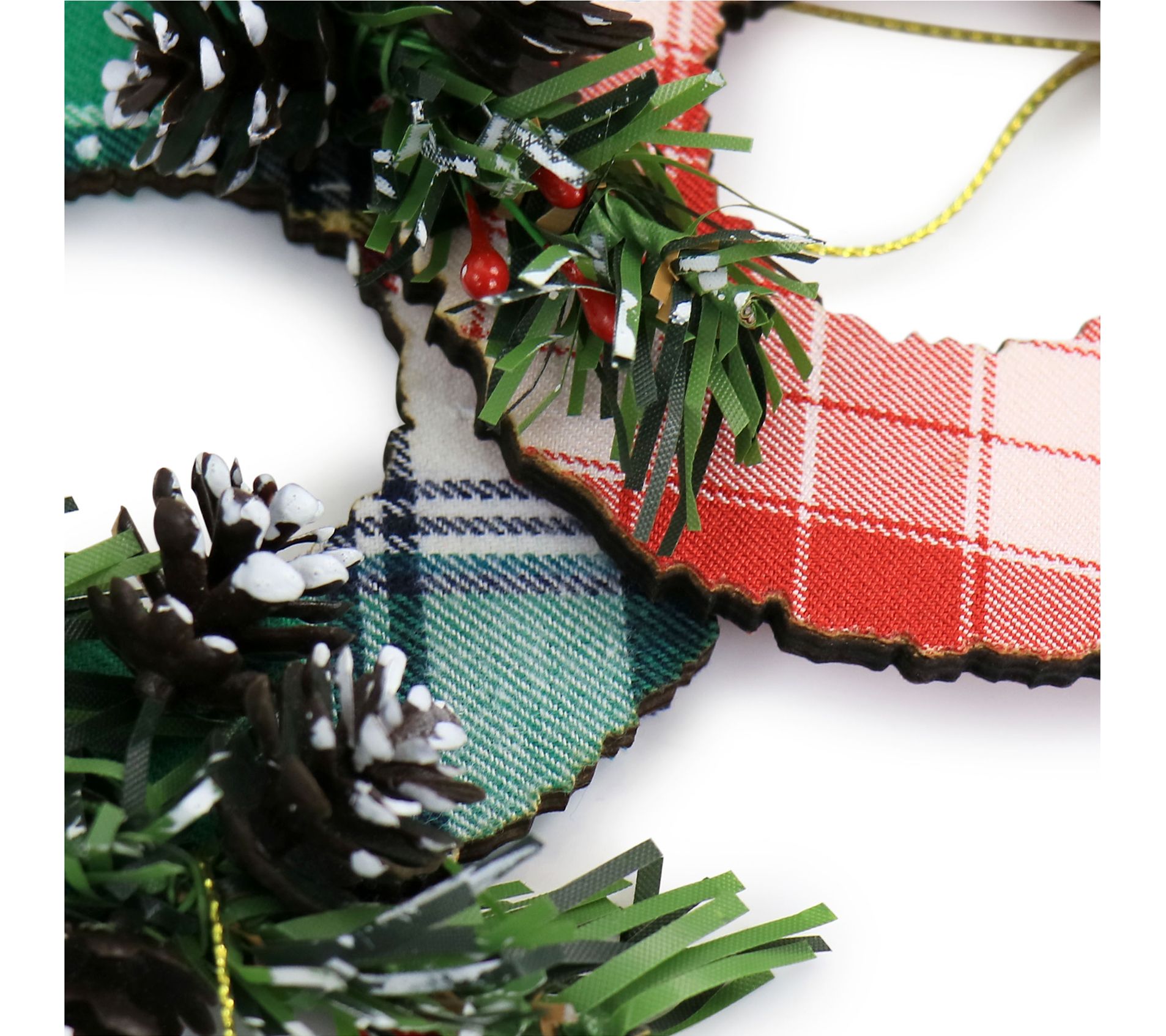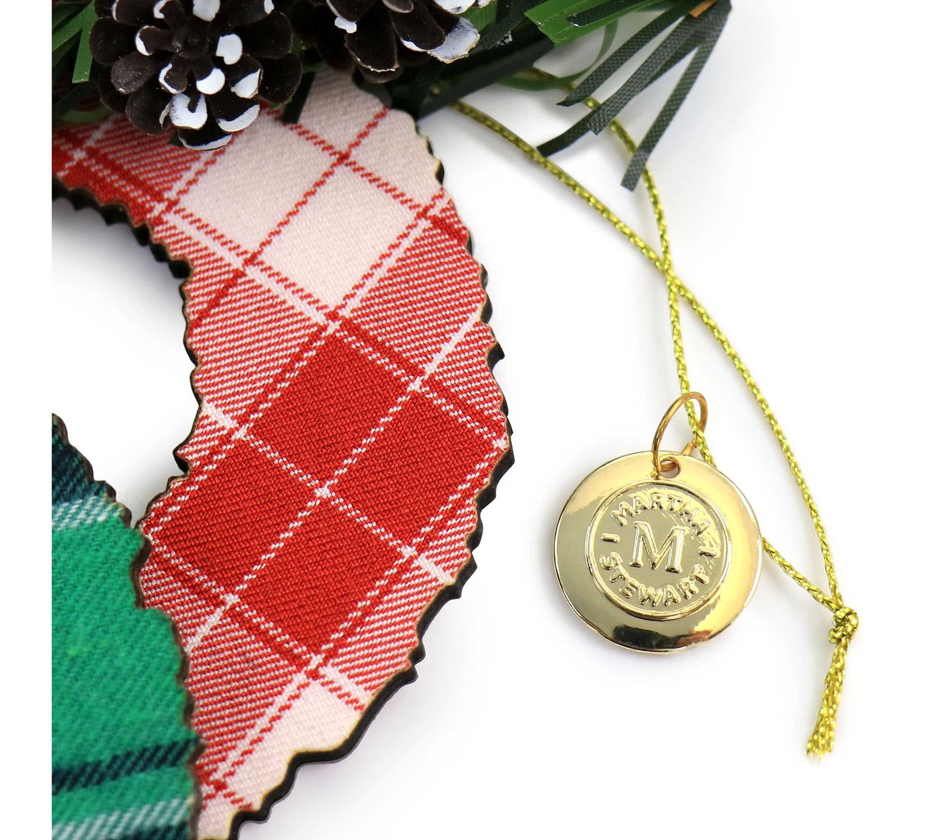 Adorn your tree with these lightweight wooden ornaments featuring a traditional plaid design on both sides. From Martha Stewart.