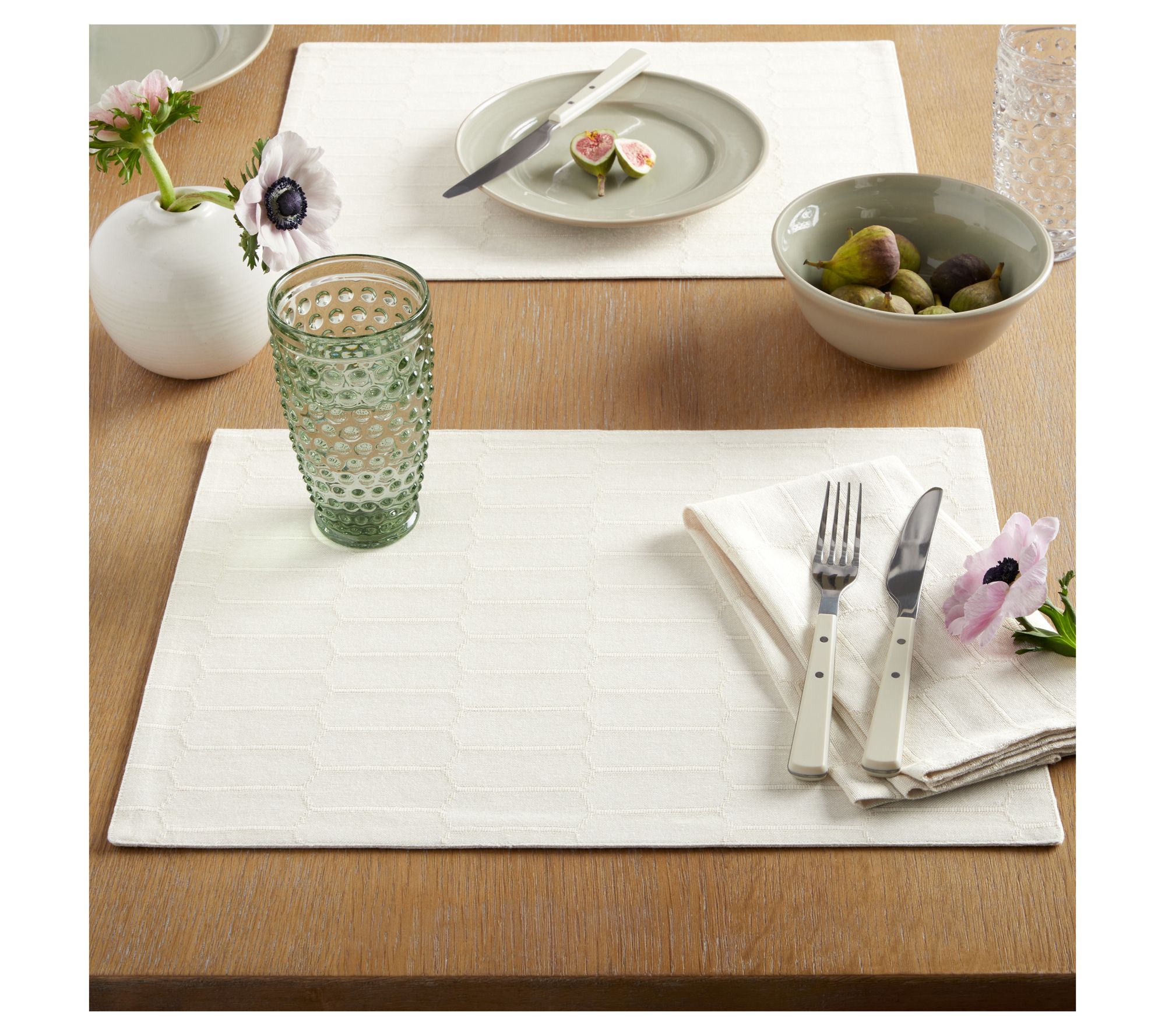 Add a touch of elegance to your dining table with the Martha Stewart Honeycomb Farmhouse Placemats. Perfect for everyday meals or special gatherings, these versatile placemats are crafted from cotton. From Martha Stewart.