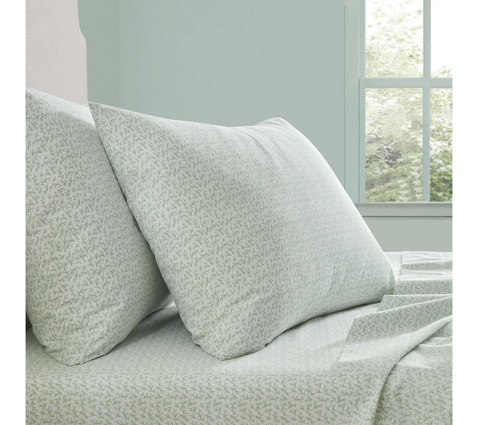 Lend a welcoming, sophisticated touch to your bedroom with this Martha Stewart cotton sheet set, featuring a classic leaf design in soft white and green. Enjoy the gentle comfort and durability of 100% cotton, crafted with Martha's signature attention to detail for a tailored finish. The timeless pattern blends seamlessly with traditional or modern decor, making your personal retreat inviting all year round. From Martha Stewart.