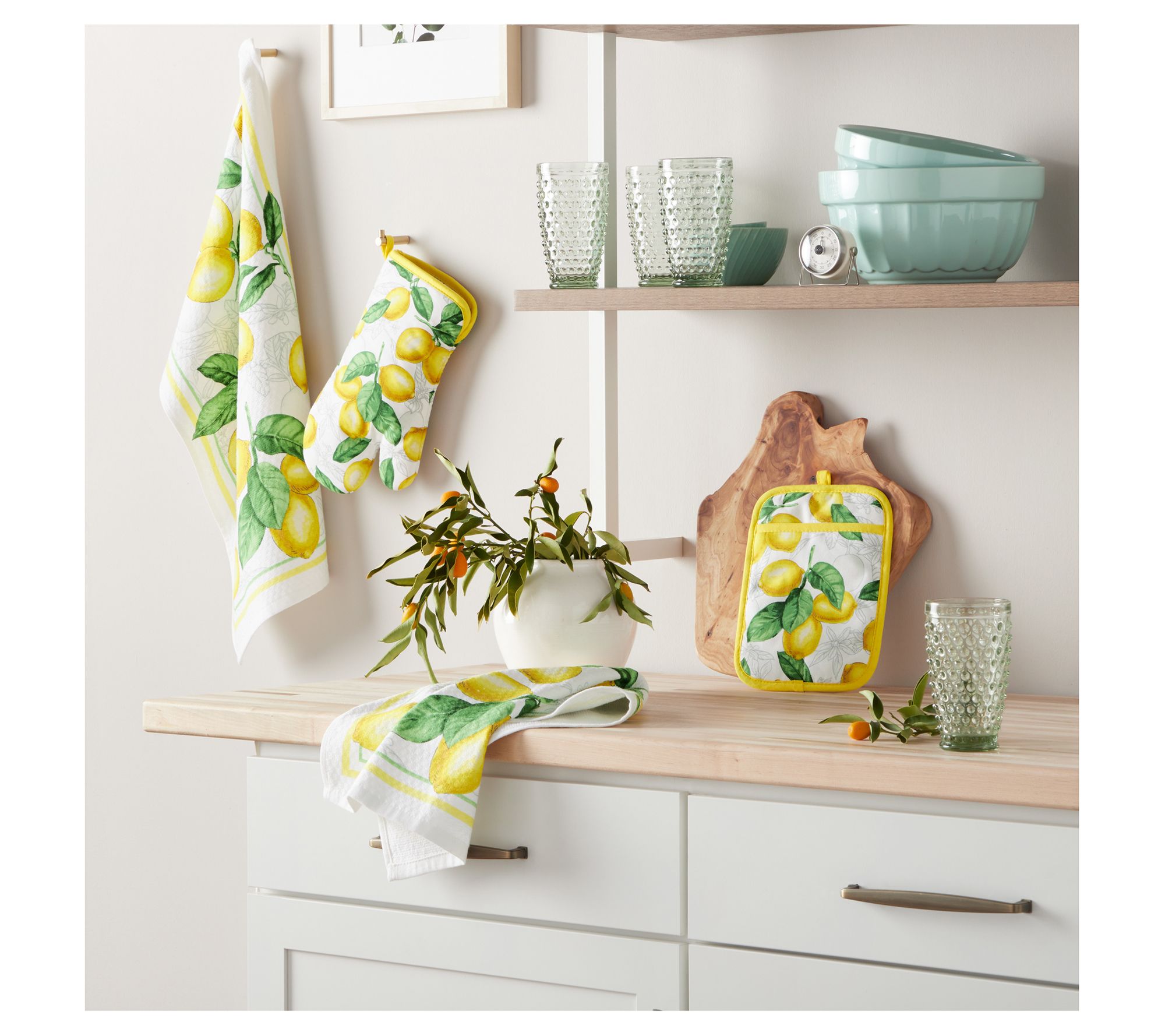MARTHA STEWART Lemons Towel, Oven Mitt & Pot Holder 4-Pack Set