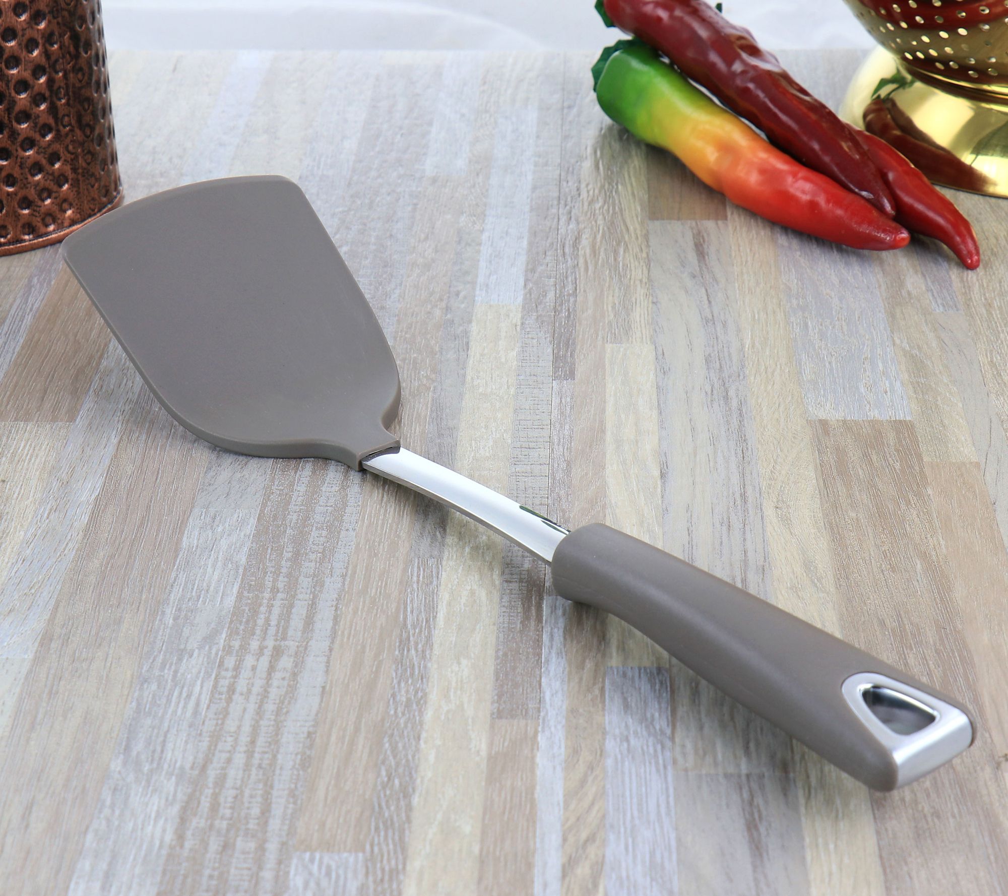Turn and serve dishes with this durable nylon turner featuring an ergonomic handle and a design that won't damage nonstick cookware. From Martha Stewart.