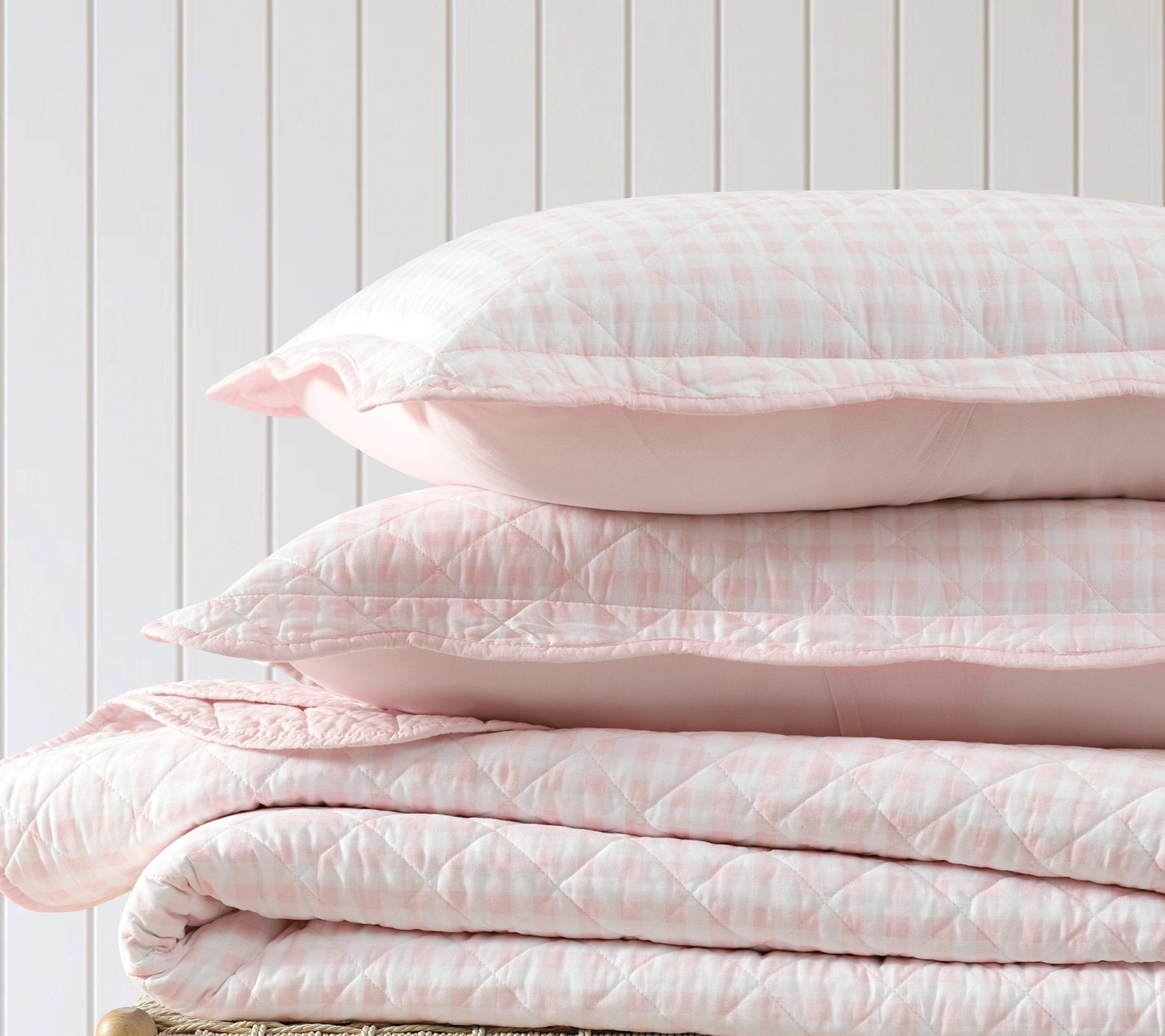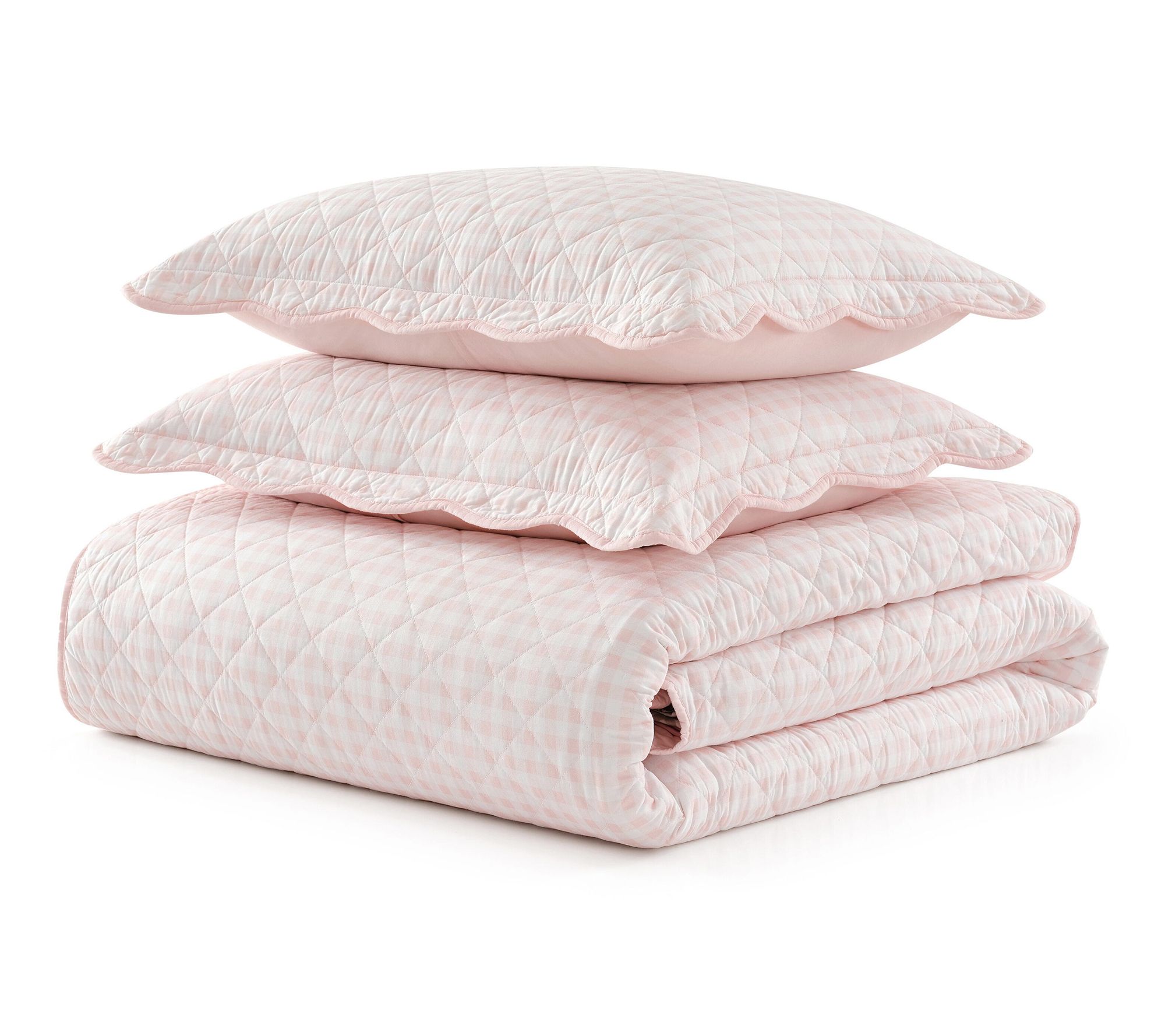 Martha Stewart Olivia Gingham Soft Pink Cotto n Twin Quilt Se