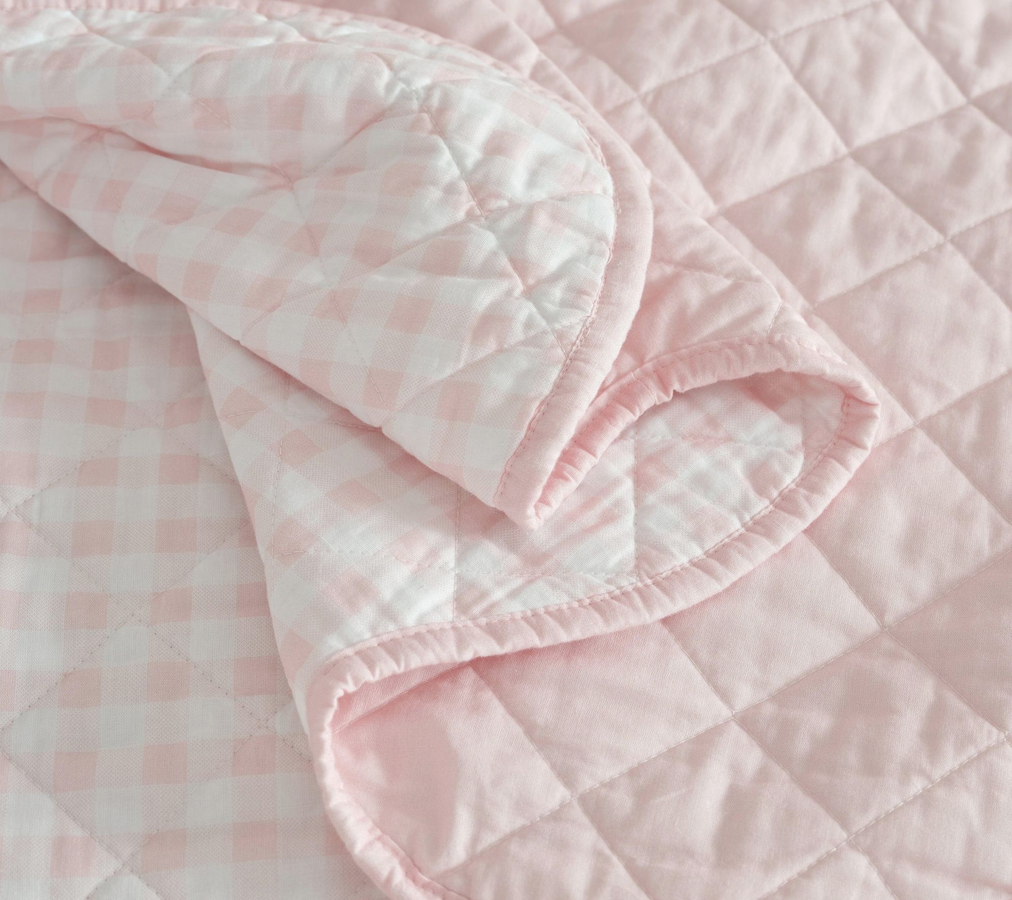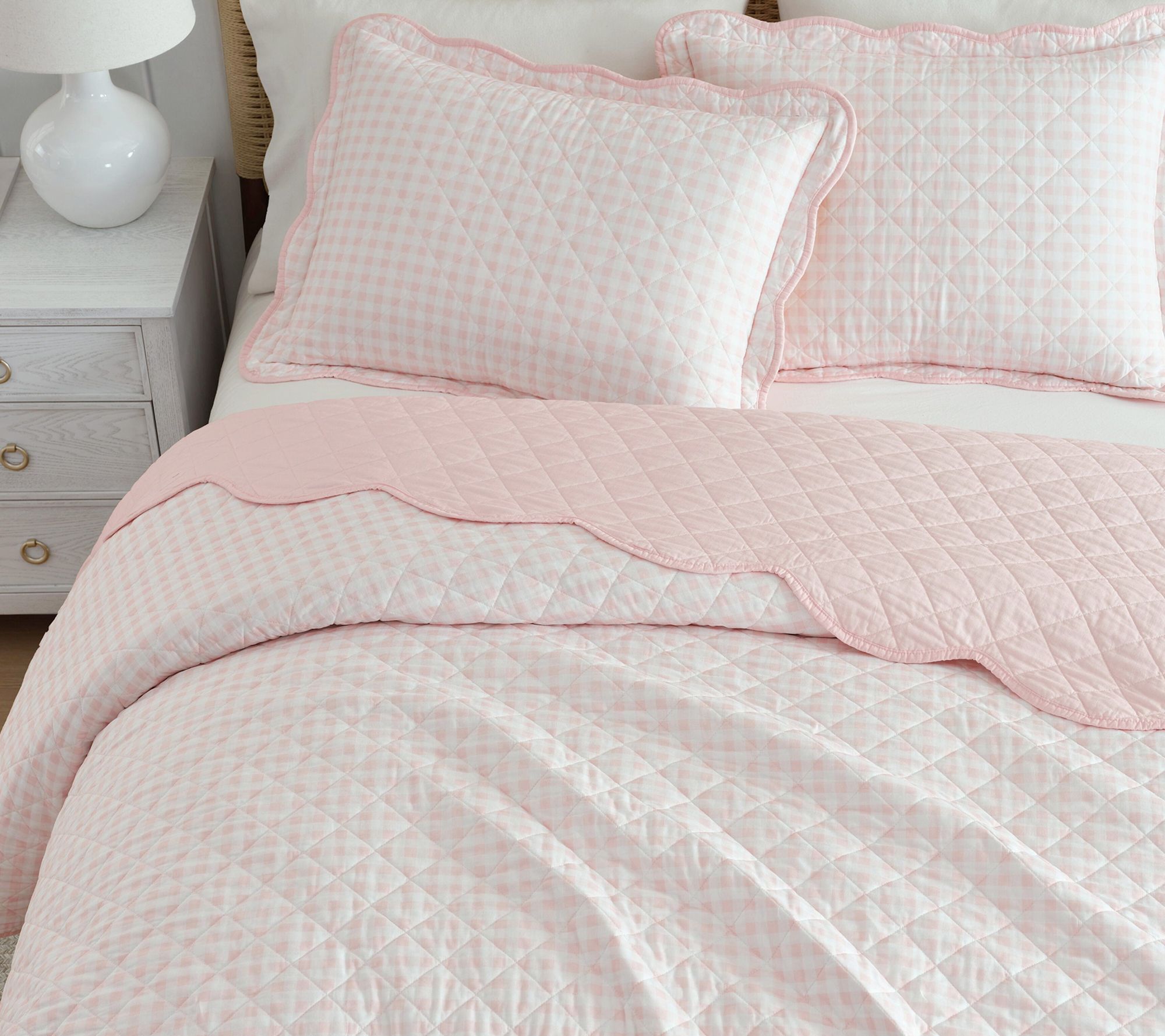 Cozy touches bring new life to your room with this charming quilt set -- think gentle mornings and winding down at night under subtle gingham check in soft pink. The reversible design lets you personalize your look, while lightweight cotton keeps comfort at the forefront through every season. From Martha Stewart.