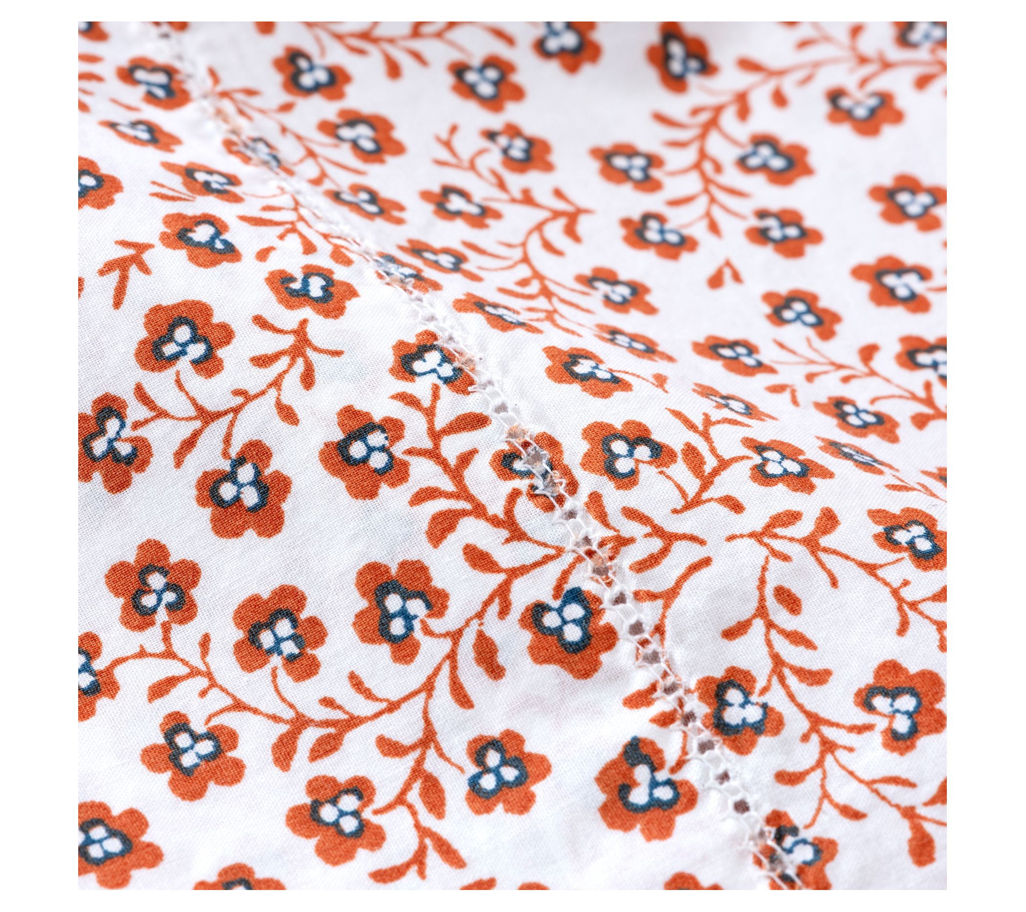 Smooth, crisp percale weave with a decorative hem stitch detail and a vintage-inspired floral pattern, are the highlights of this wonderfully soft and comfortable king size Renata sheet set. From Martha Stewart.