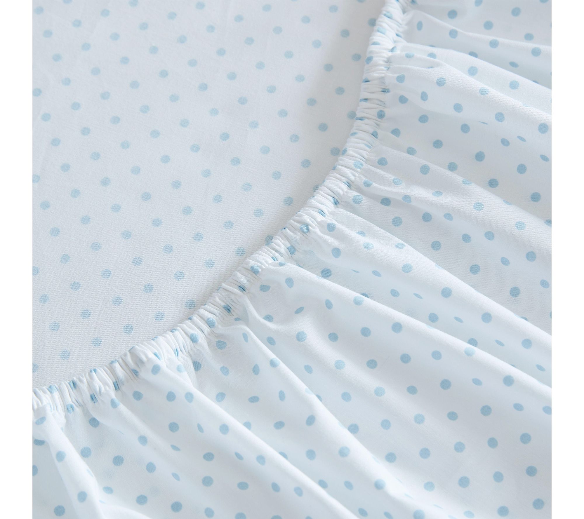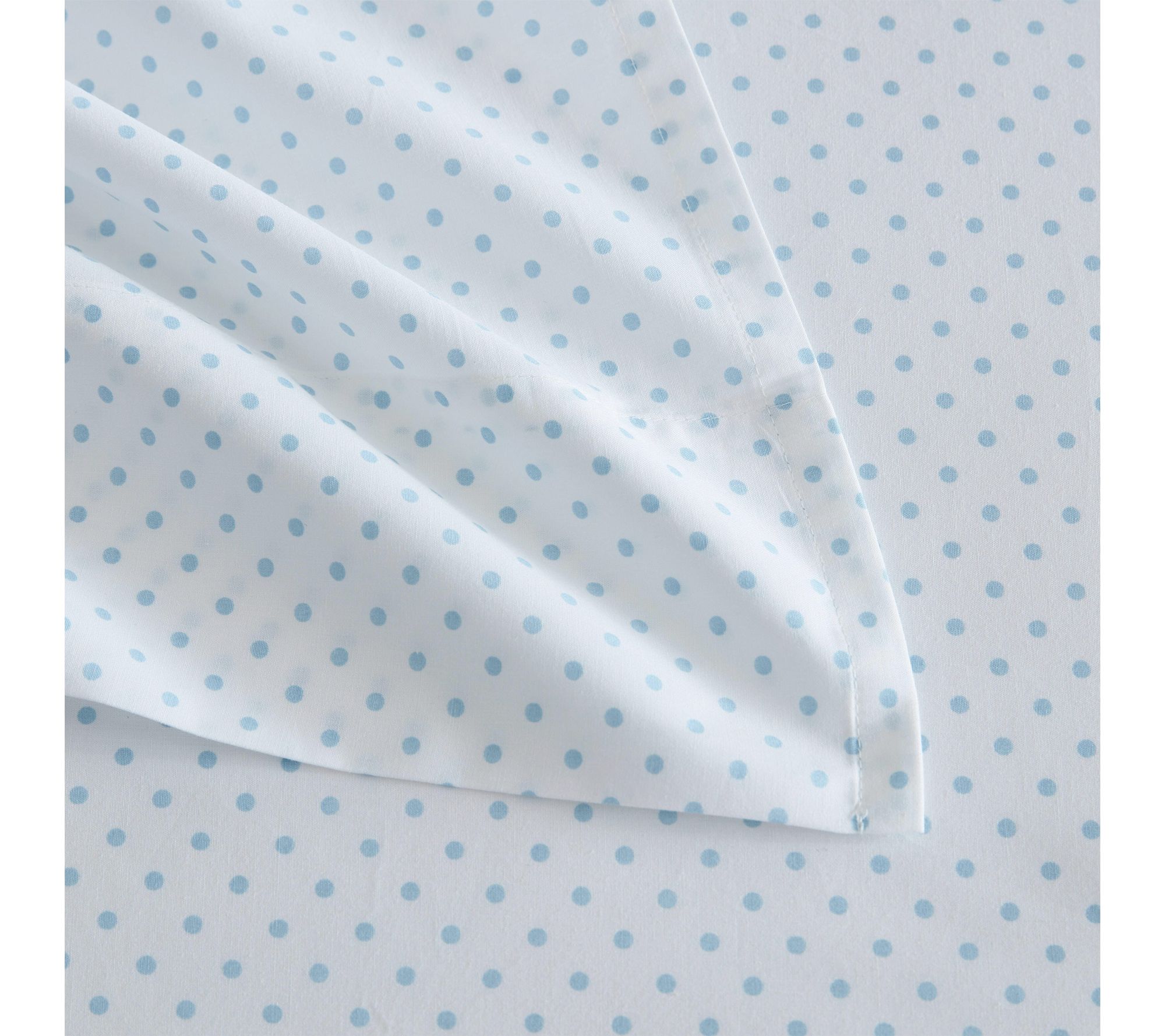 Drift off to sleep enveloped in classic style with these white and blue polka dot cotton sheets. The soft, crisp feel and tailored finish add a touch of charm to your bedroom sanctuary, making every night -- and every morning -- a little brighter. From Martha Stewart.