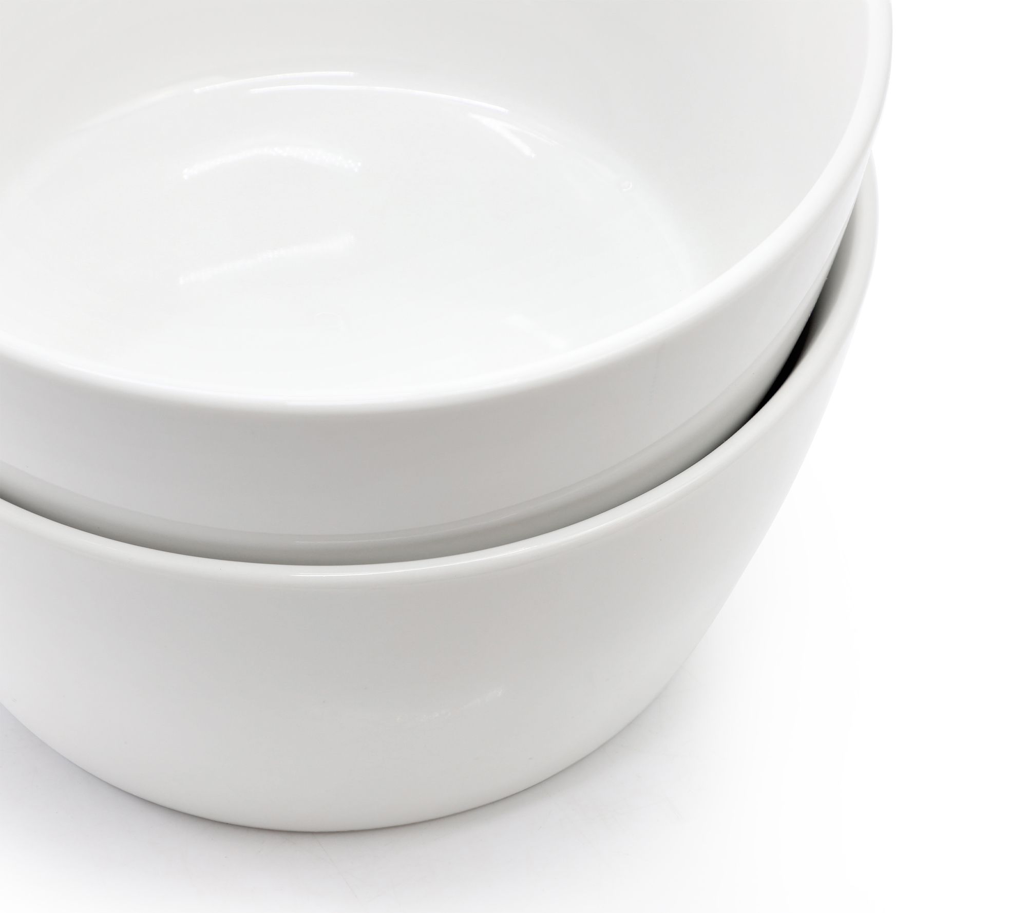 Start your morning routine or unwind with an evening snack using this ceramic cereal bowl set -- designed to blend seamlessly with your tableware and elevate every meal. The classic white finish and sleek, modern silhouette bring understated style to both casual breakfasts and special gatherings, while the easy-care construction suits busy lifestyles. From Martha Stewart.
