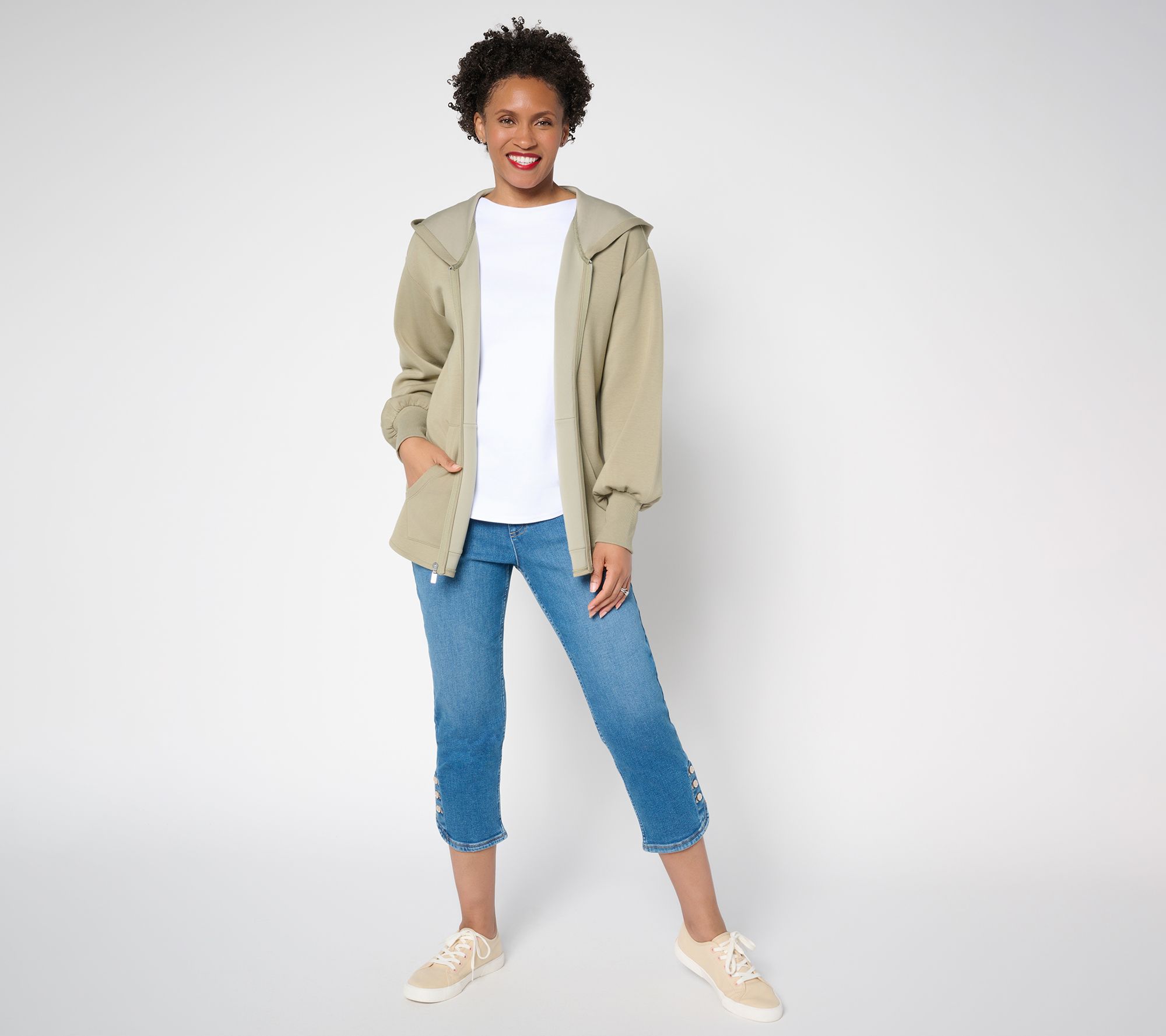 It's definitely got a hoodie vibe, but it's Martha Stewart -- so expecting something a little more elevated isn't unusual. Crafted with a substantial scuba knit, this relaxed-fit jacket embodies a casual-chic aesthetic (we're thinking it's the bishop-style sleeves). Zip up for brisk mornings or layer up for cool evenings in a look that travels well beyond errand-running or visits to the gym. From Martha Stewart.