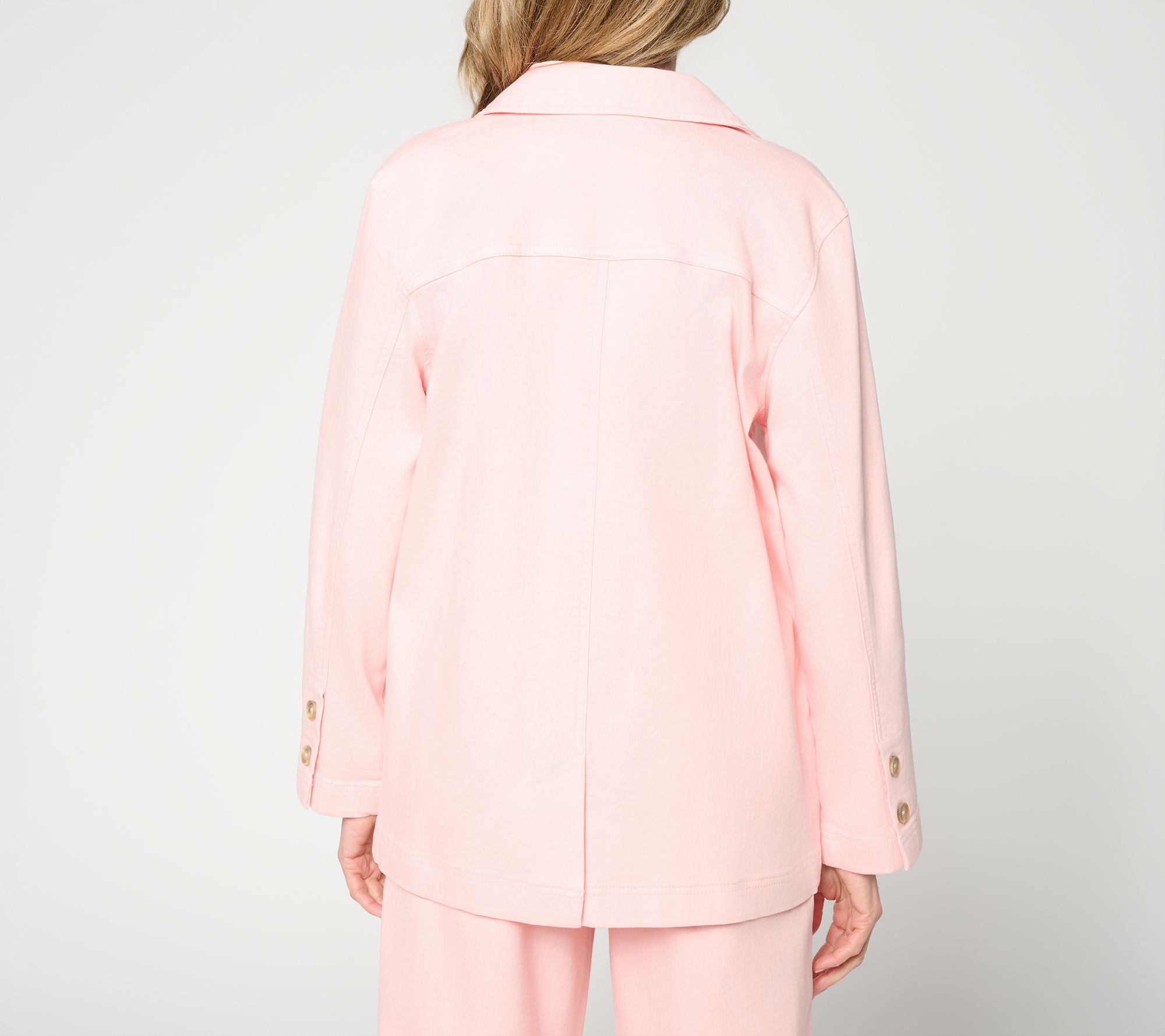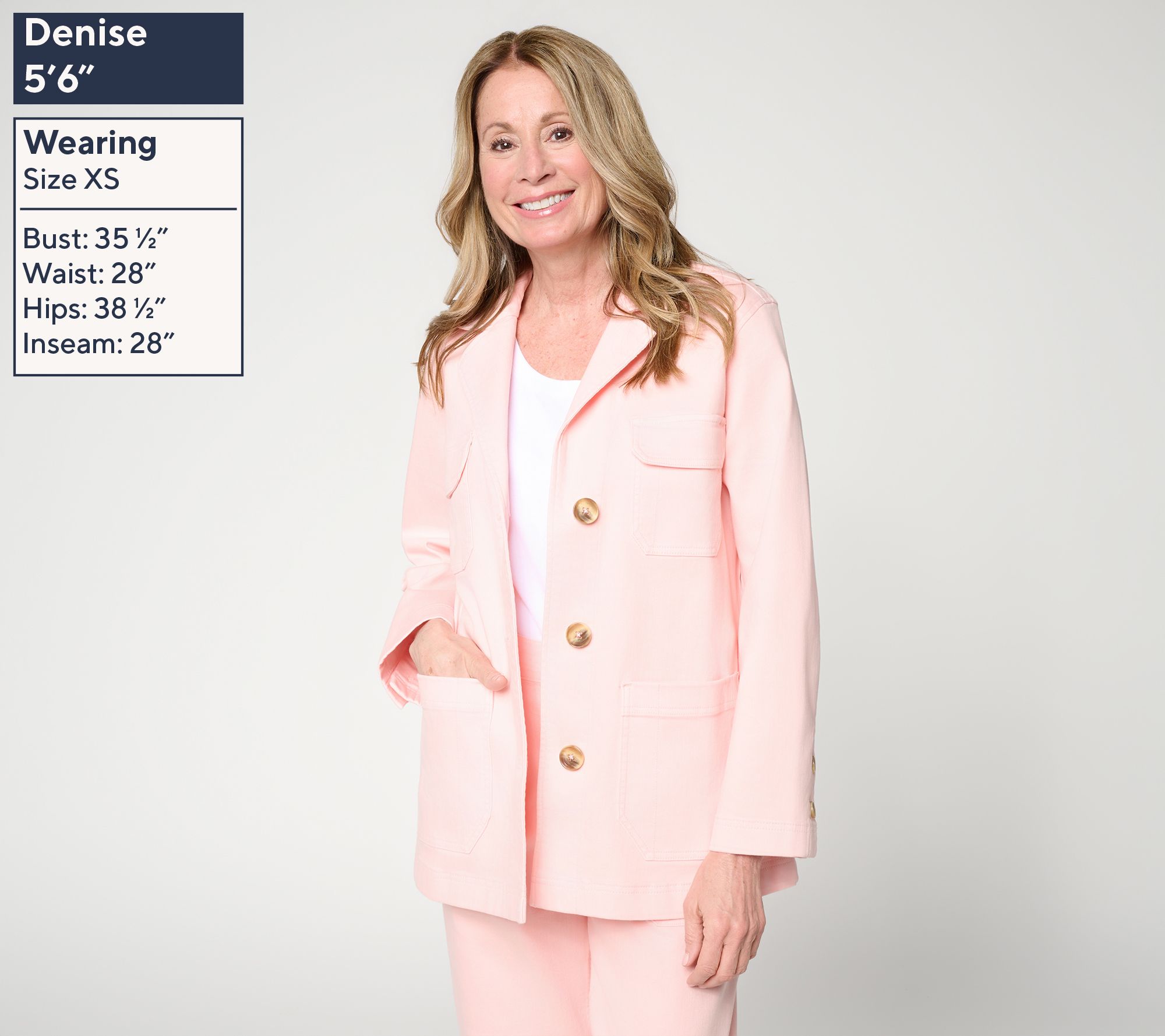 Blaz(er) a trail -- like Martha! Her signature chore blazer embodies a relaxed fit and soft cotton-blend stretch fabric that lets you move easily through your day, while tailored details, pockets, and button-accented sleeve plackets add polish that takes care of business. From Martha Stewart.