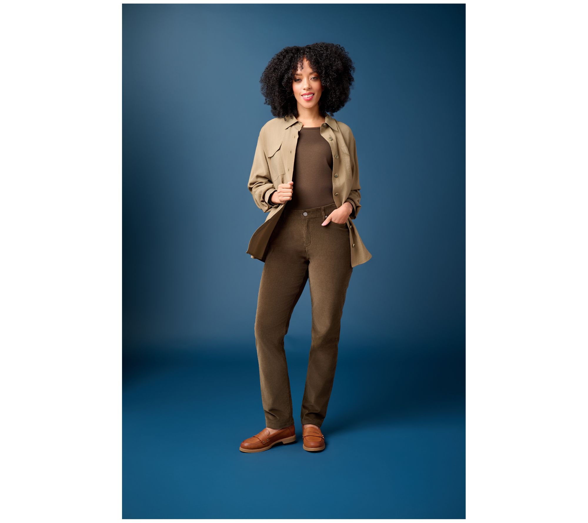 Stretch corduroy: Martha edition. Expect these elevated-classic straight-leg cords to be super-soft (check out that cotton content!), comfy, and versatile enough to pair with most any blouse, sweater, or tee in your closet. As beautifully wearable for meetings about town as they are a dressy-ish dinner or everyday errands. From Martha Stewart.