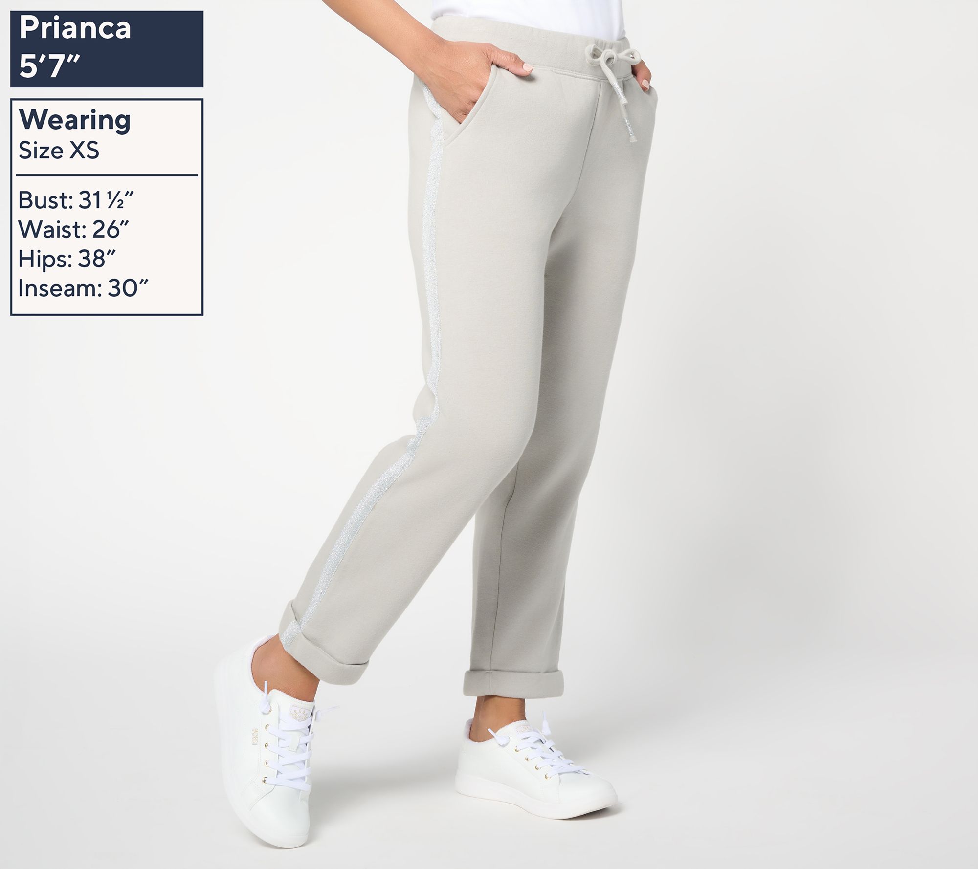 Add a bit of sparkle to your casual wear with these French terry ankle pants. Accented with chic metallic trim, they're fashioned with an elastic waistband and a functional drawcord for a comfortable fit that transitions seamlessly from lounging at home to running errands. From Martha Stewart.