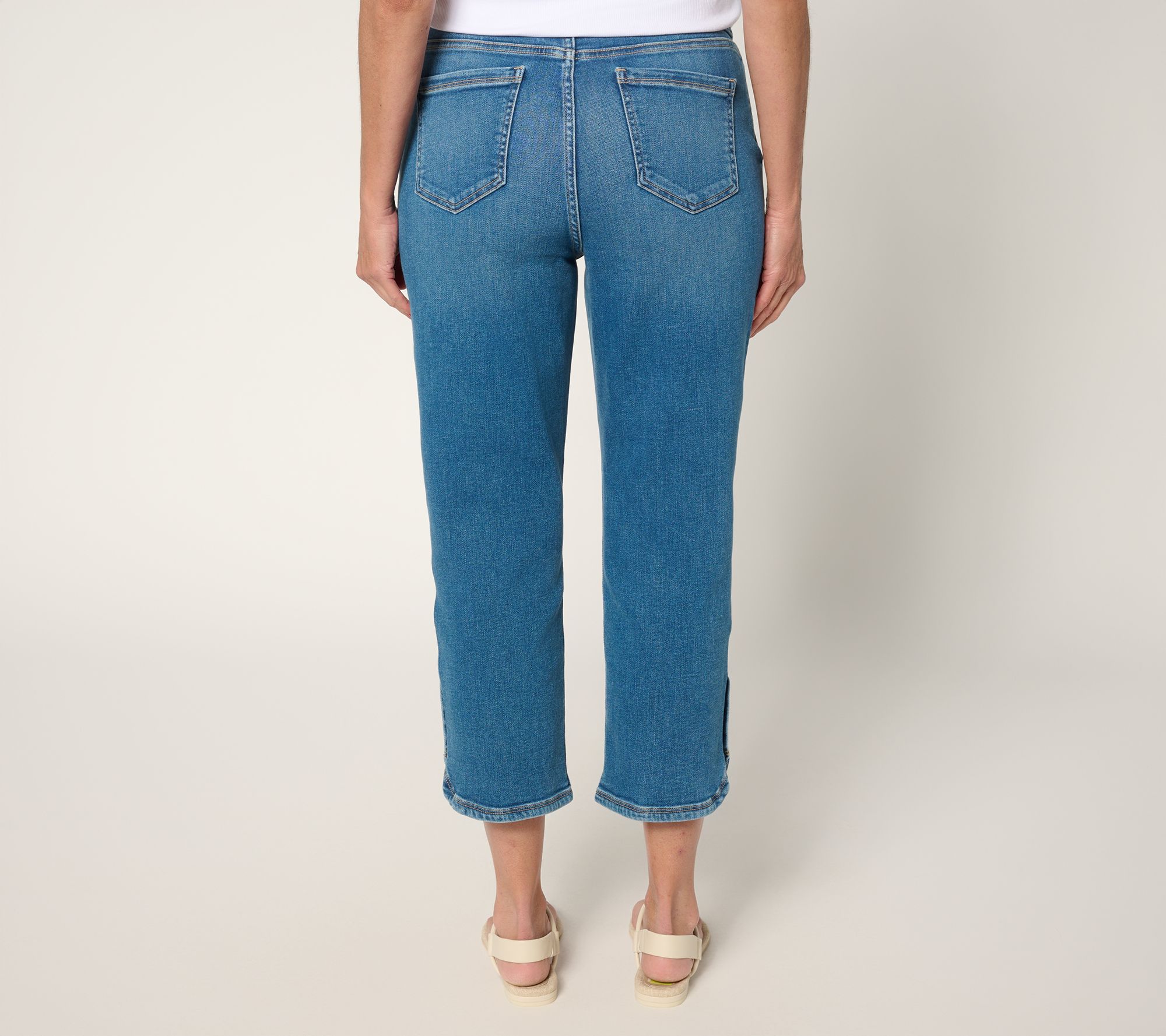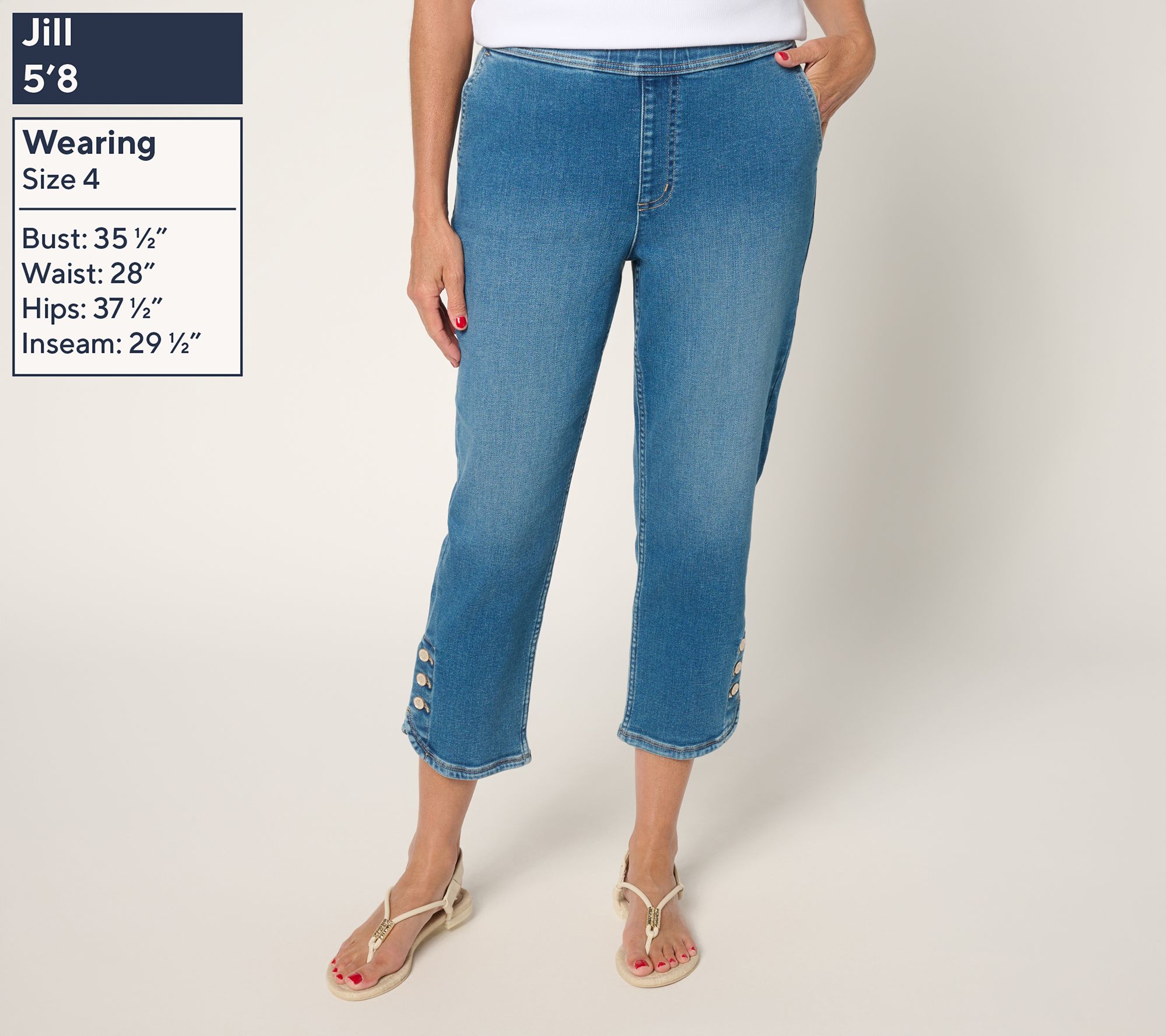 Denim with a cool factor always finds a way into your style rotation, and this cropped pair -- featuring playful button details at the hem -- adds just the right amount of interest. The pull-on design makes for easy entry and exit, while pockets front and back (hello, utility!) keep it casual-cool all day. From Martha Stewart.